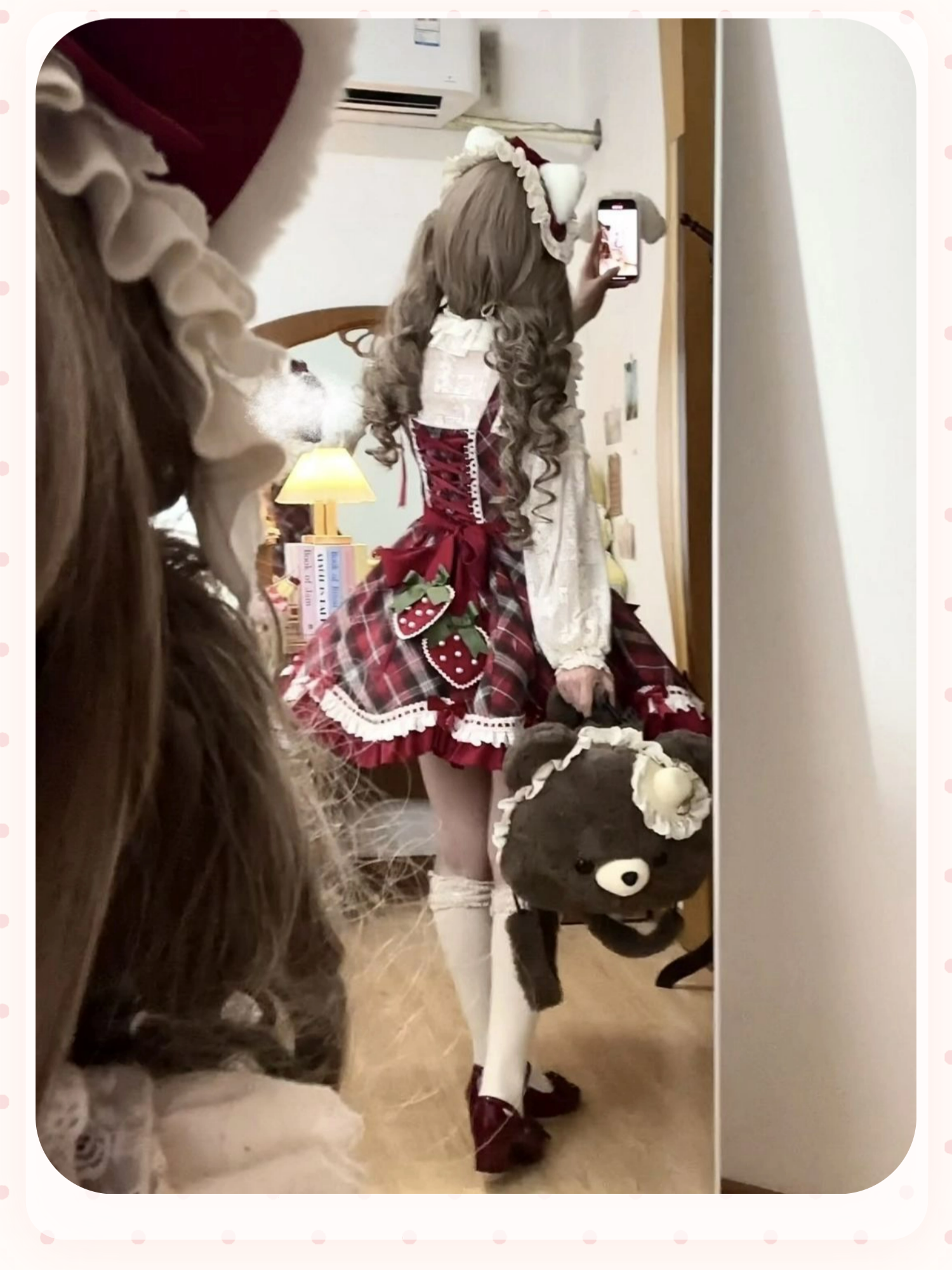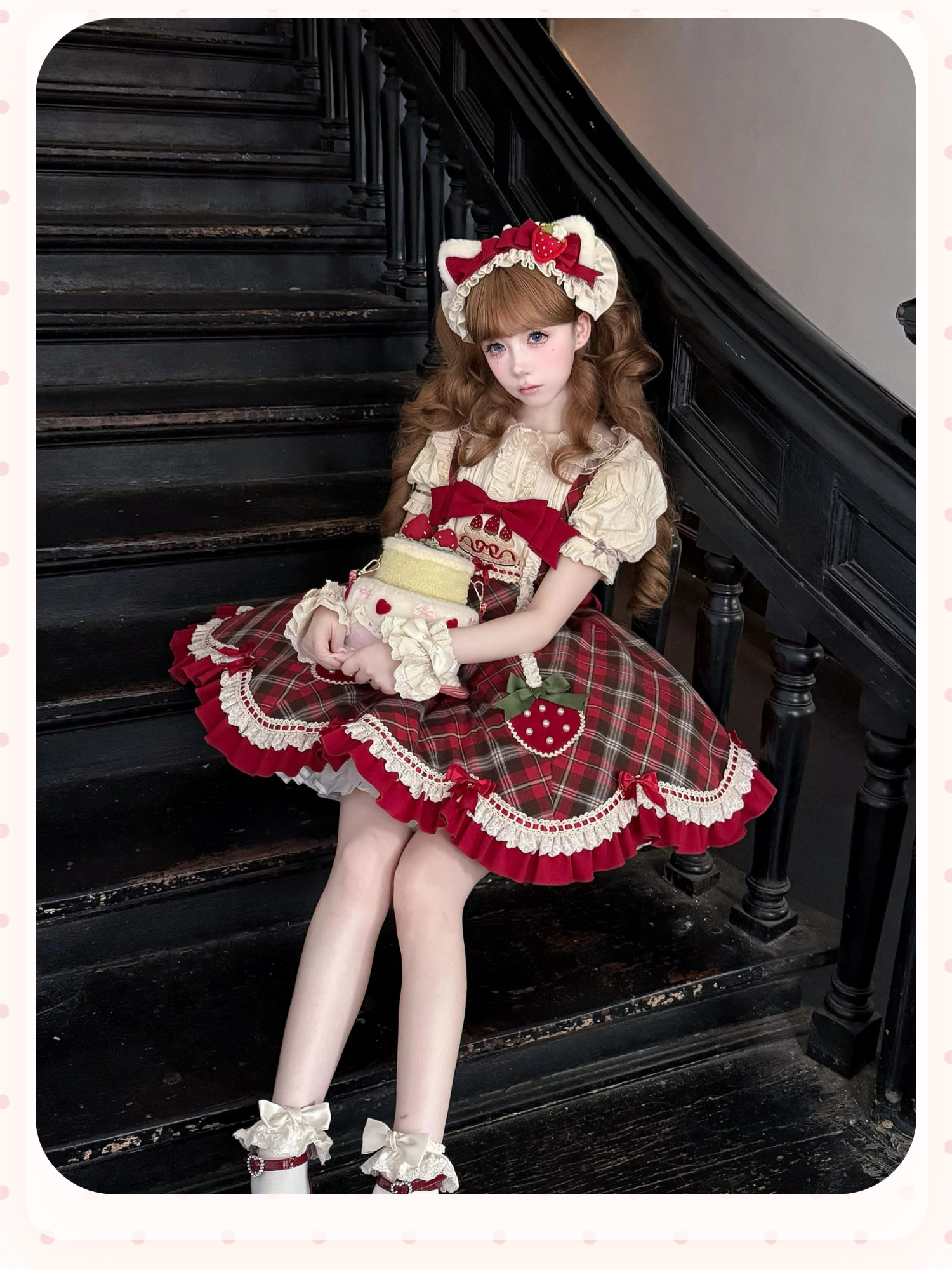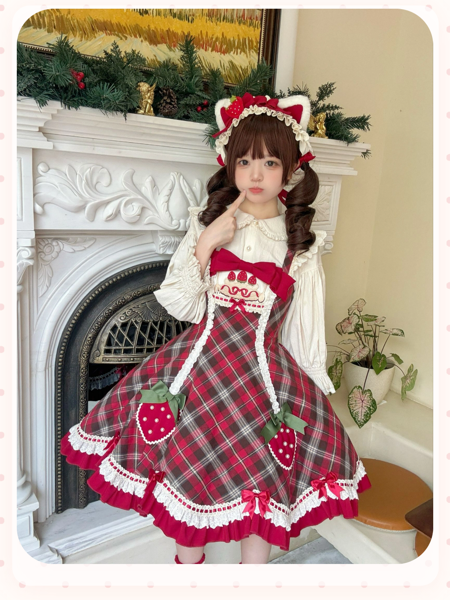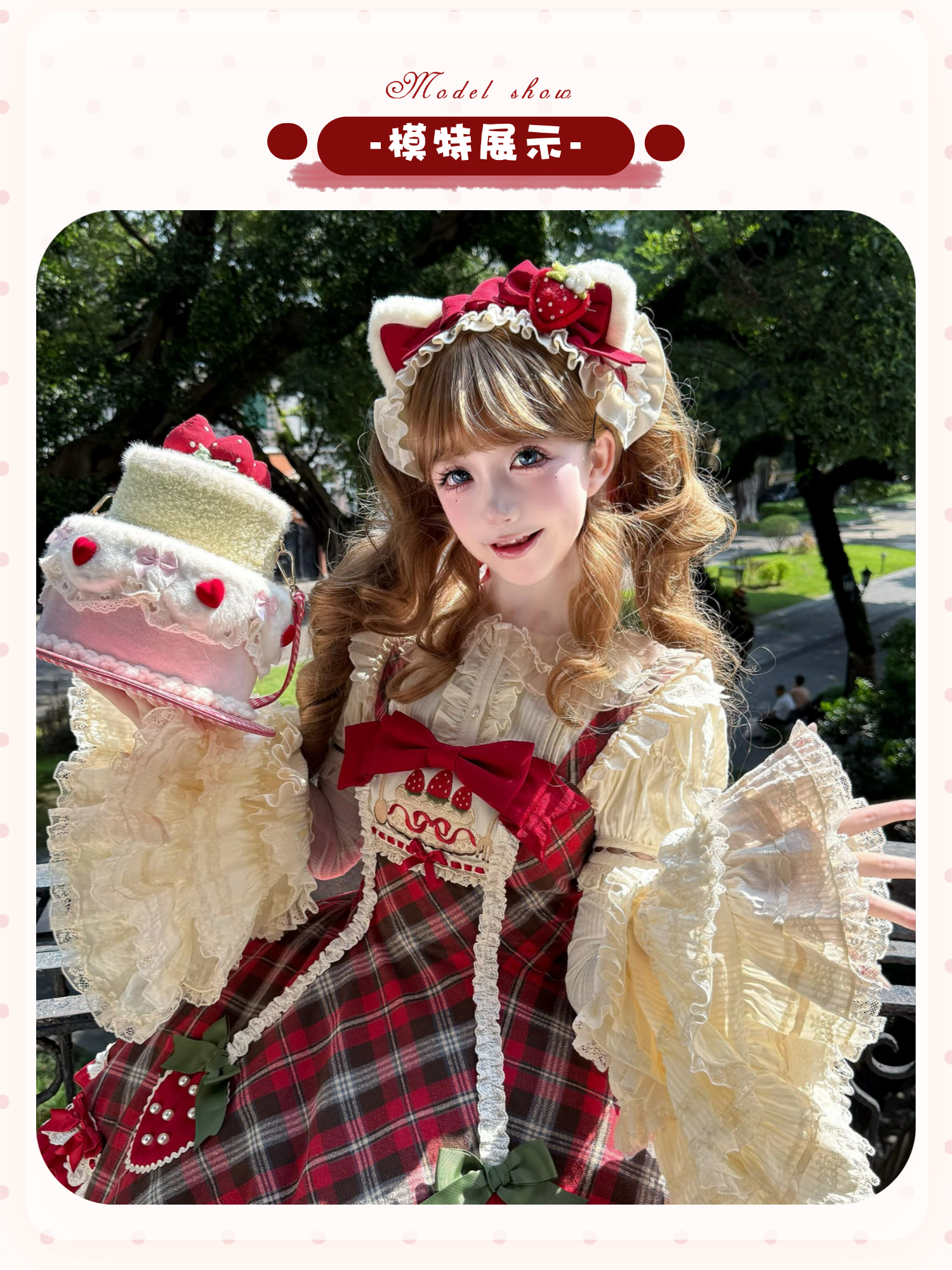 定金】珍莓匣 樱姬lolita原创设计 格纹草莓钉珠片裁设计lolita [Original Page Link]