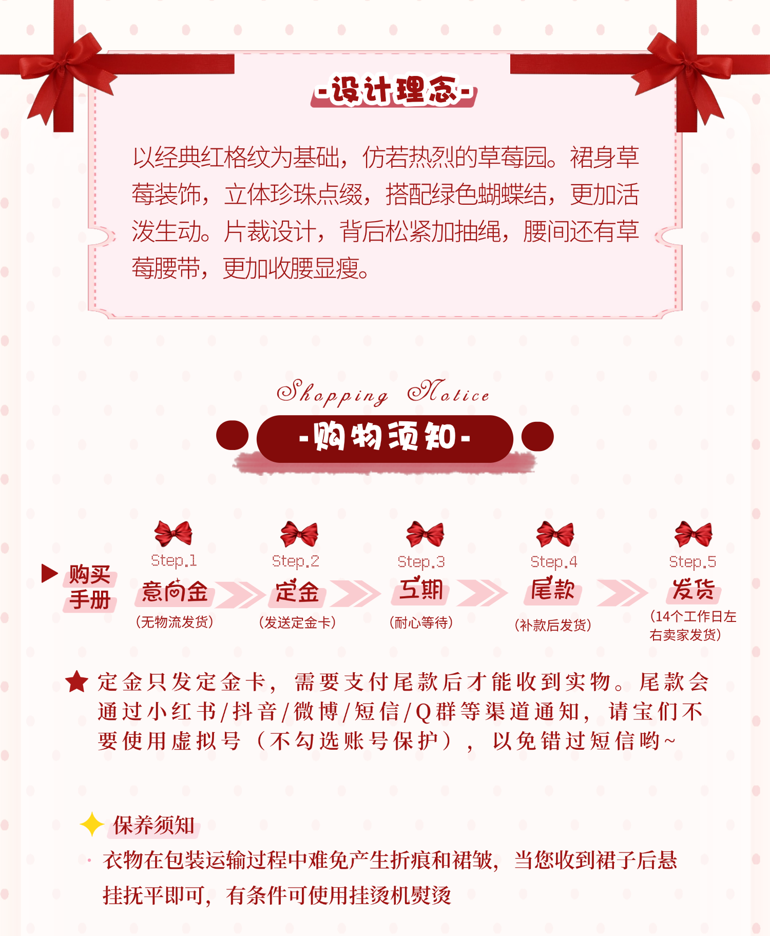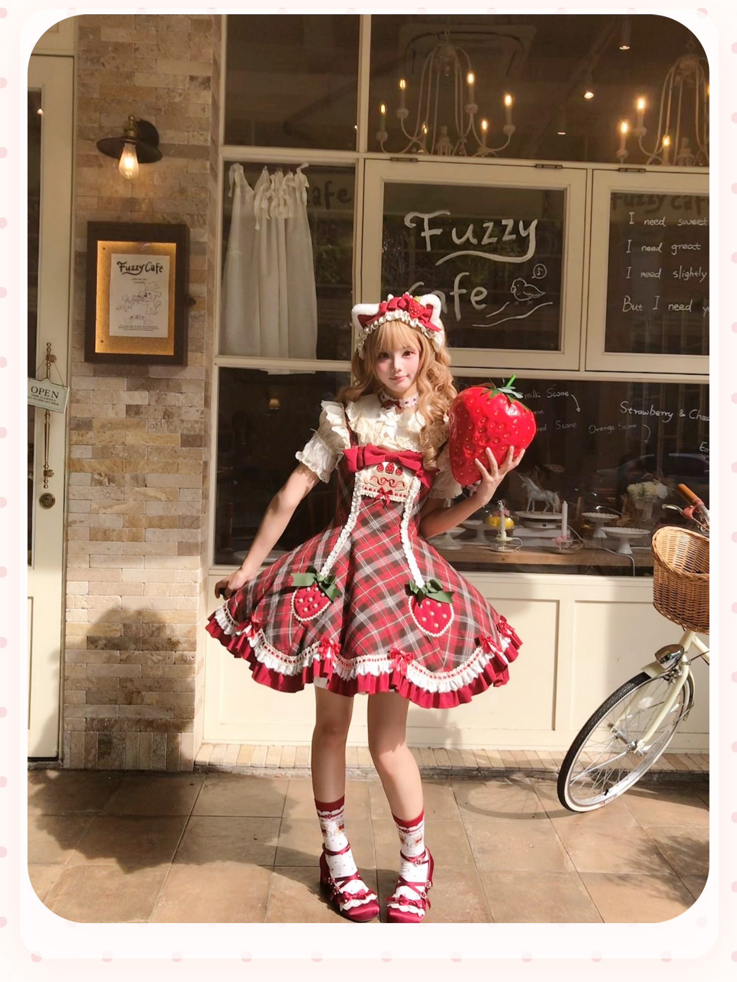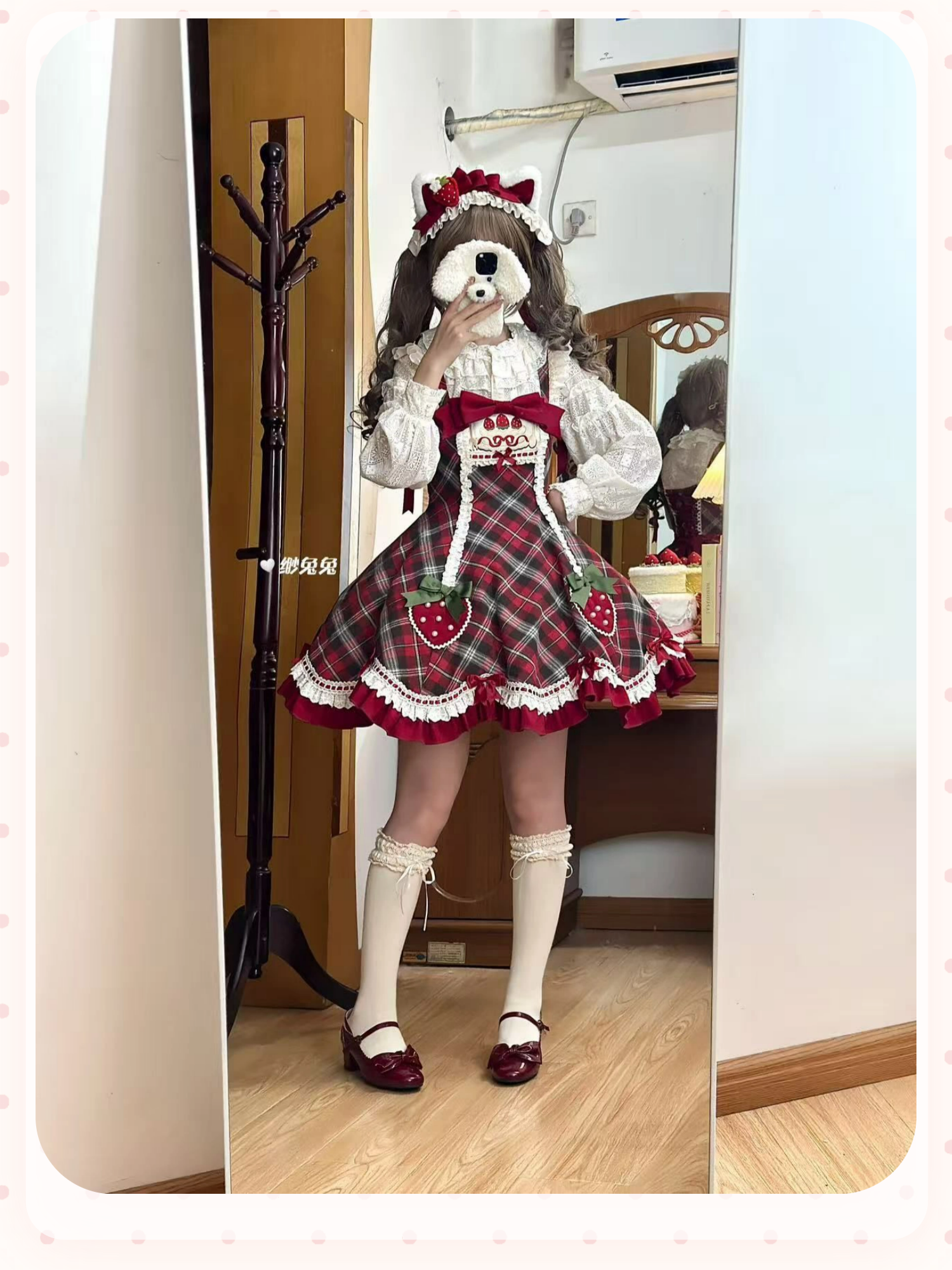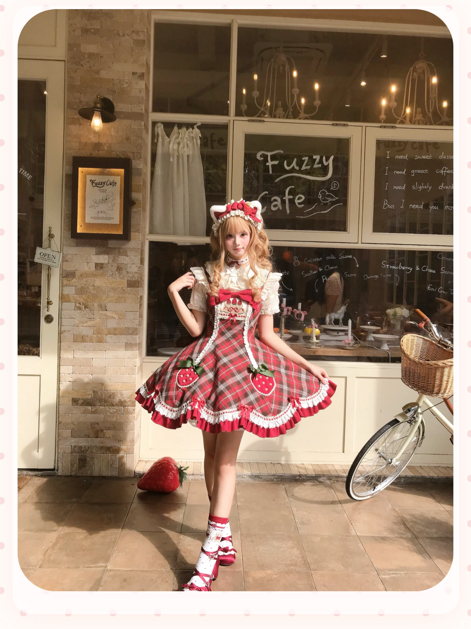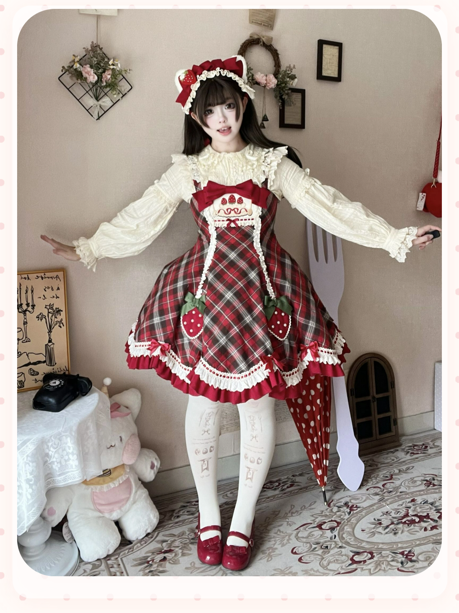定金】珍莓匣 樱姬lolita原创设计 格纹草莓钉珠片裁设计lolita [Original Page Link]