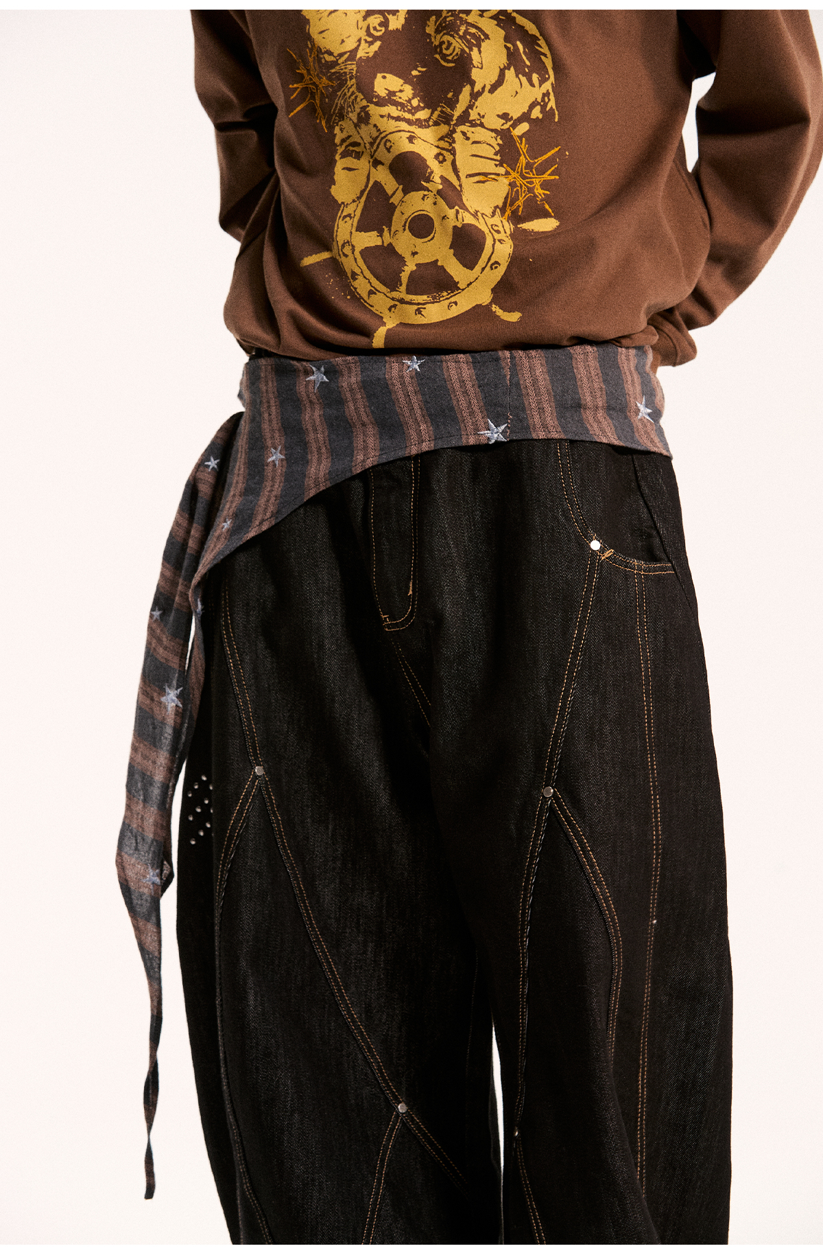 Mr. Jiangnan's NewJNXS irregular one-piece classic layered multi-colored plaid stripes star-patterned autumn curtain