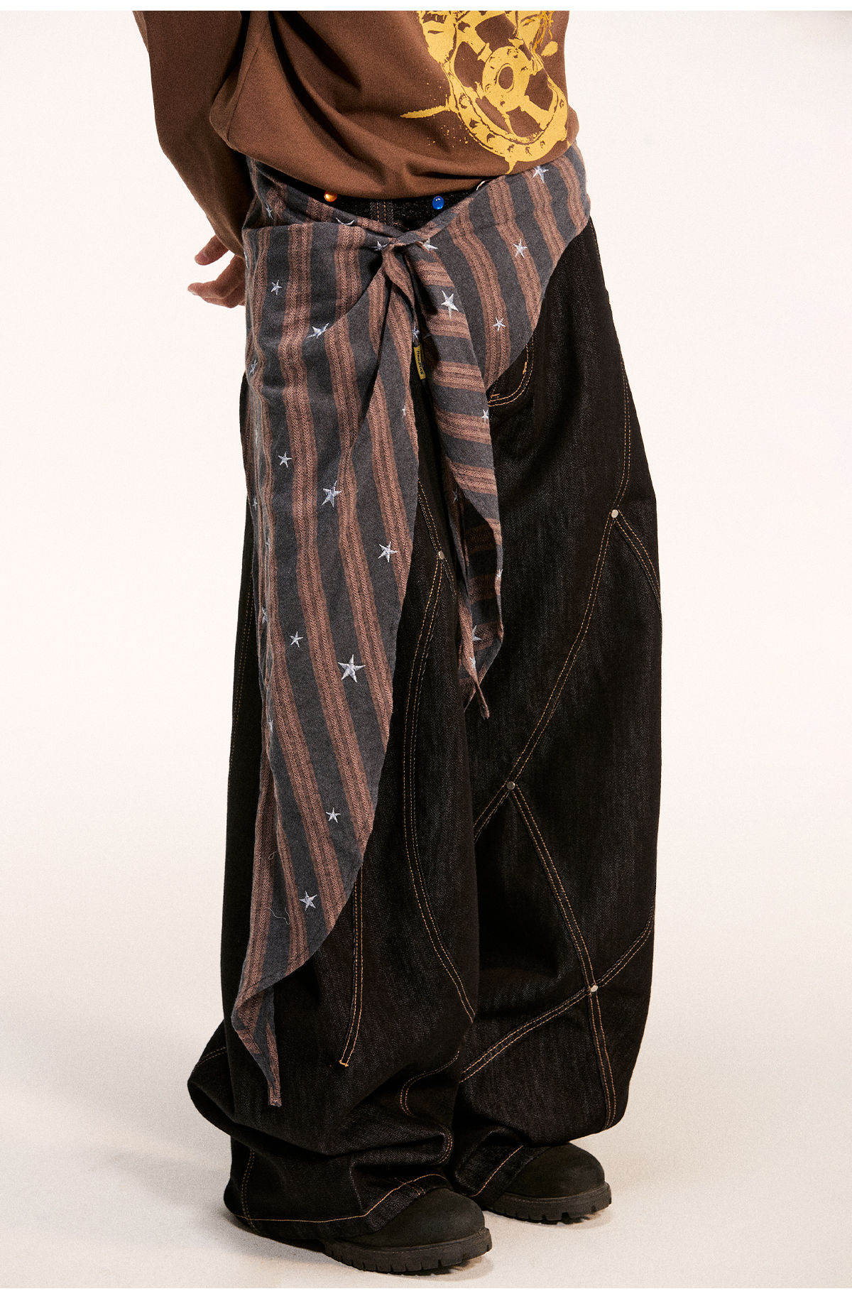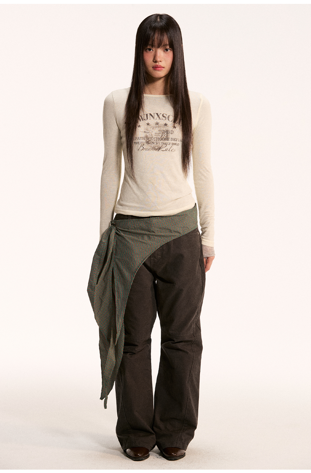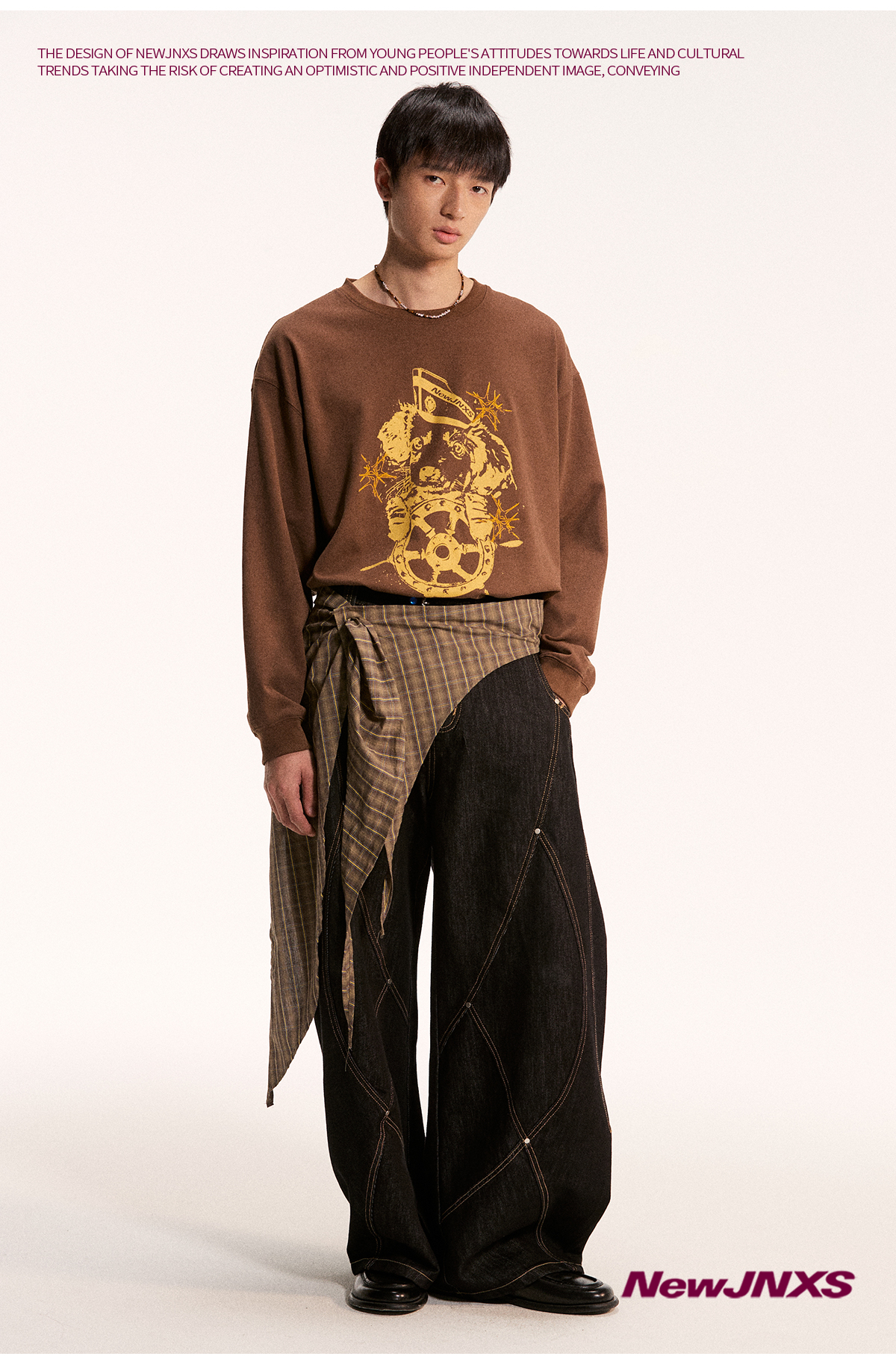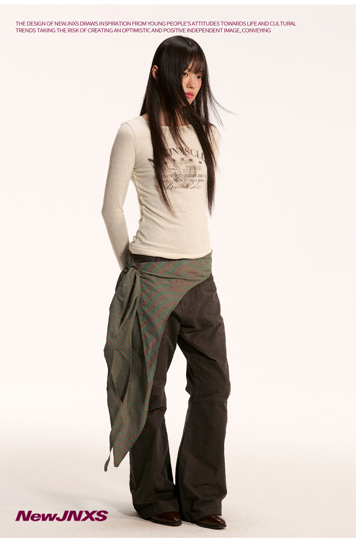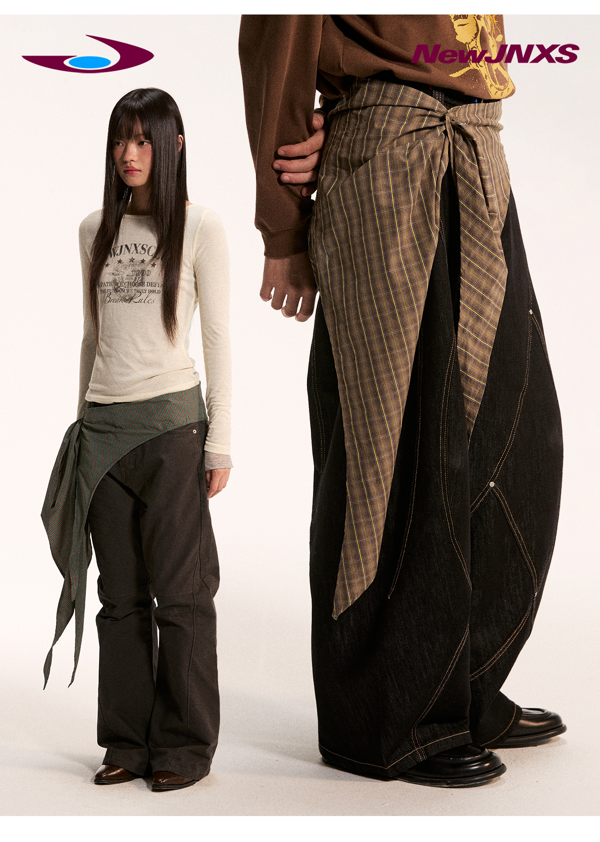 江南先生NewJNXS不规则一片式经典叠穿多色格子条纹星星屁帘秋 [Original Page Link]