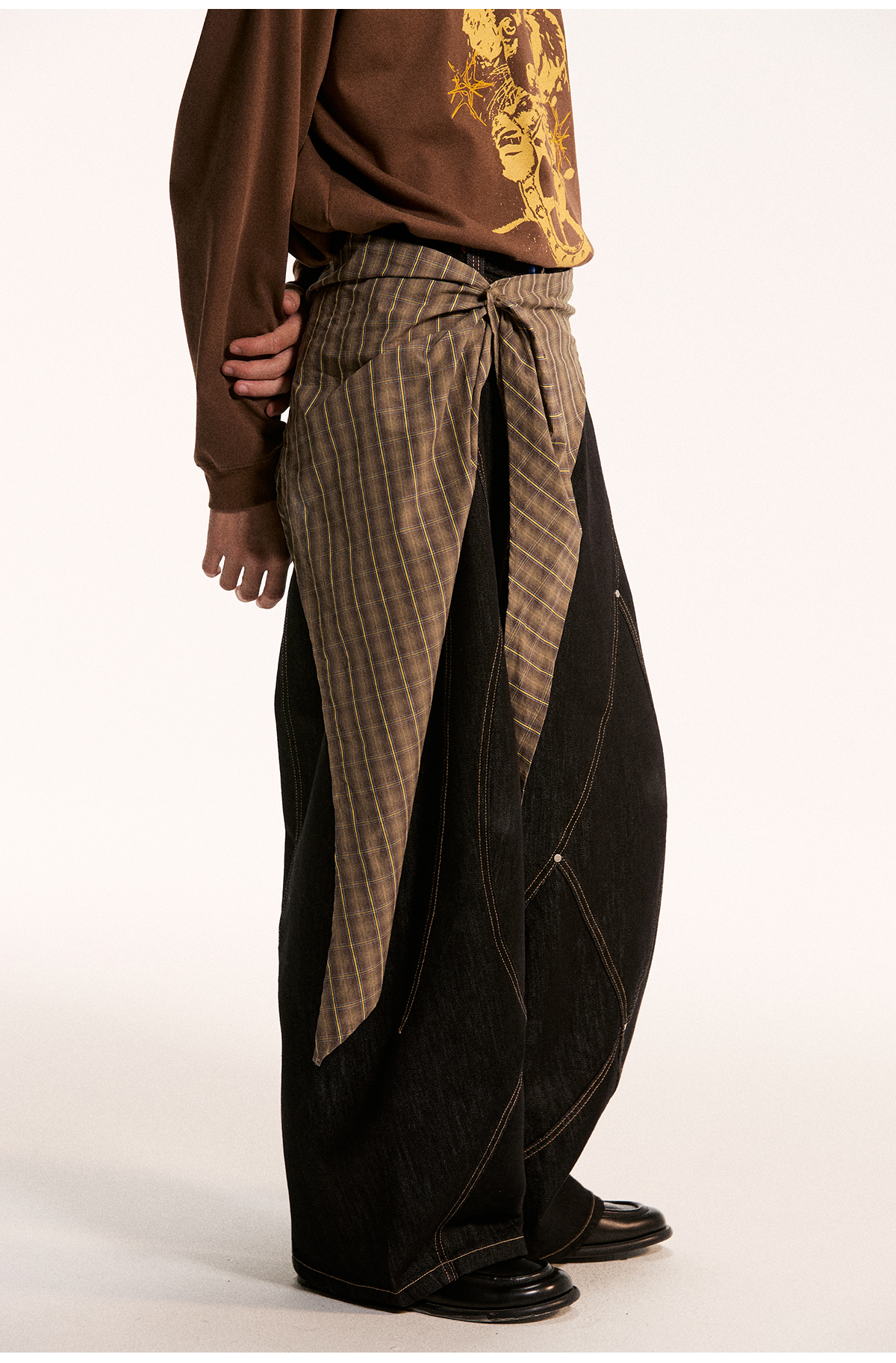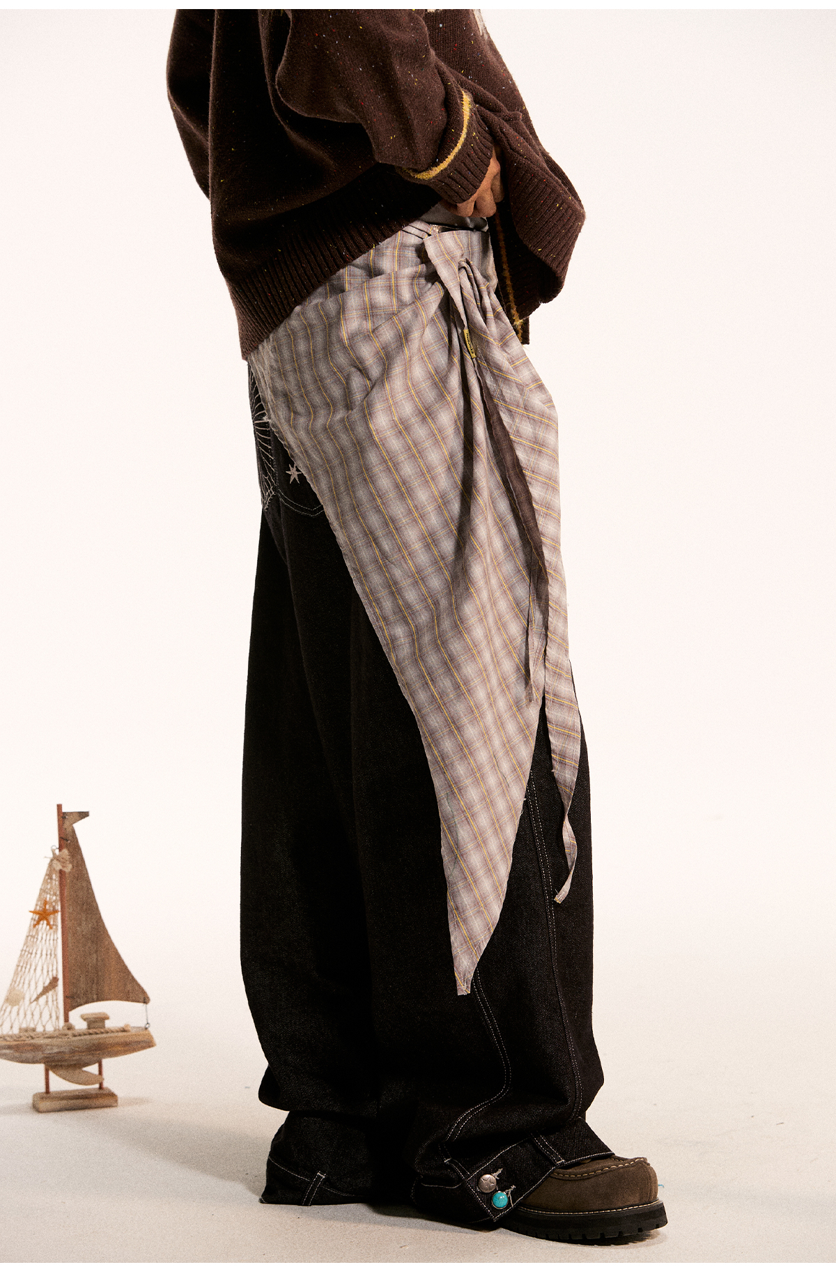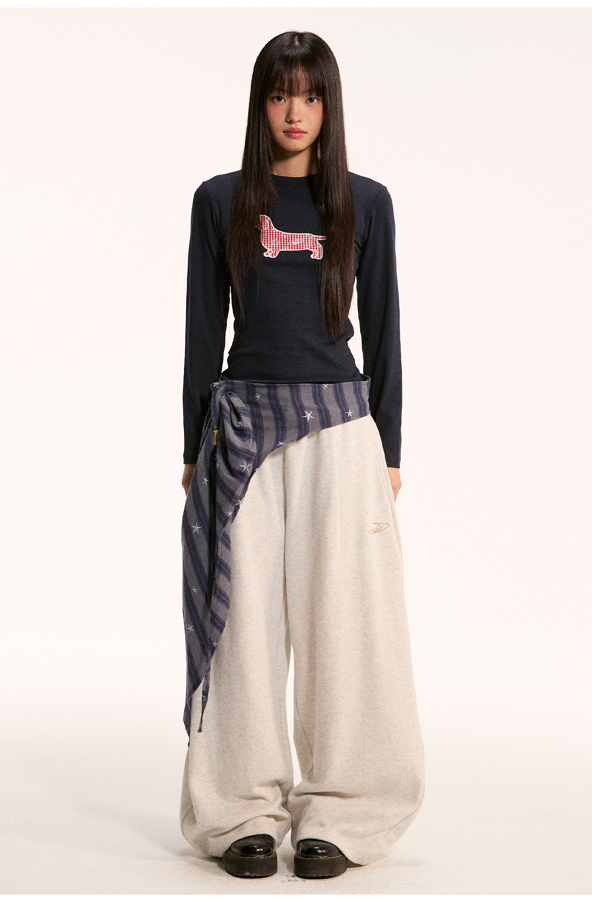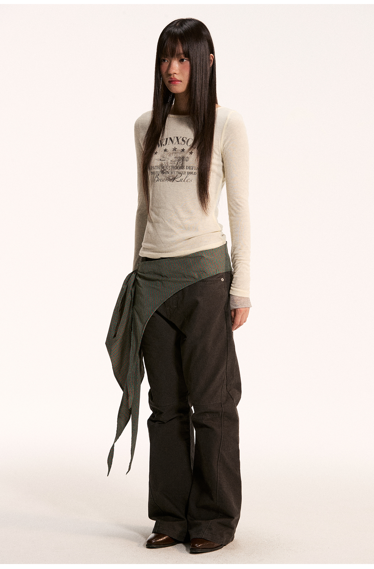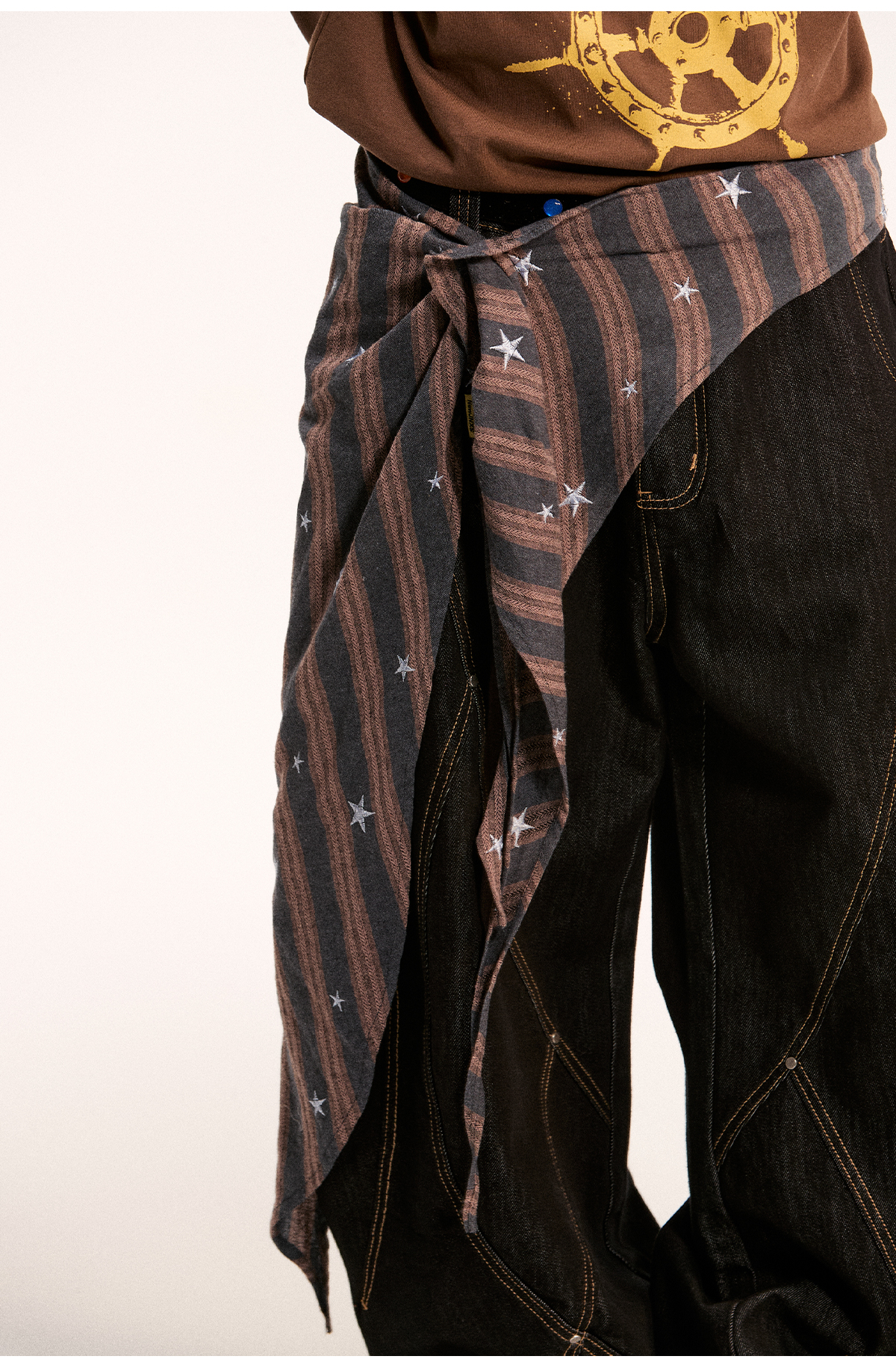 江南先生NewJNXS不规则一片式经典叠穿多色格子条纹星星屁帘秋 [Original Page Link]