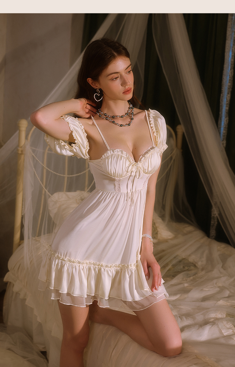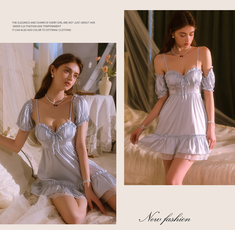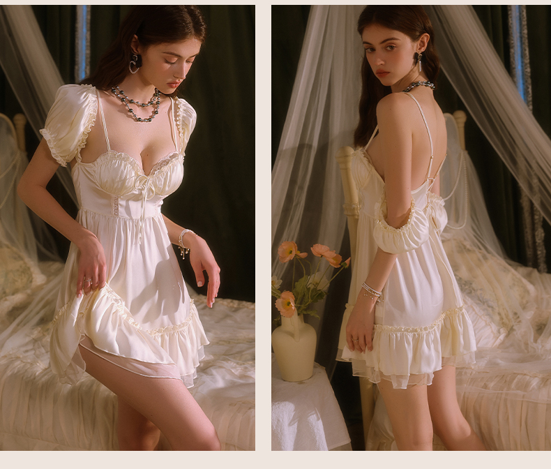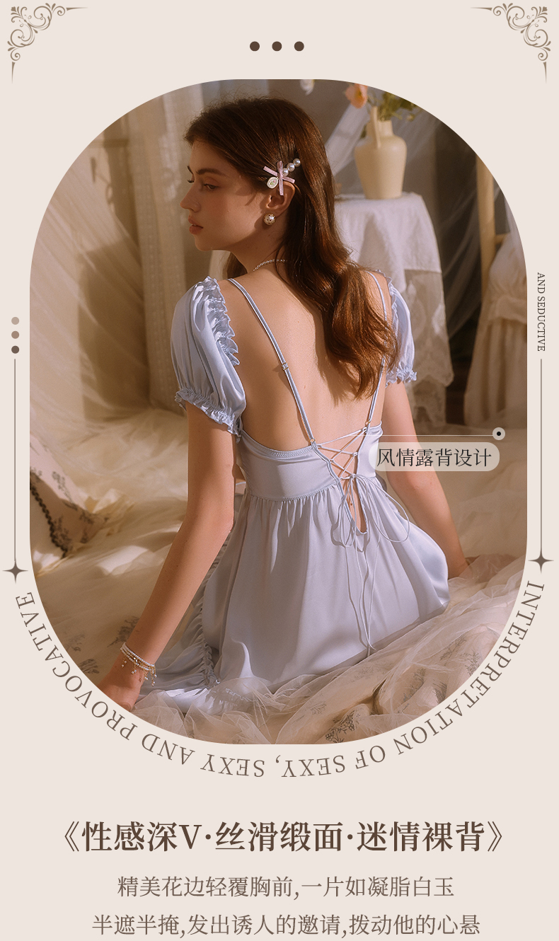 今夕何夕性感睡衣女士纯欲风冰丝露背花边吊带睡裙2025秋季新款 [Original Page Link]