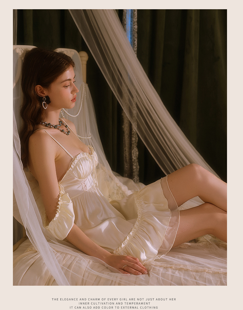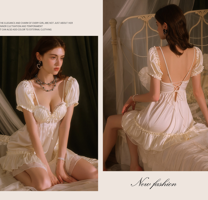 Sexy Nightgown for Women, Pure and Alluring Style, Ice Silk Backless Lace Camisole Nightgown, 2025 Autumn New Arrival