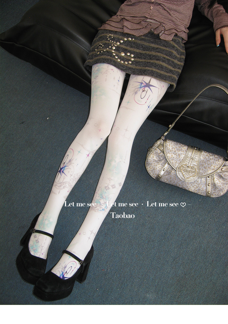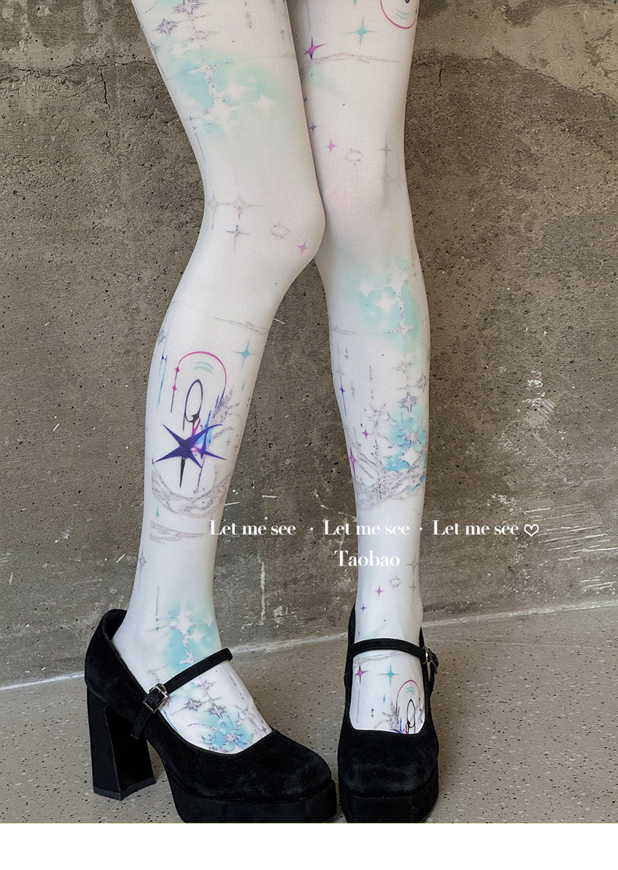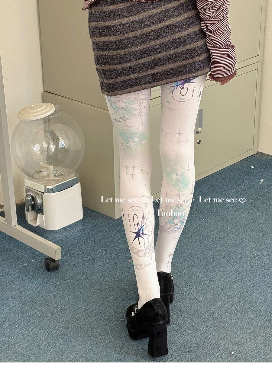 LET ME SEE 自制日系辣妹印花连裤袜 亚文化图案小众白色打底袜子 [Original Page Link]