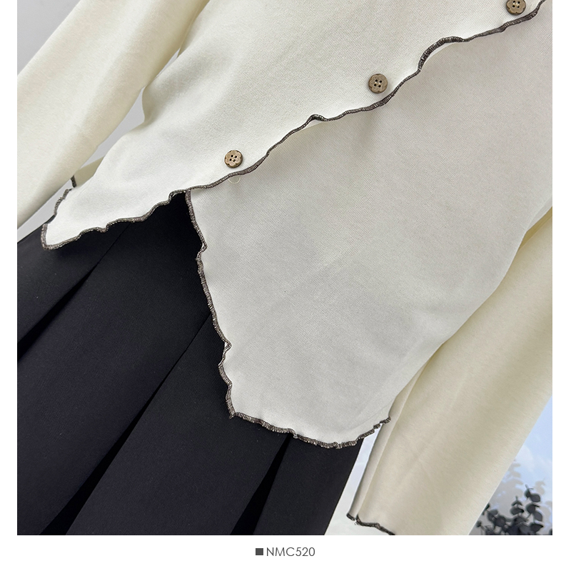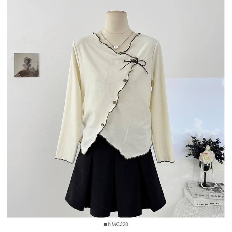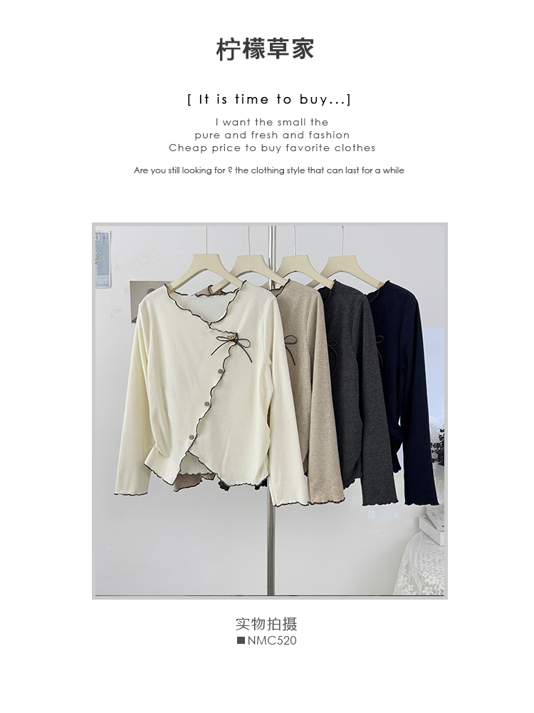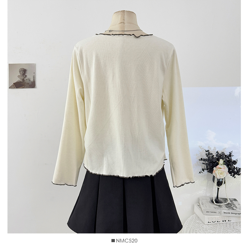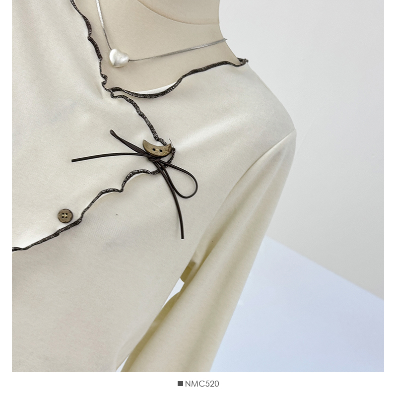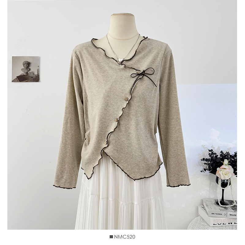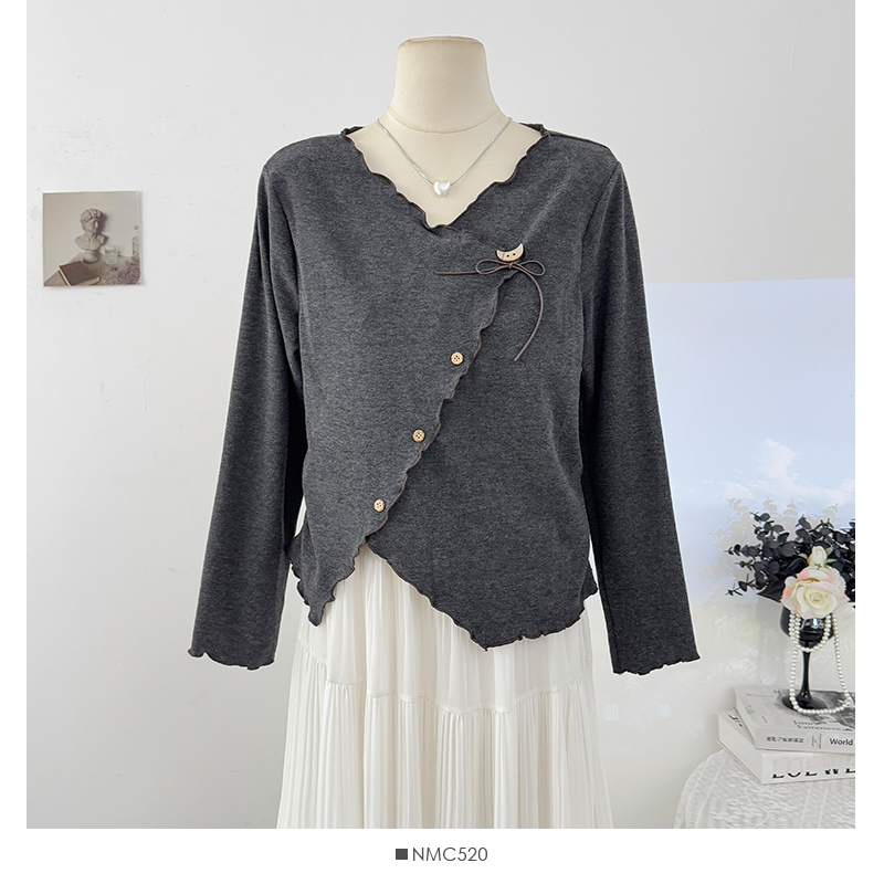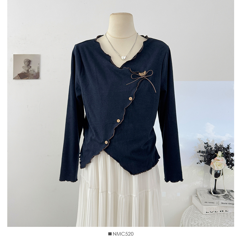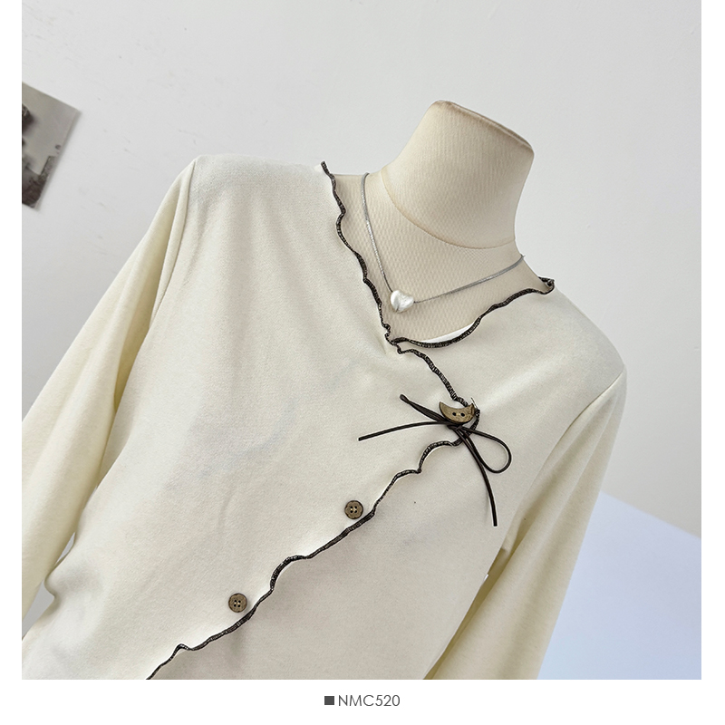 法式不规则木耳边交叉V领长袖T恤女秋季2025时尚宽松减龄针织上衣 [Original Page Link]