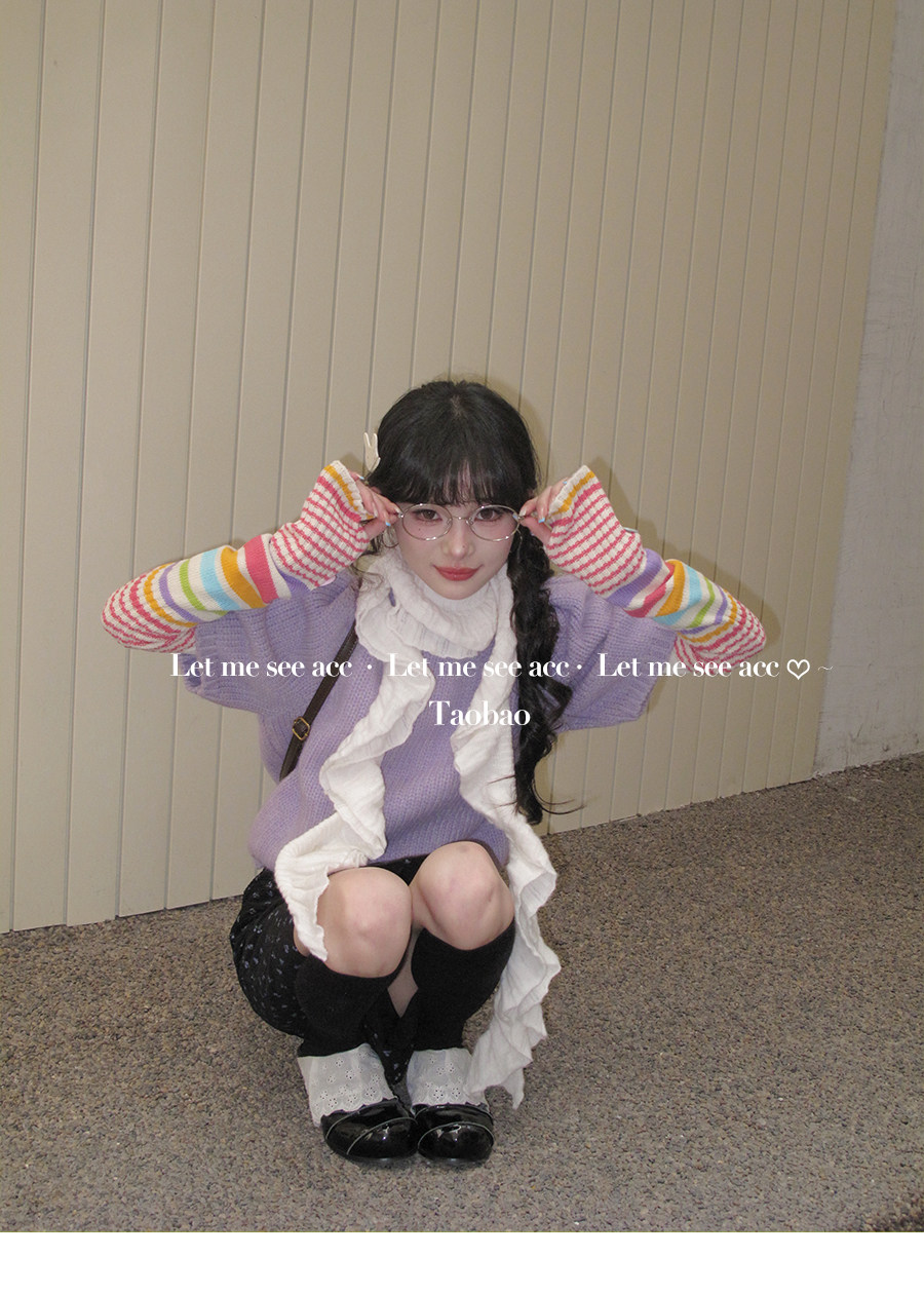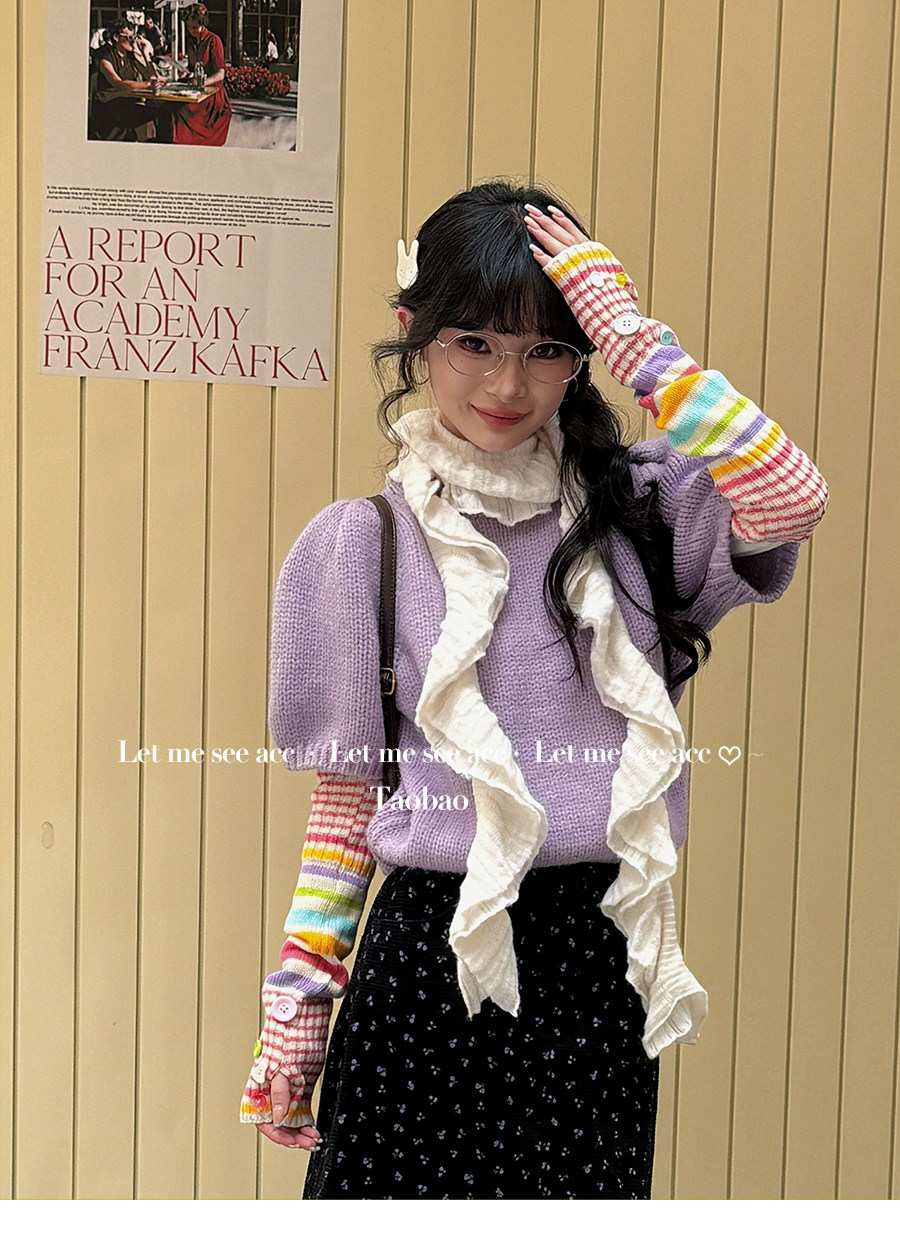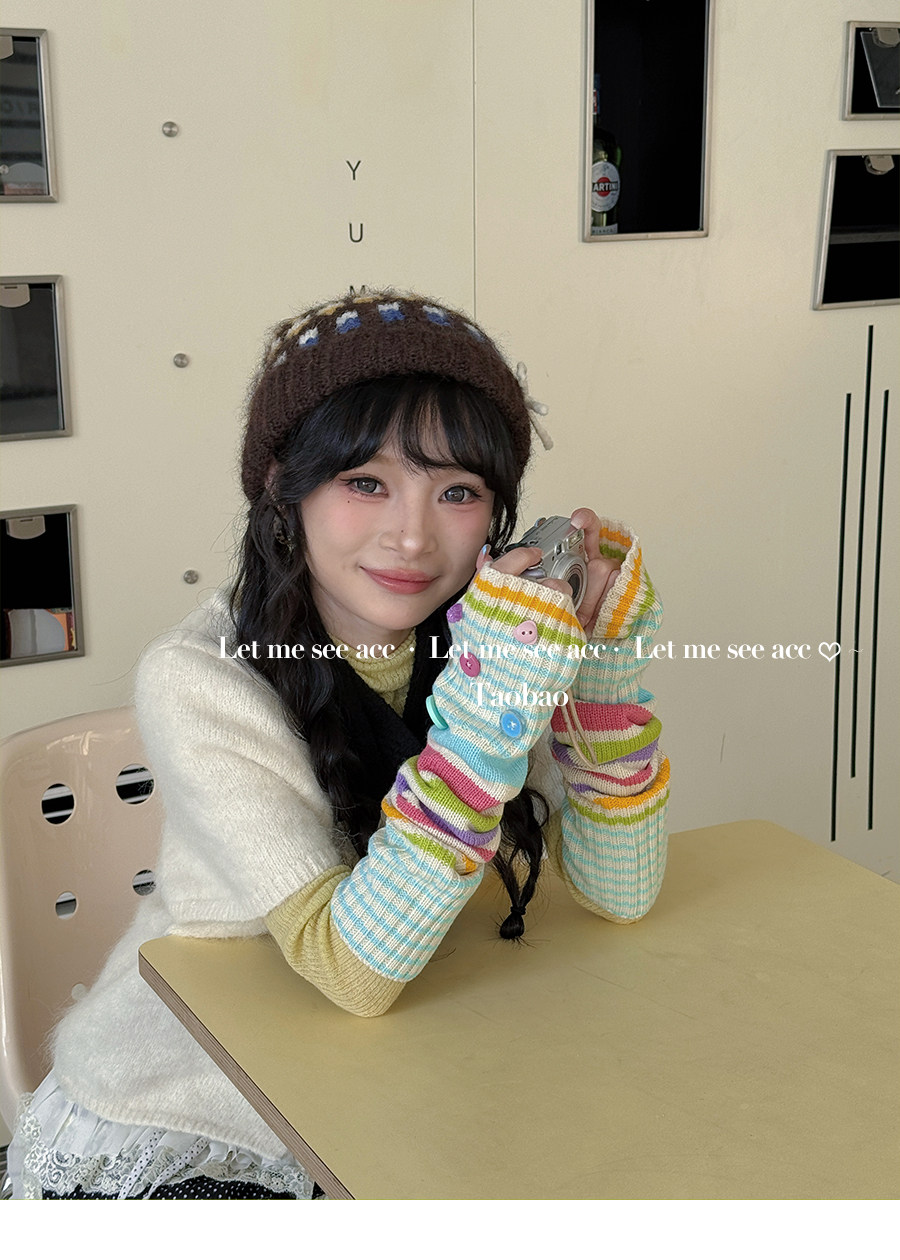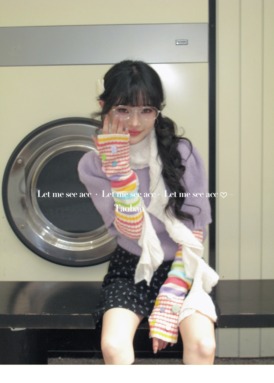 LET ME SEE Acc 彩色纽扣针织手套 亚文化辣妹条纹袖套半指女手套 [Original Page Link]