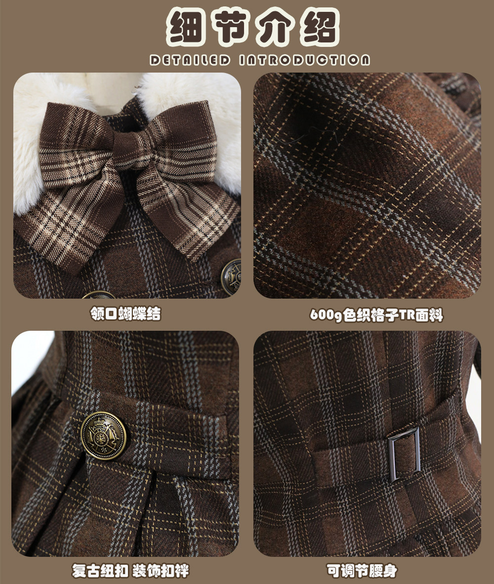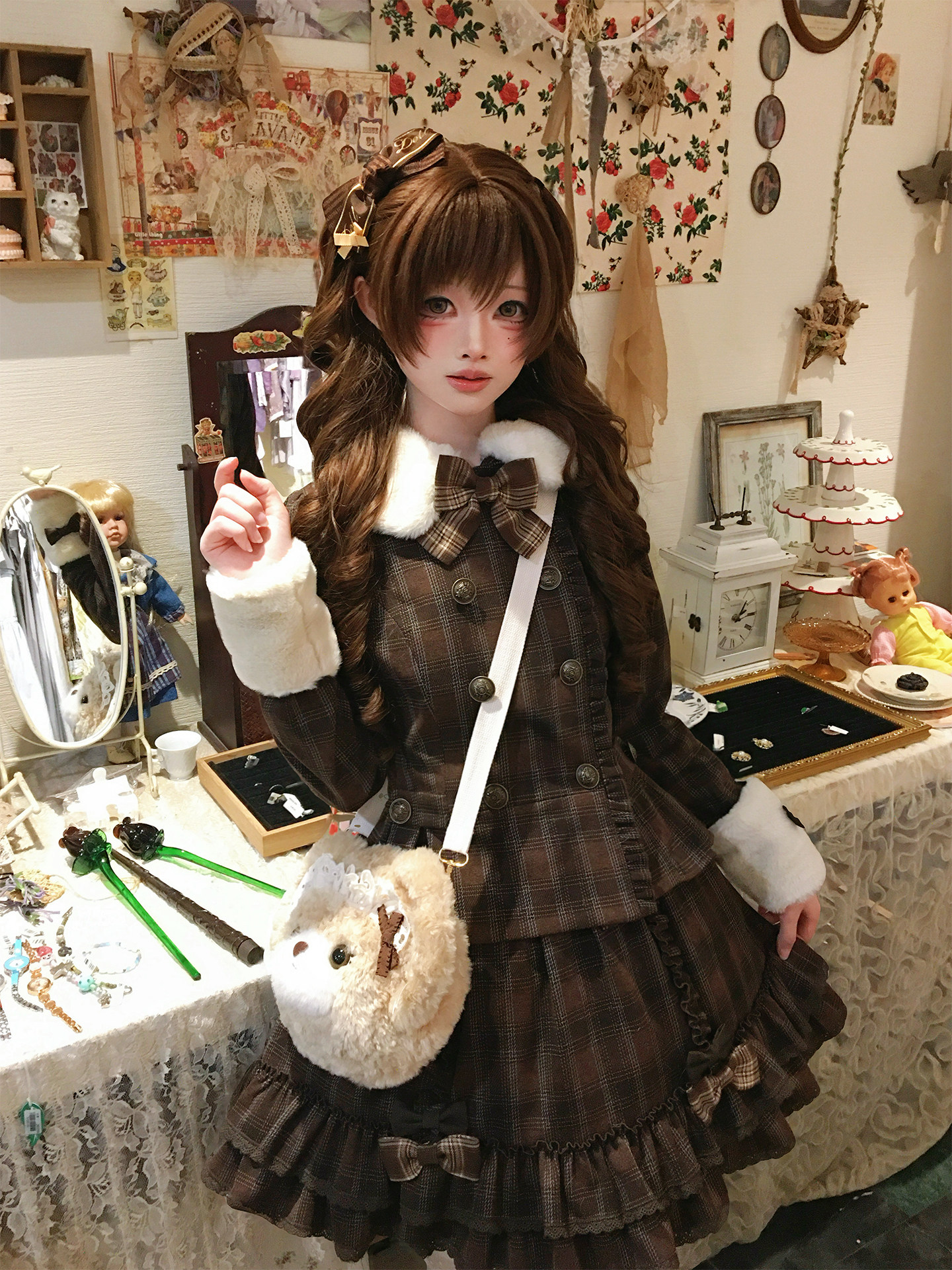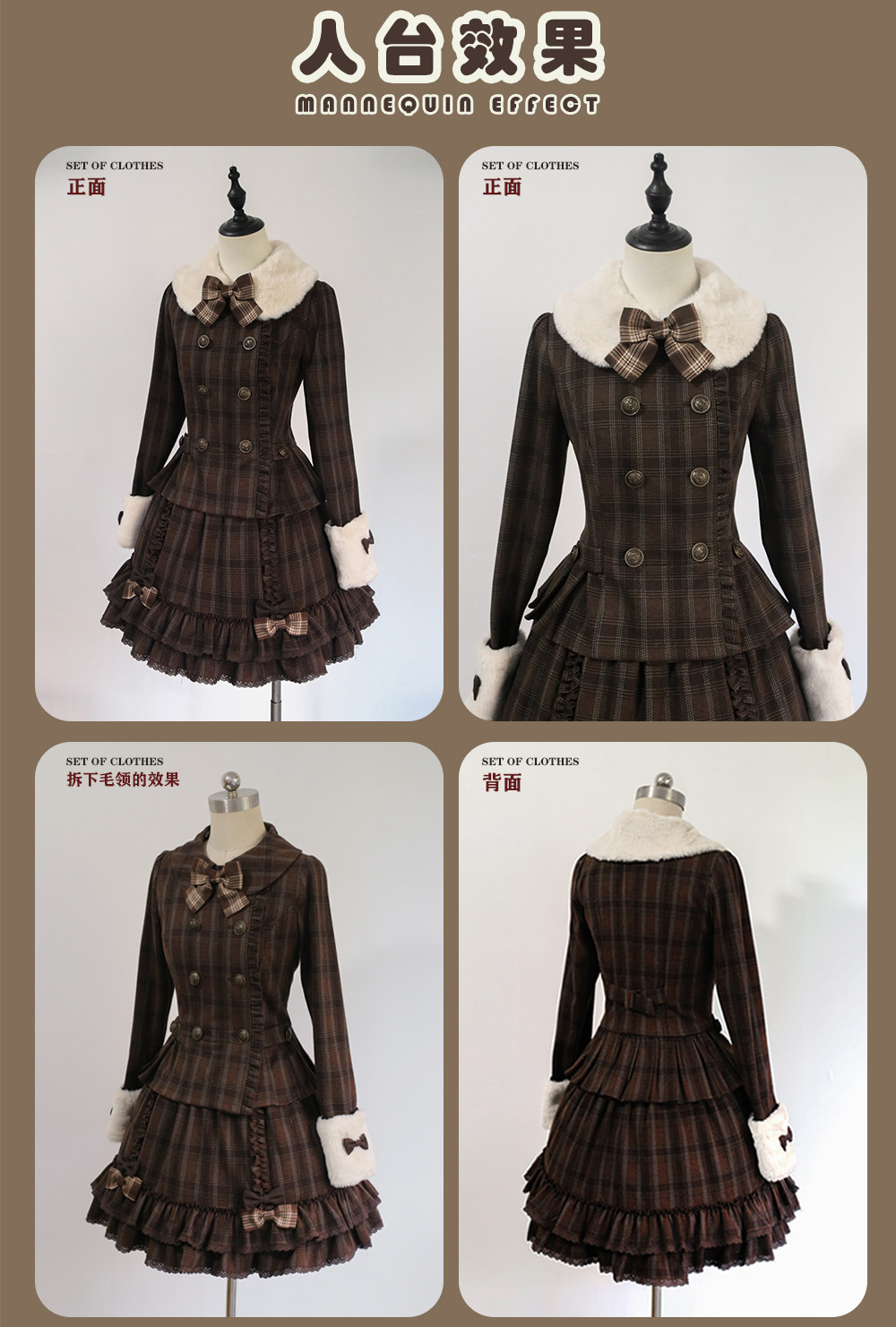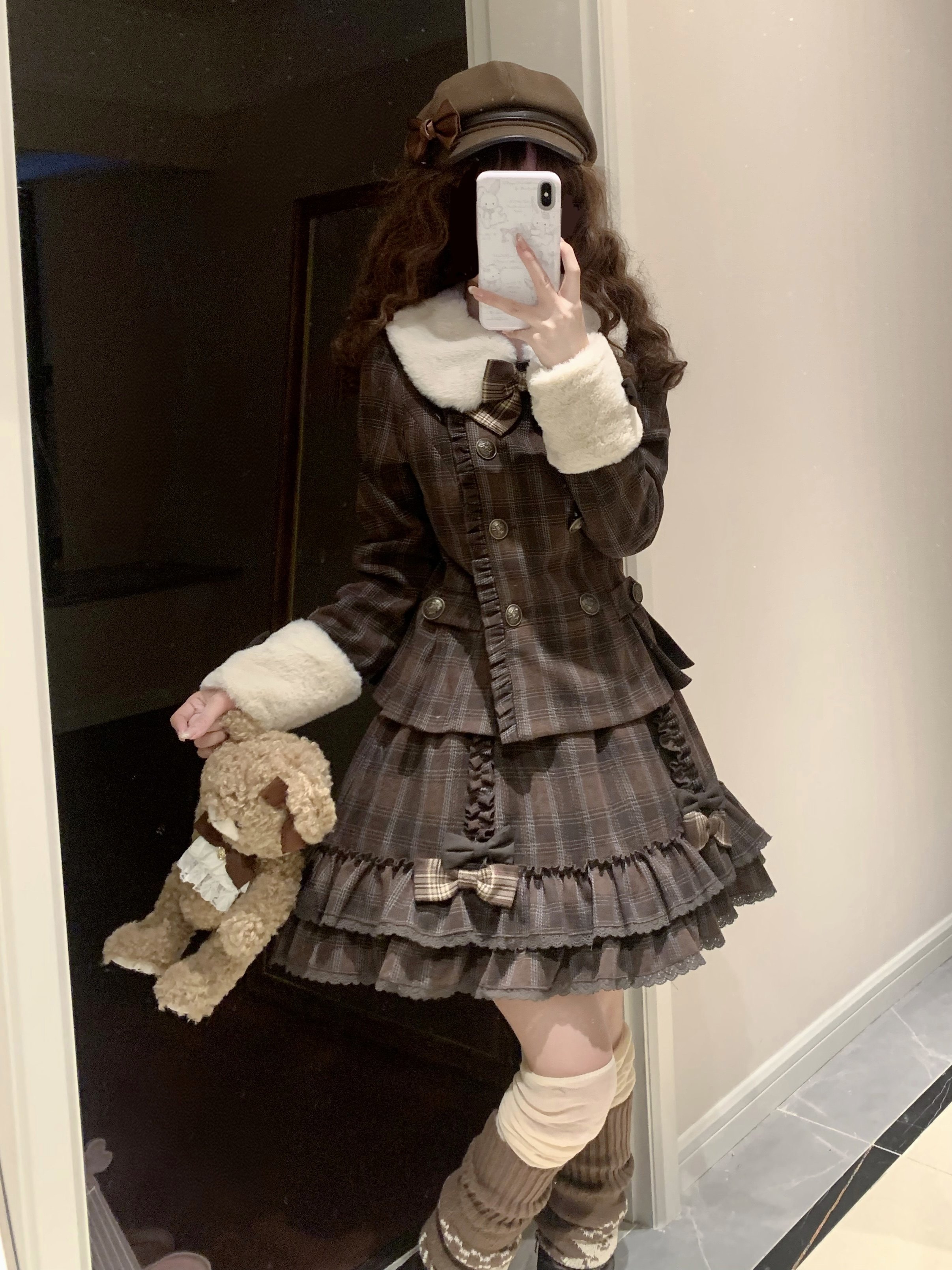Chocolate sandwich two-piece suit for winter slim fit and warmth covered with ancient plaid fabric, sweet dream Lolita plaid