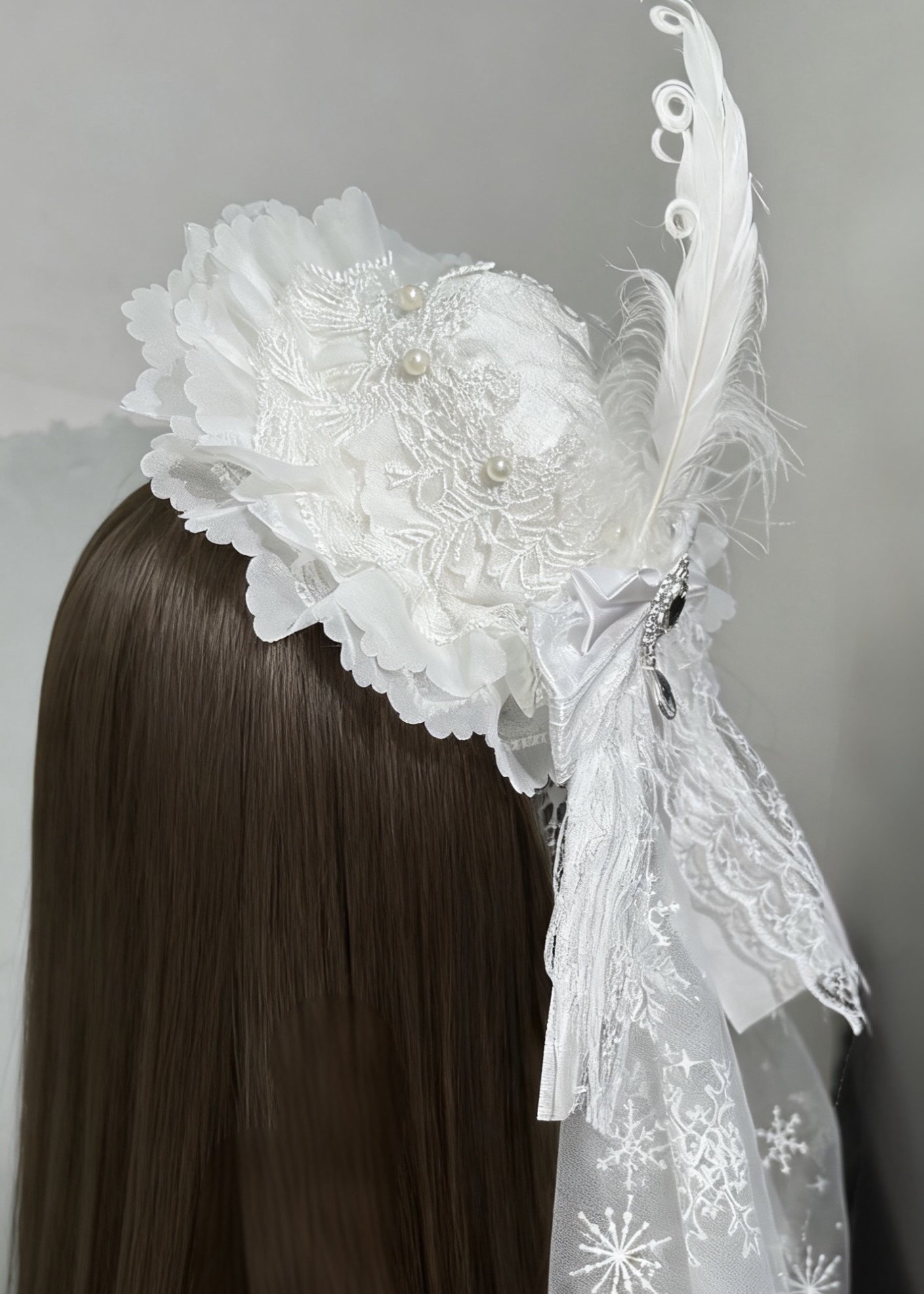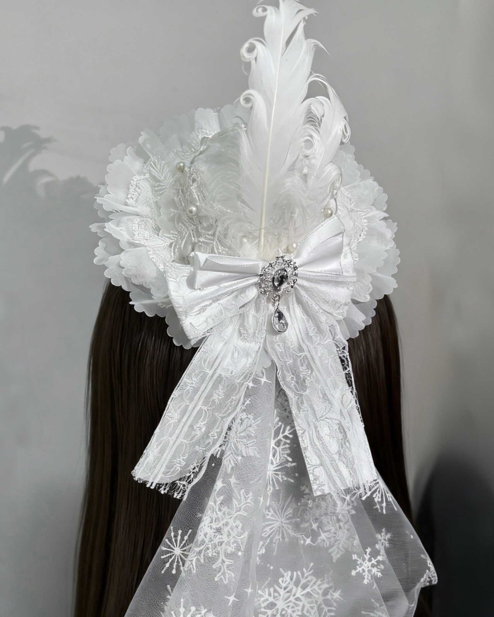 手作雀之羽礼帽千堆雪礼帽lolita礼帽头饰 手作可爱华丽白色黑色 [Original Page Link]