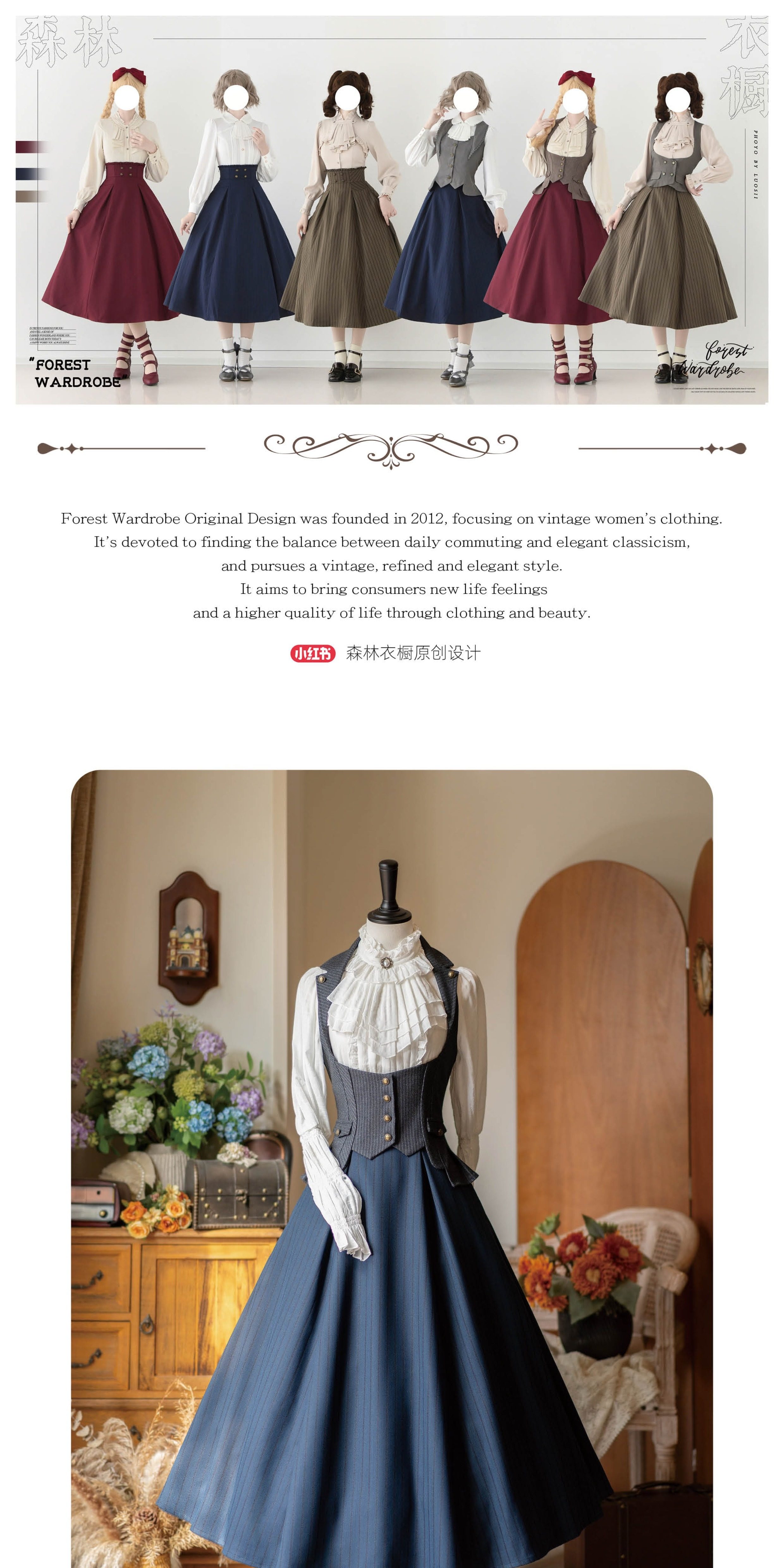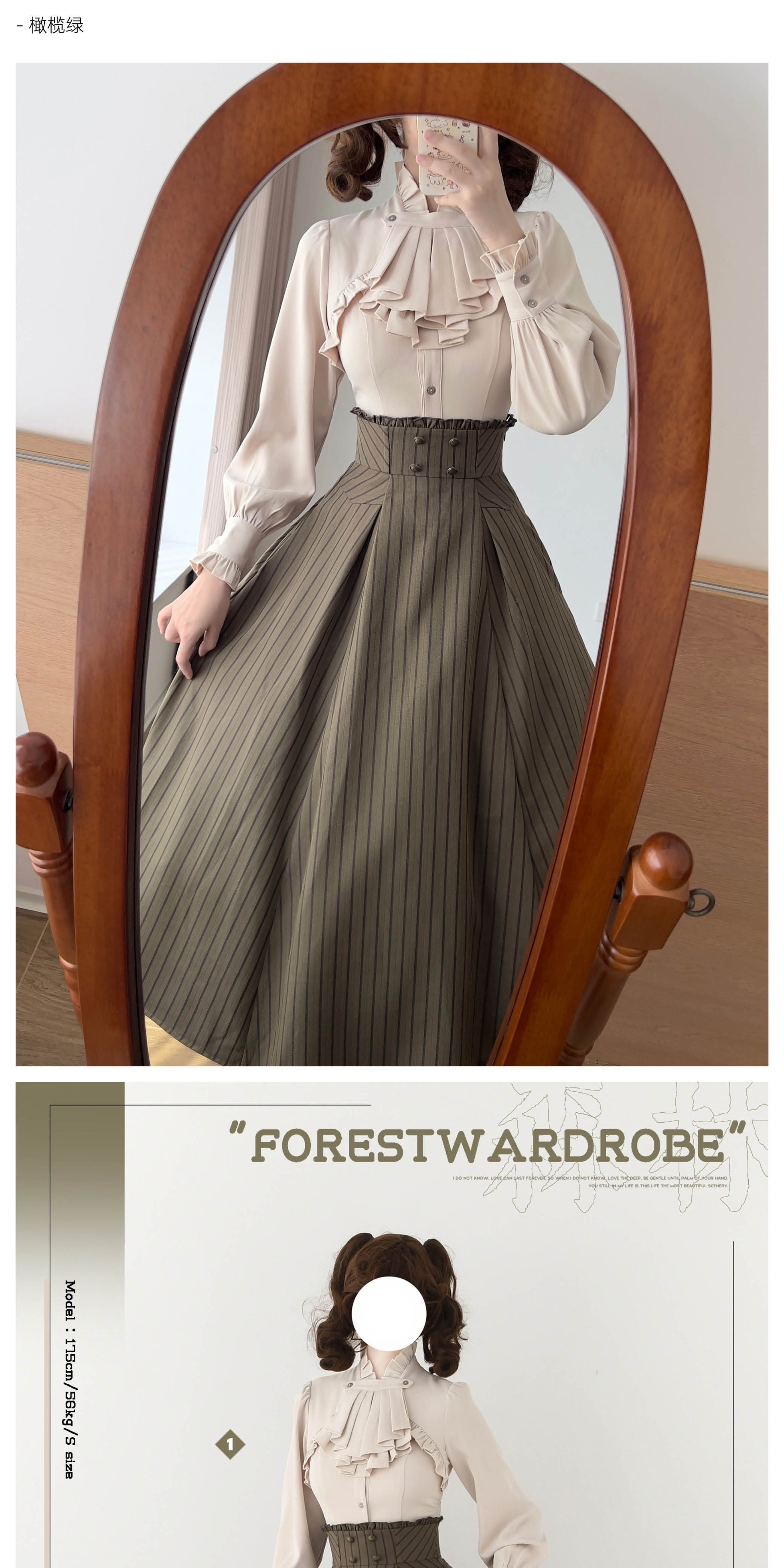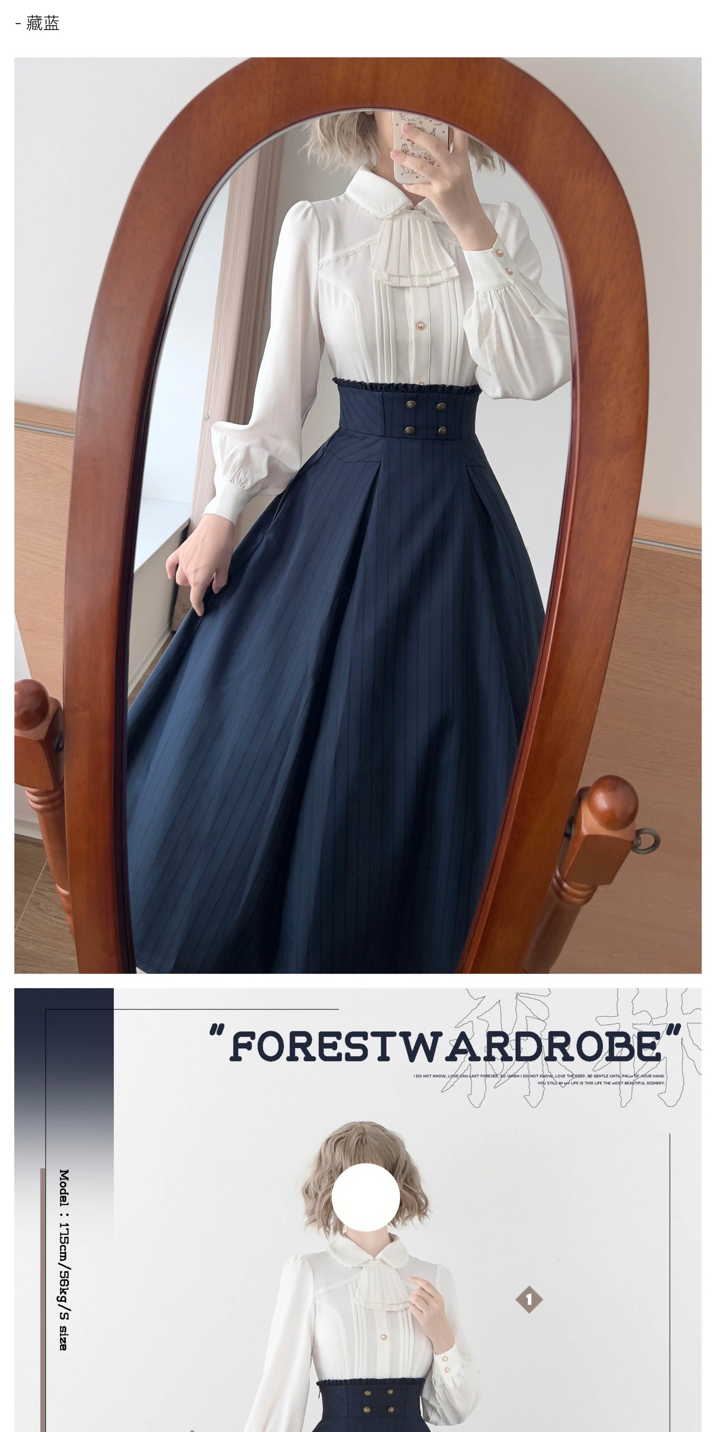【森林日志】森林衣橱原创覆古优雅鱼骨春秋CLA百搭条纹半裙 [Original Page Link]