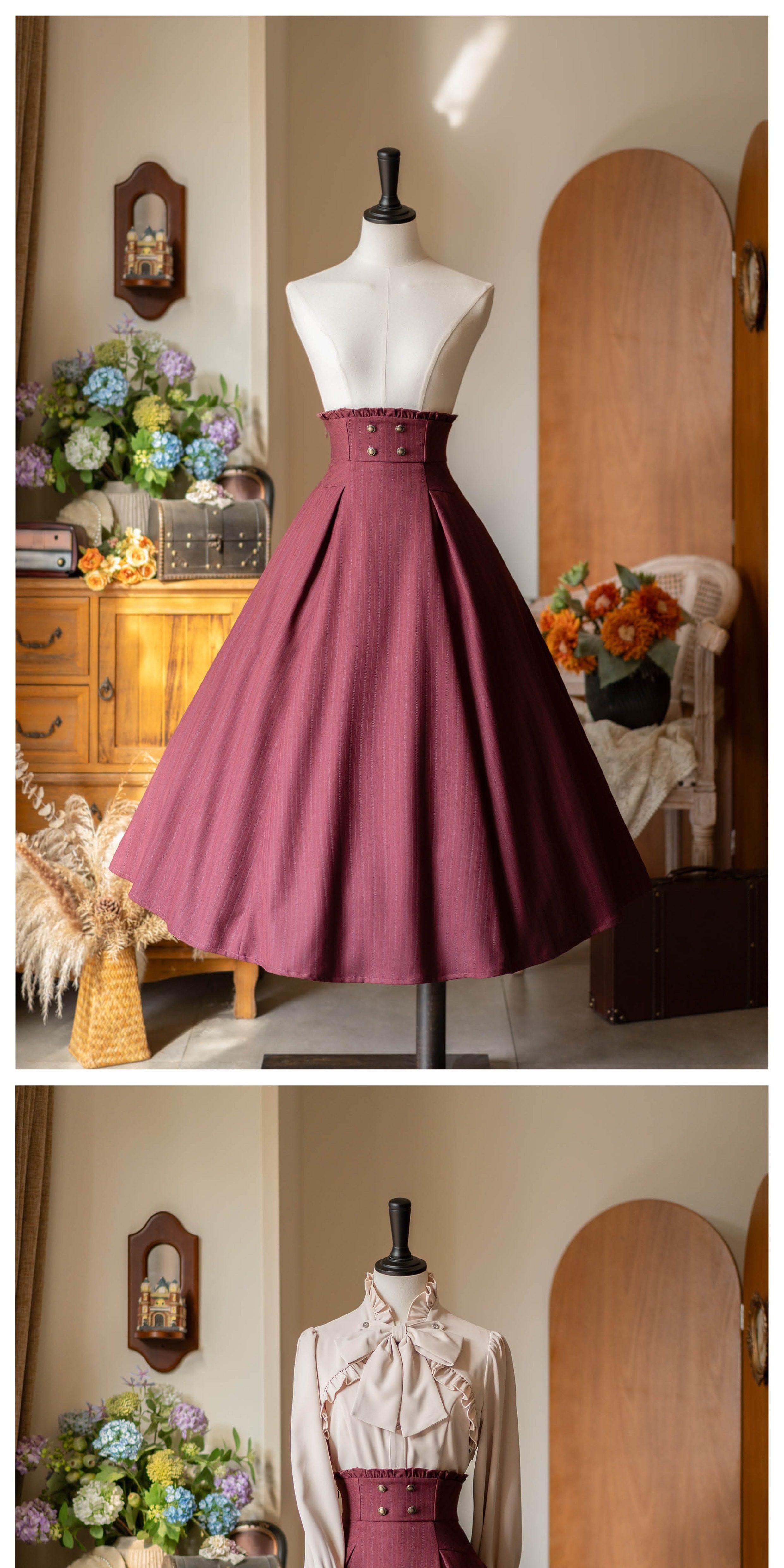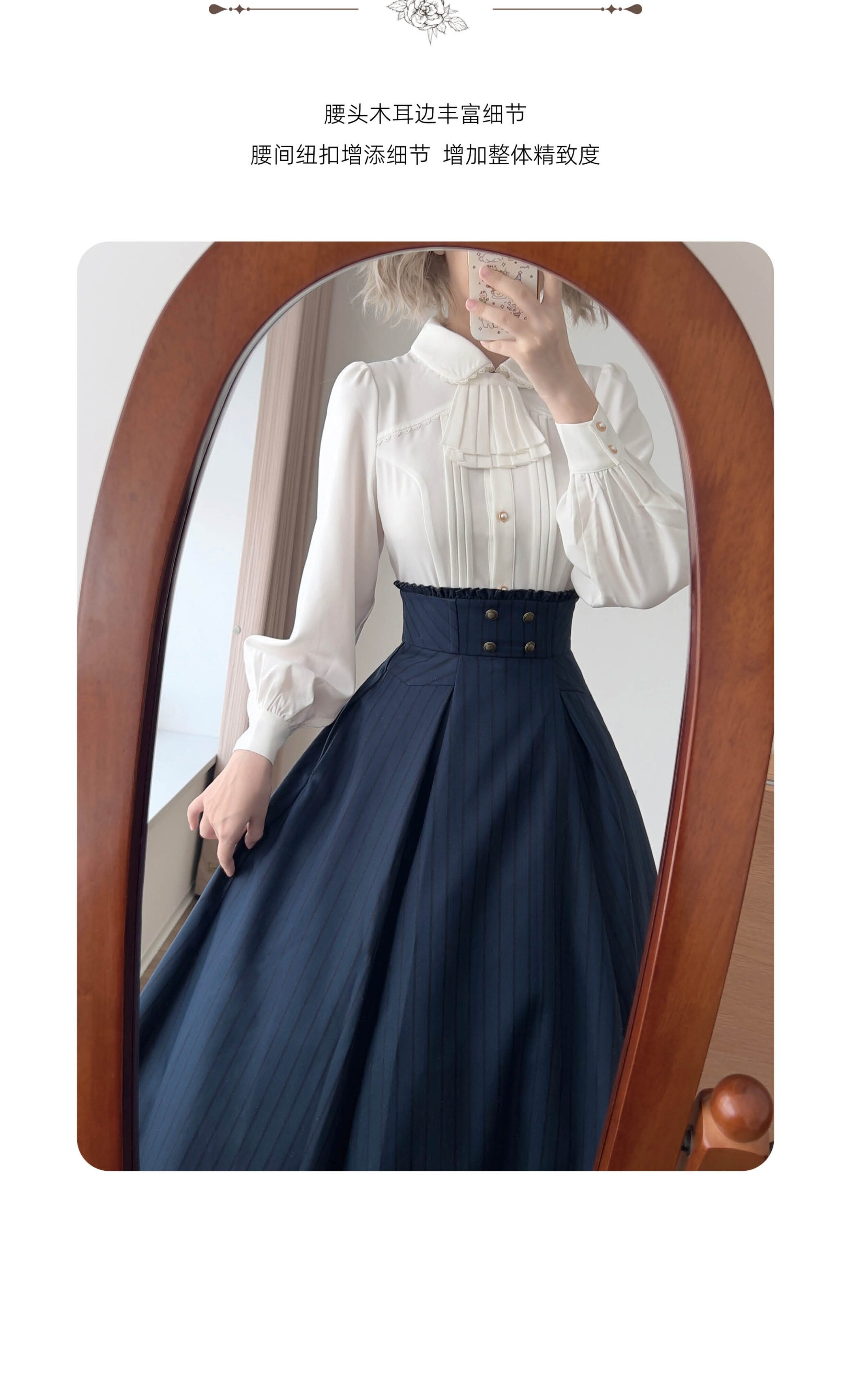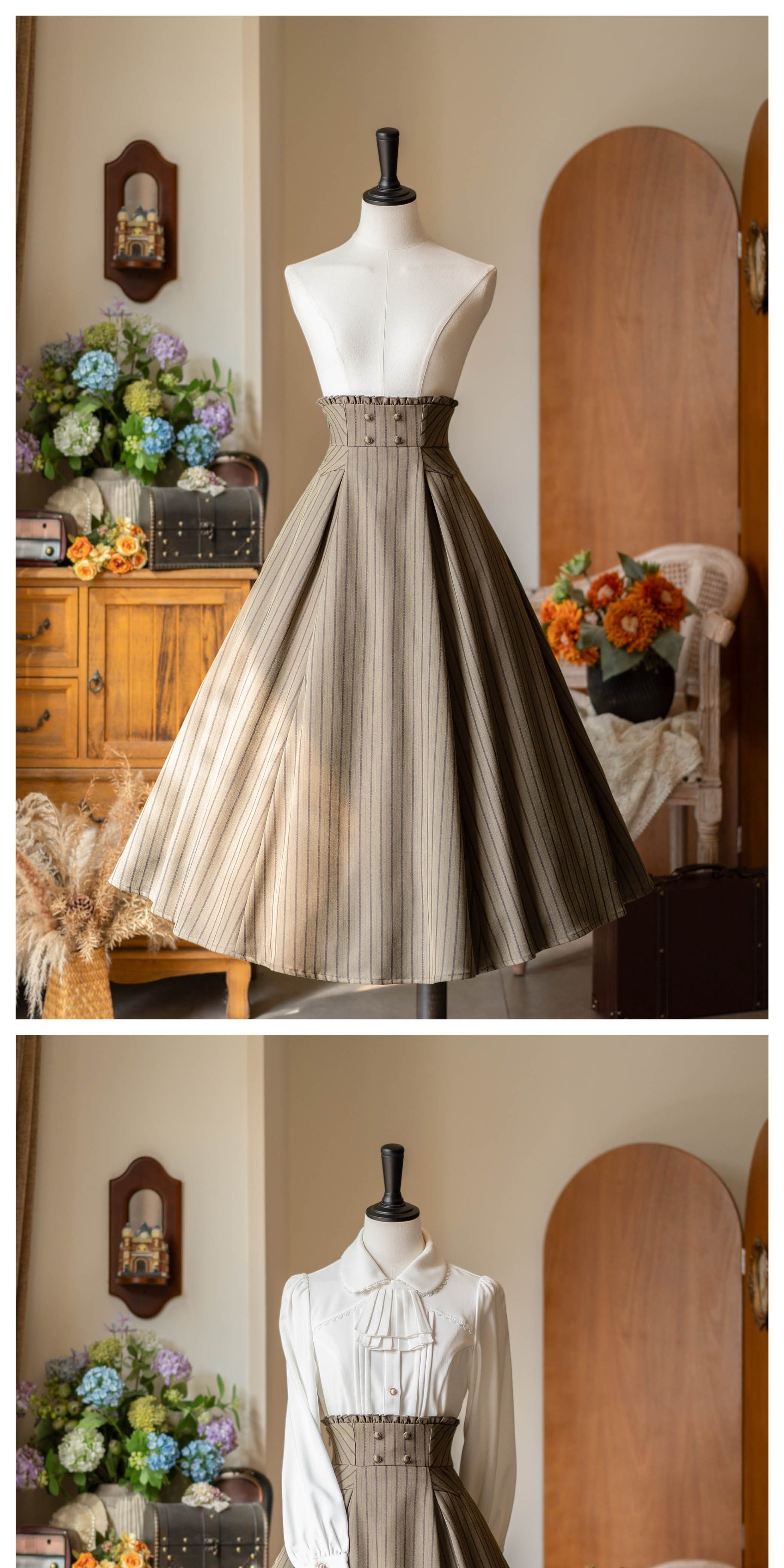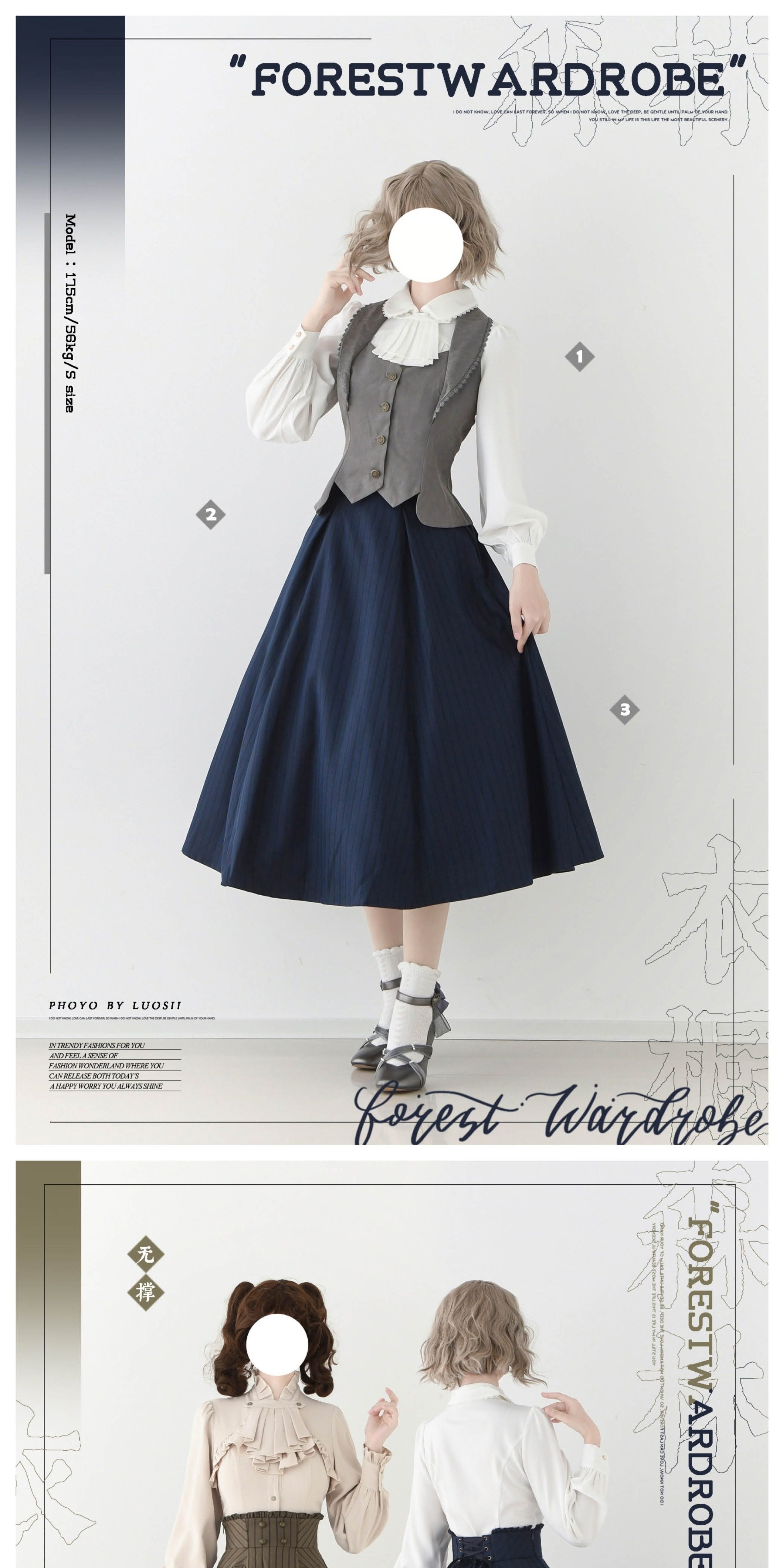 【森林日志】森林衣橱原创覆古优雅鱼骨春秋CLA百搭条纹半裙 [Original Page Link]