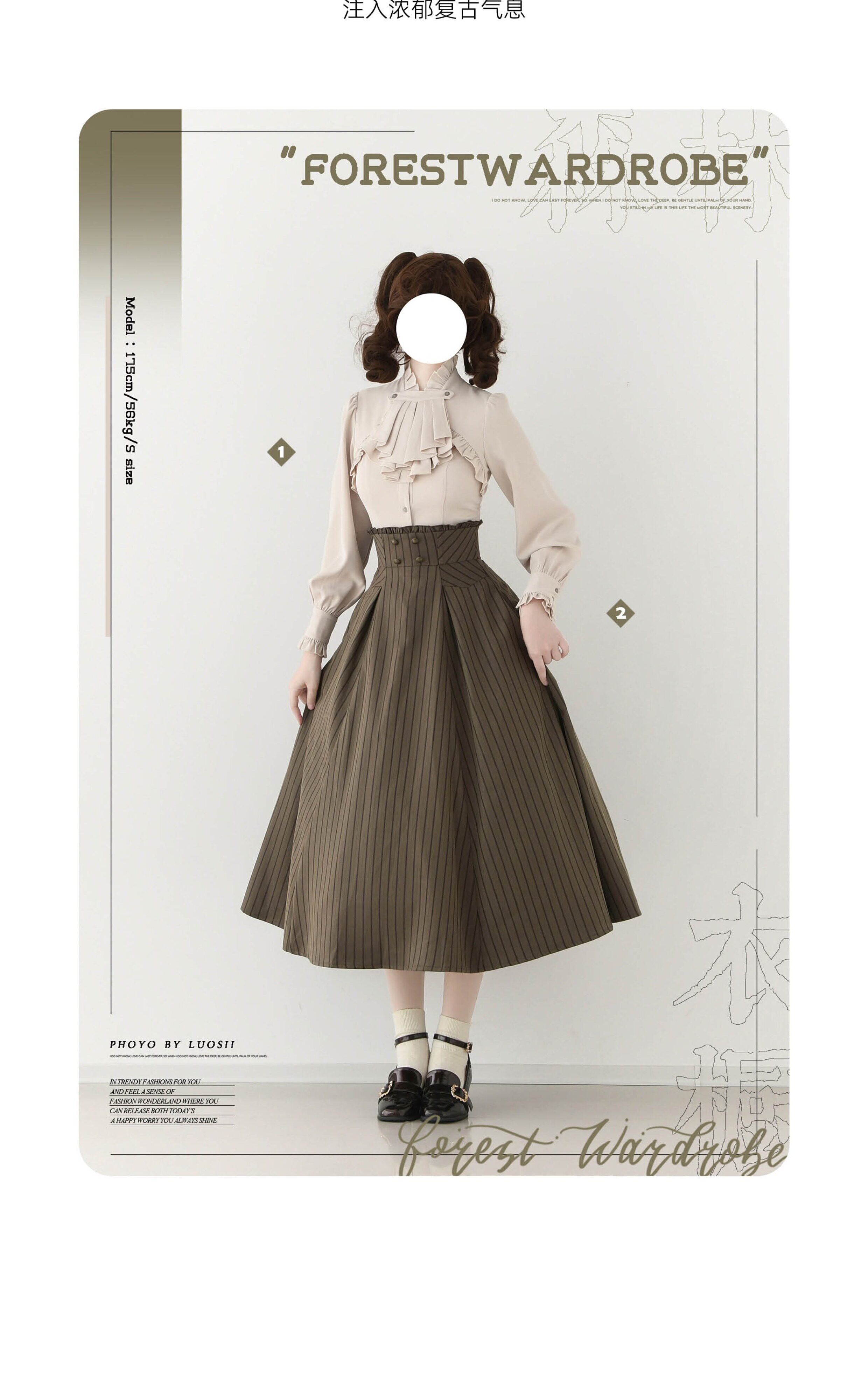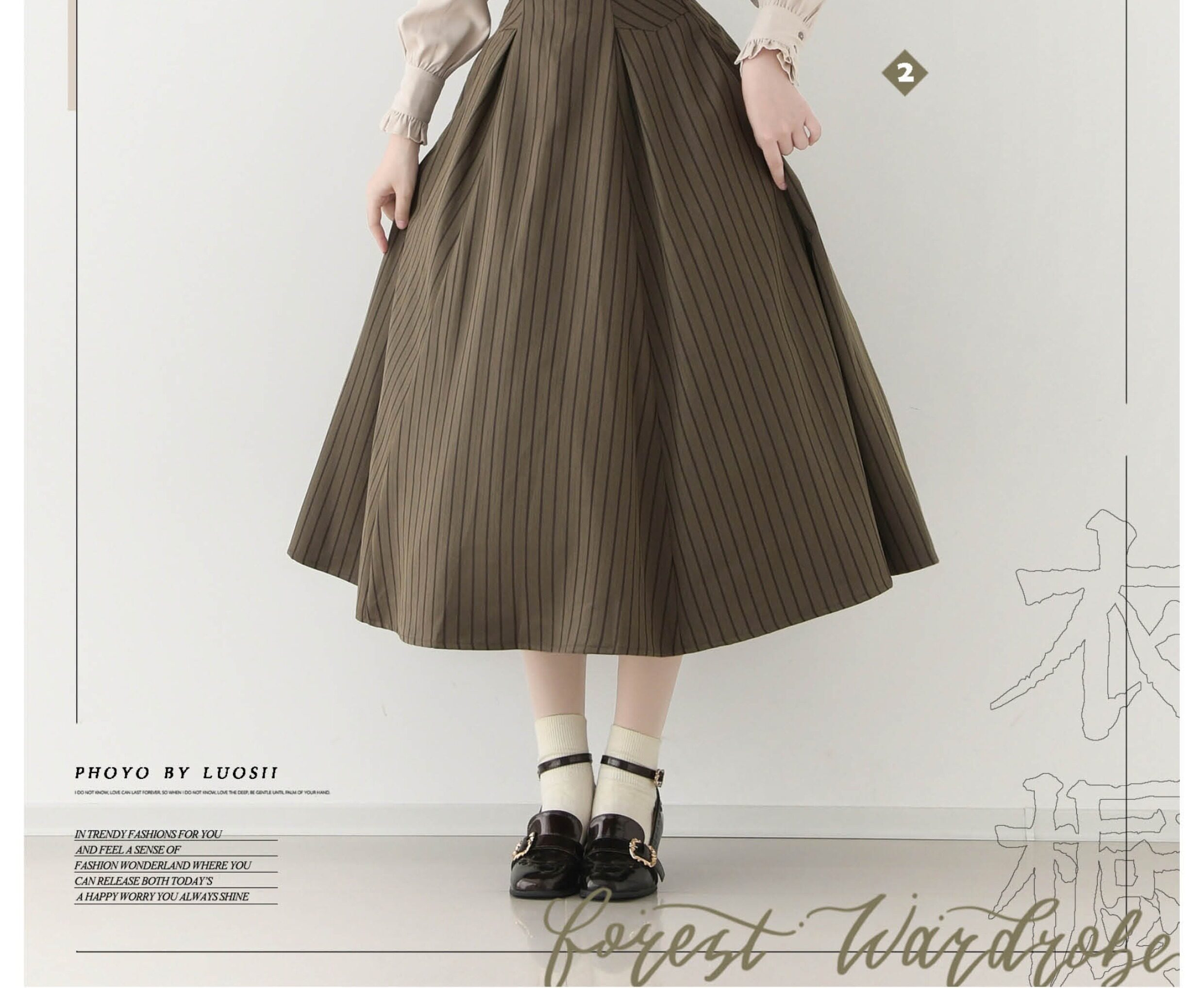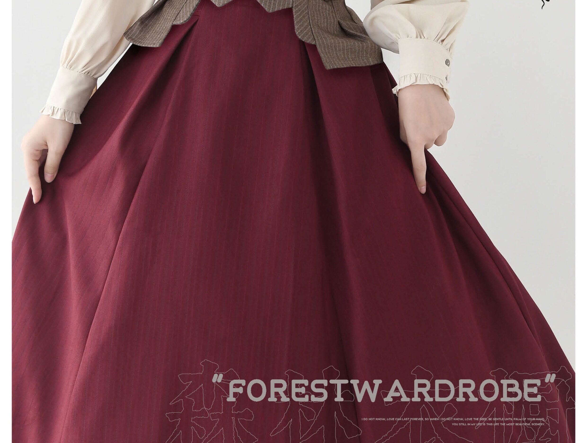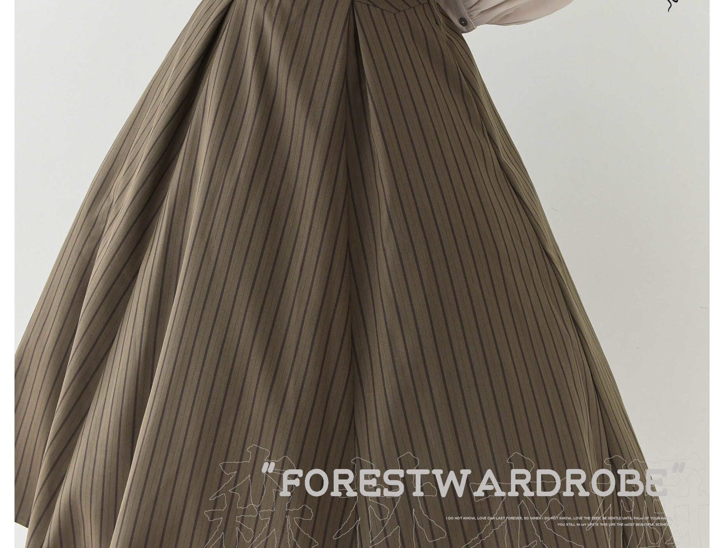 [Forest Log] Forest Wardrobe Original Retro Elegant Fishbone Spring and Autumn CLA Versatile Striped Skirt