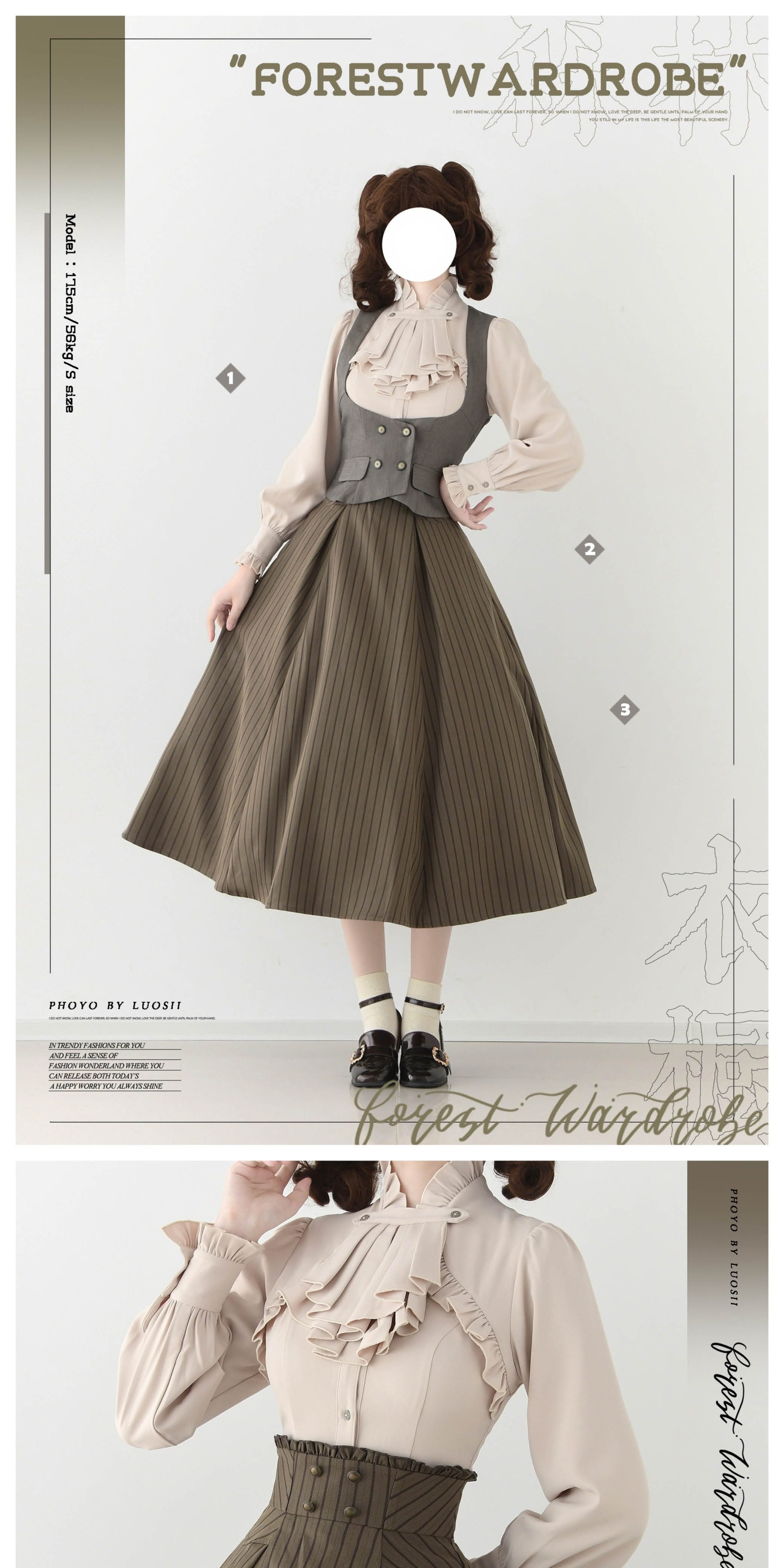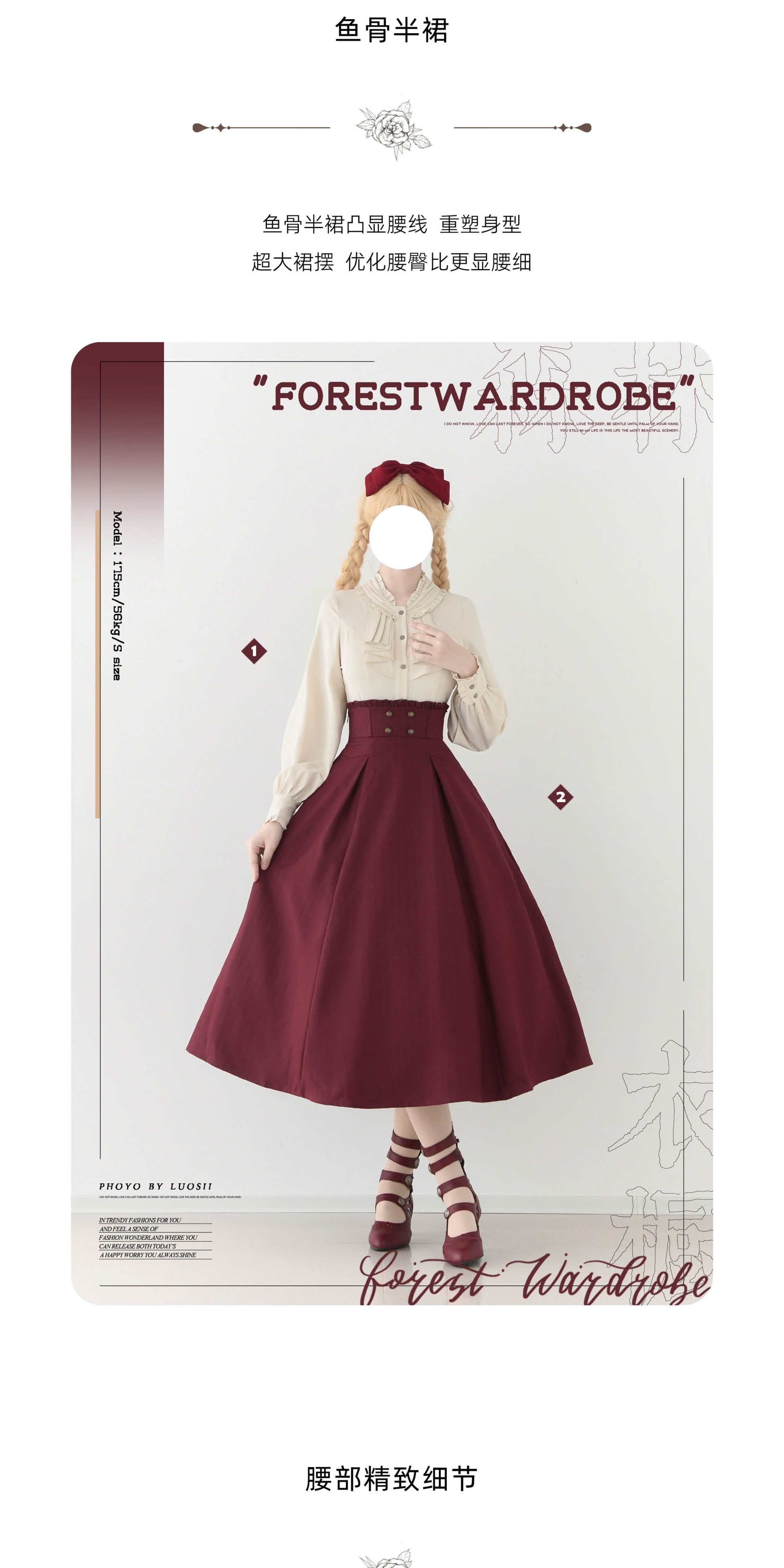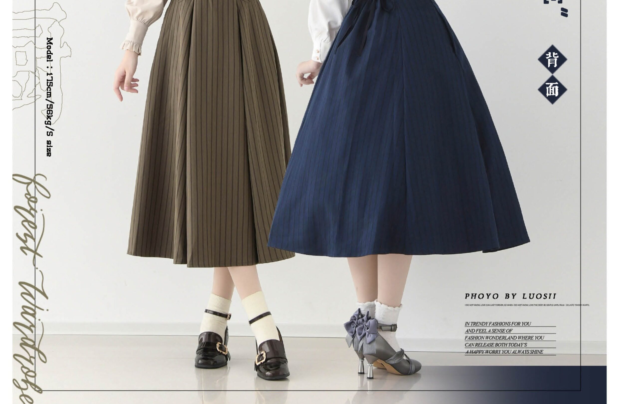[Forest Log] Forest Wardrobe Original Retro Elegant Fishbone Spring and Autumn CLA Versatile Striped Skirt