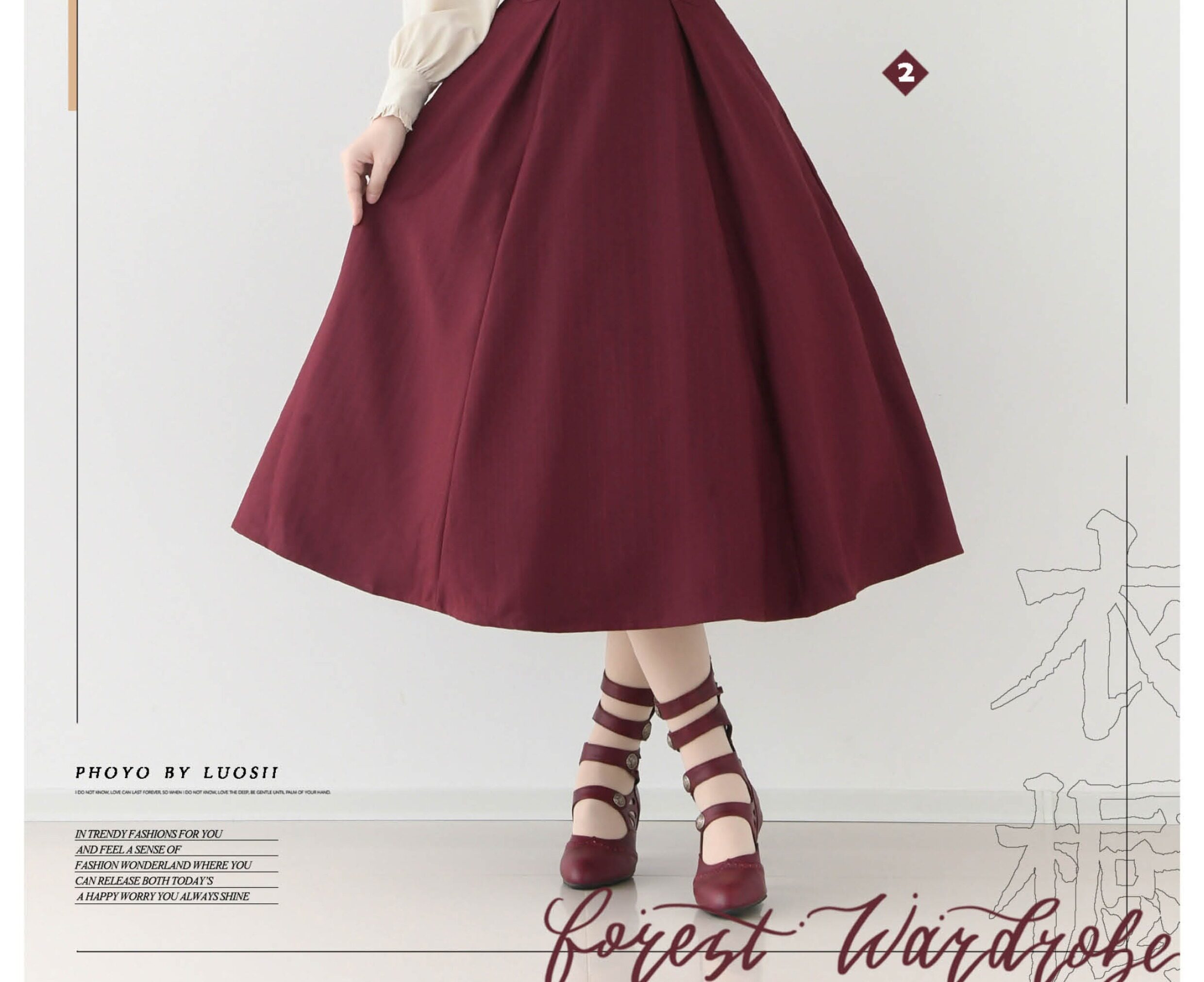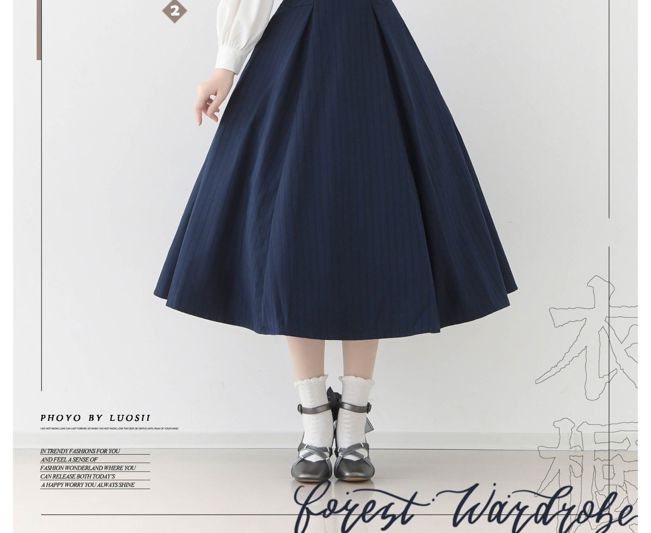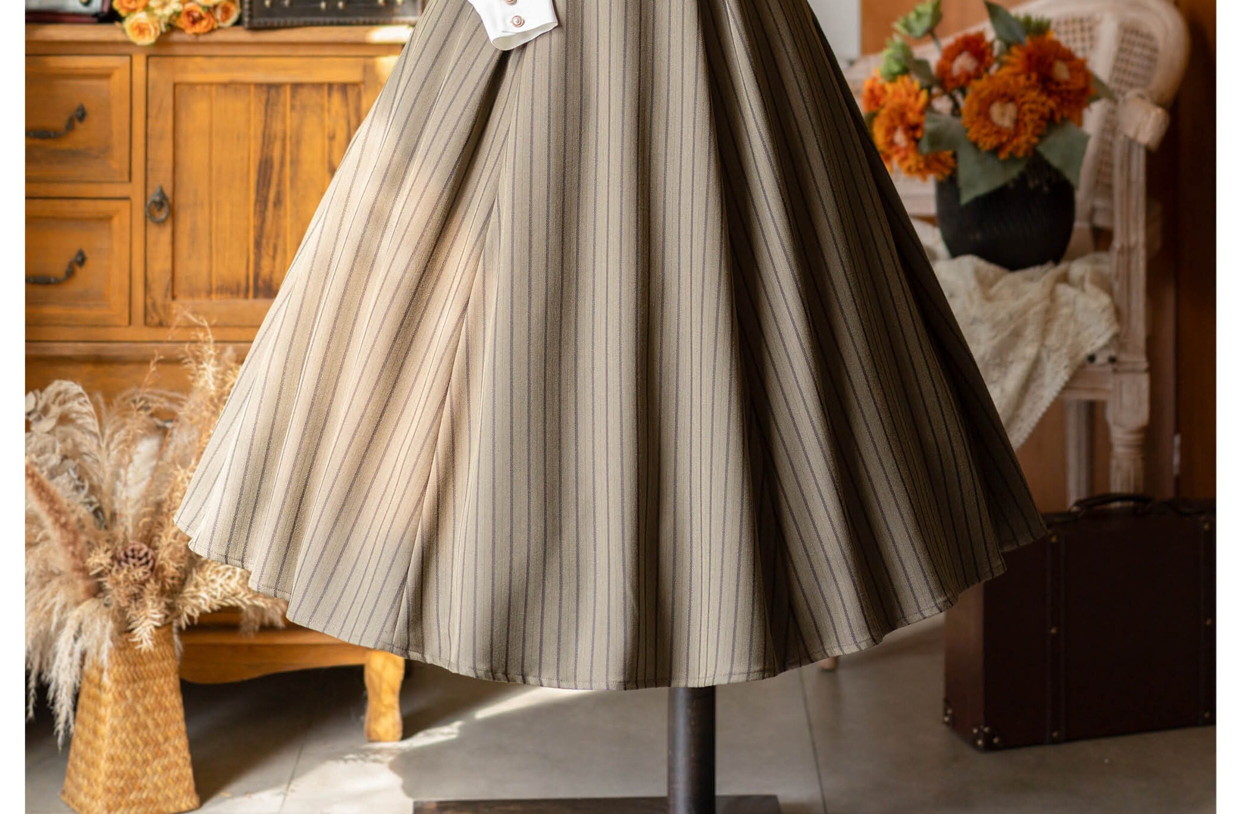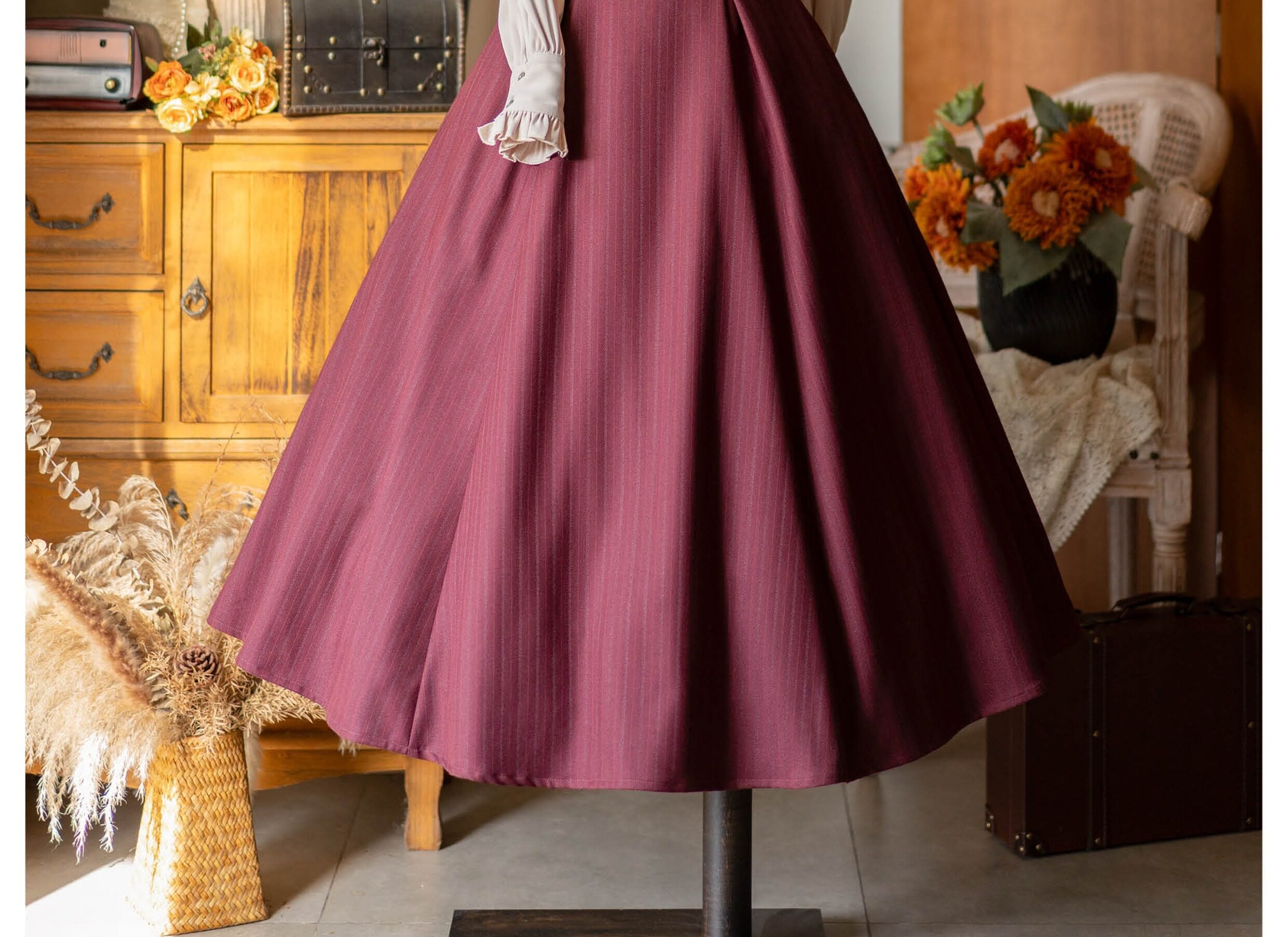 [Forest Log] Forest Wardrobe Original Retro Elegant Fishbone Spring and Autumn CLA Versatile Striped Skirt