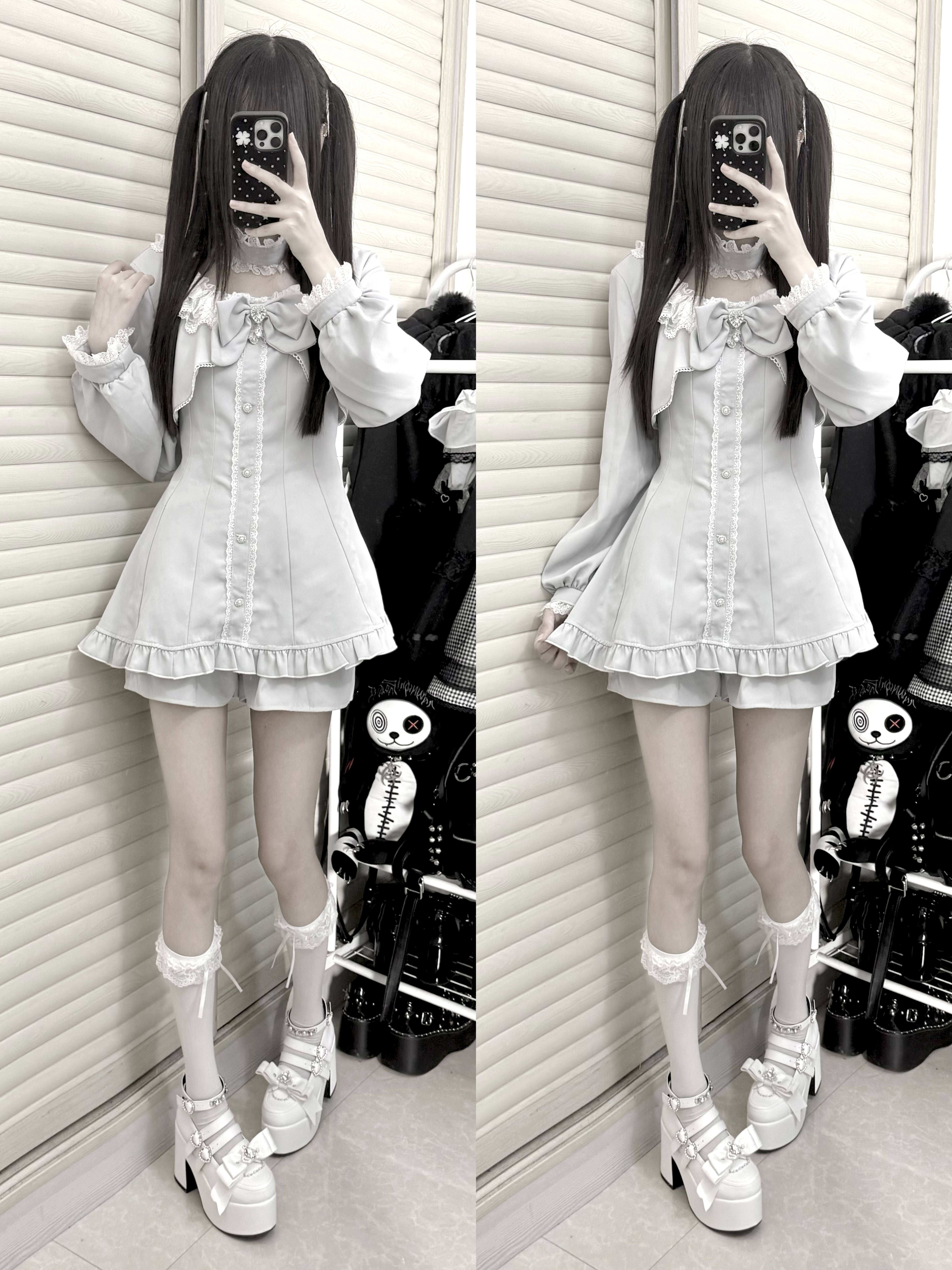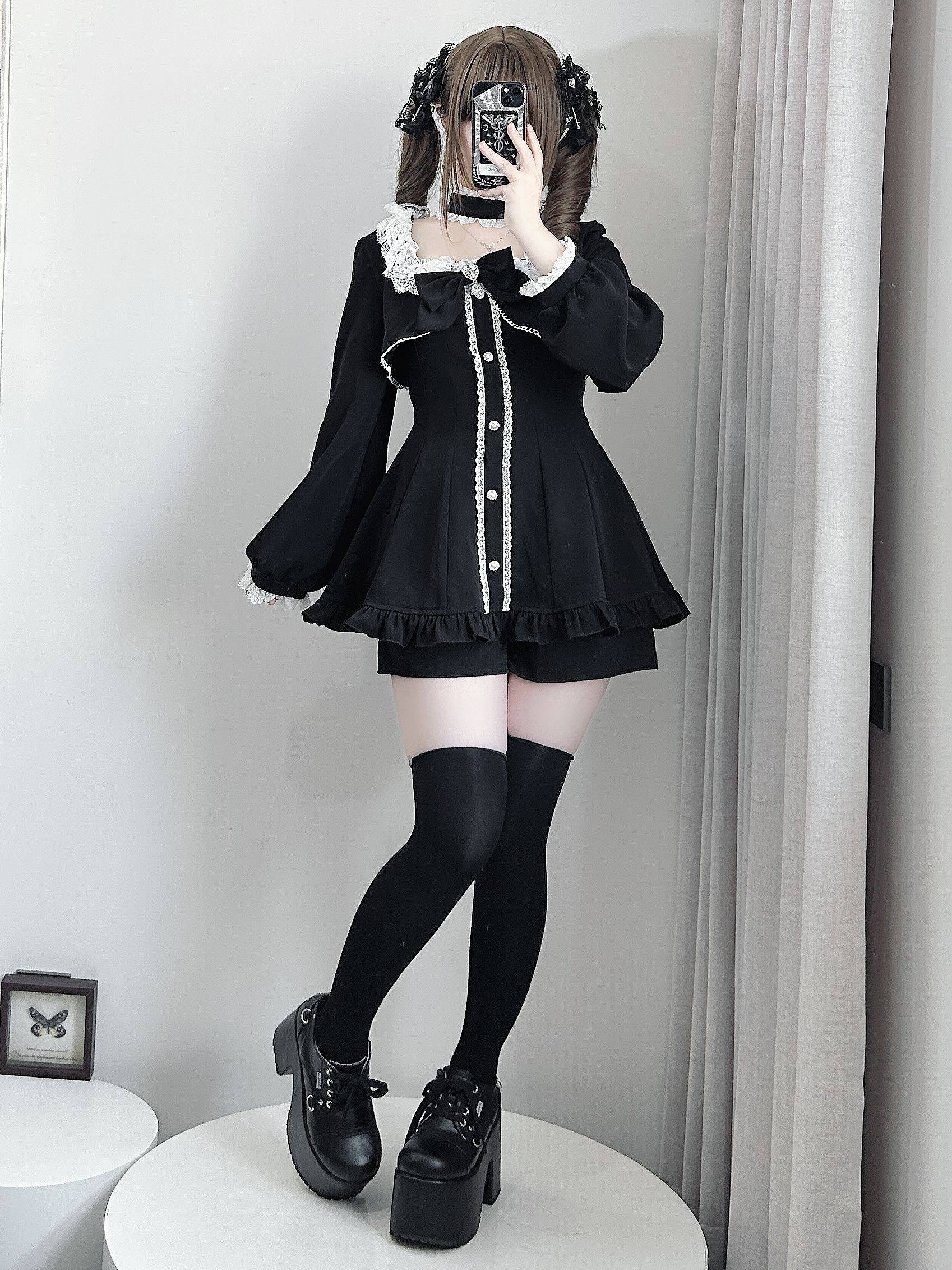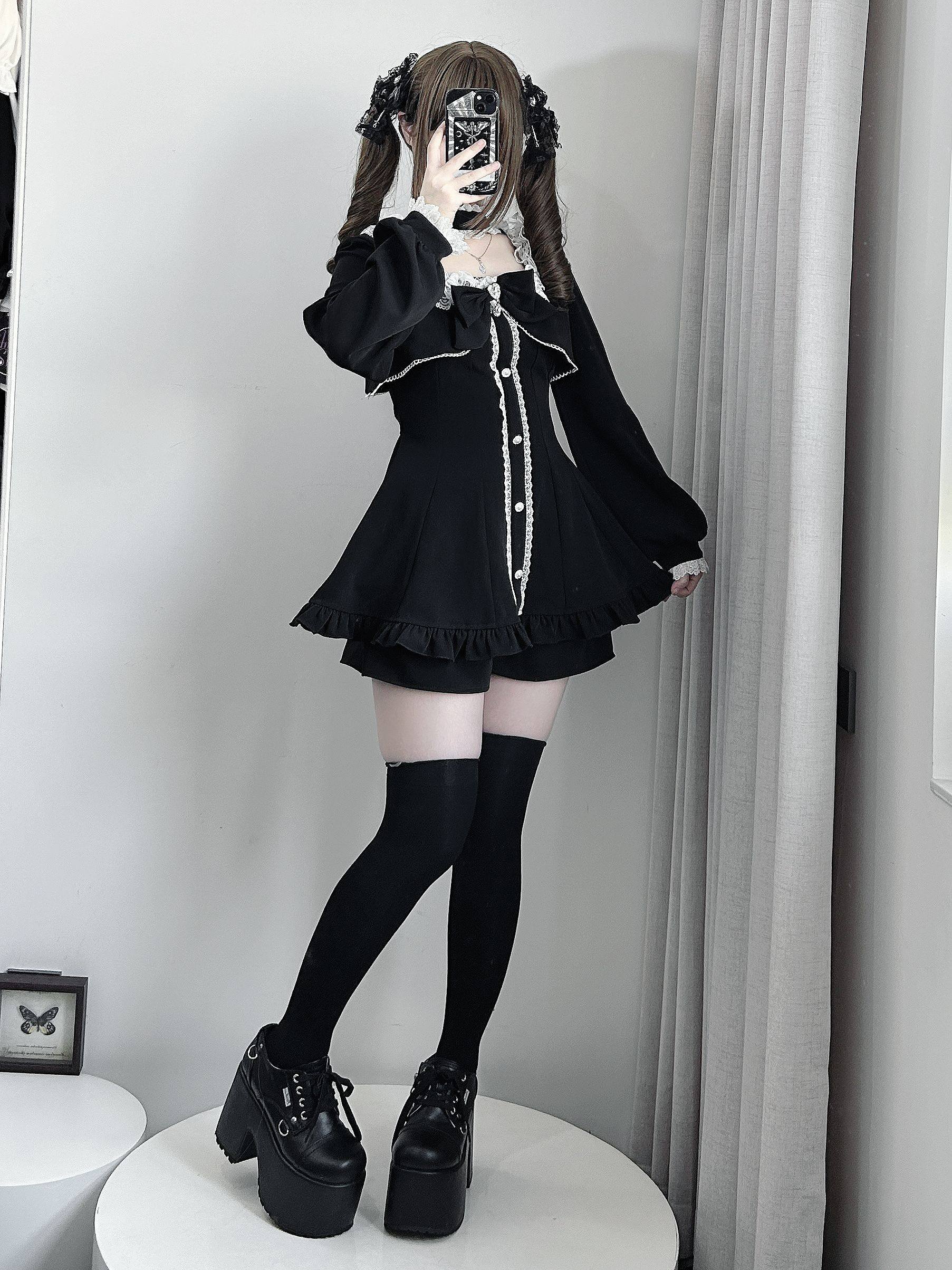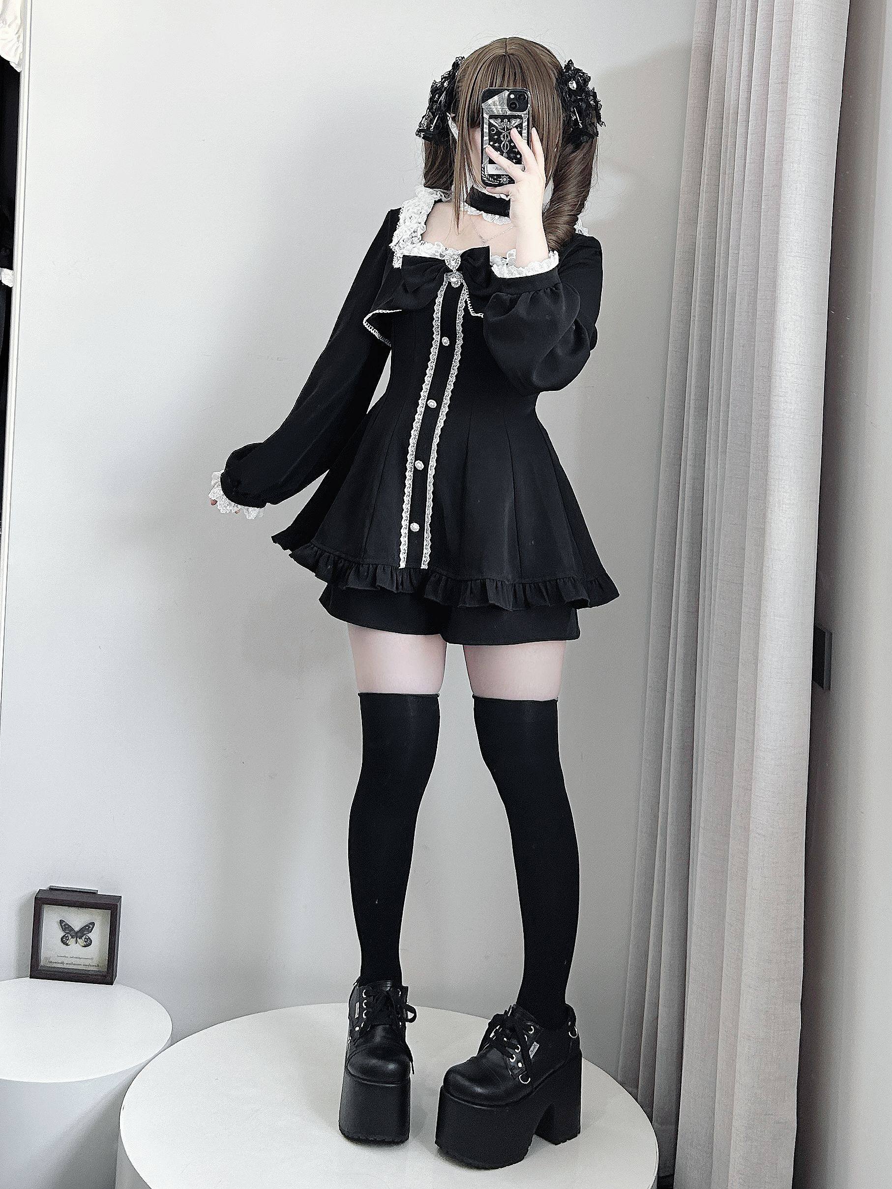 【暮光序曲】原创设计量产型蕾服长袖套装假两件日系蝴蝶结蕾丝萌 [Original Page Link]