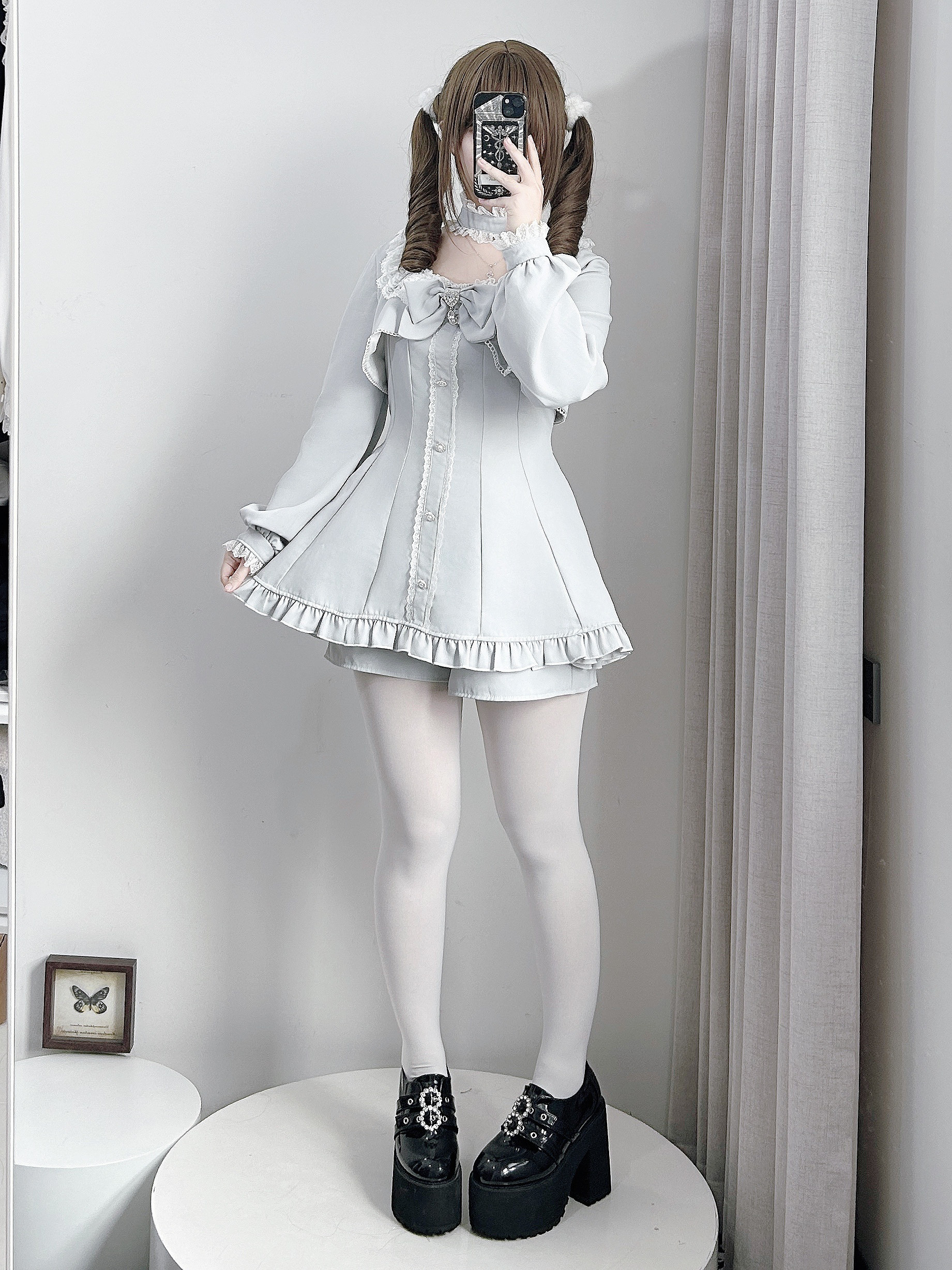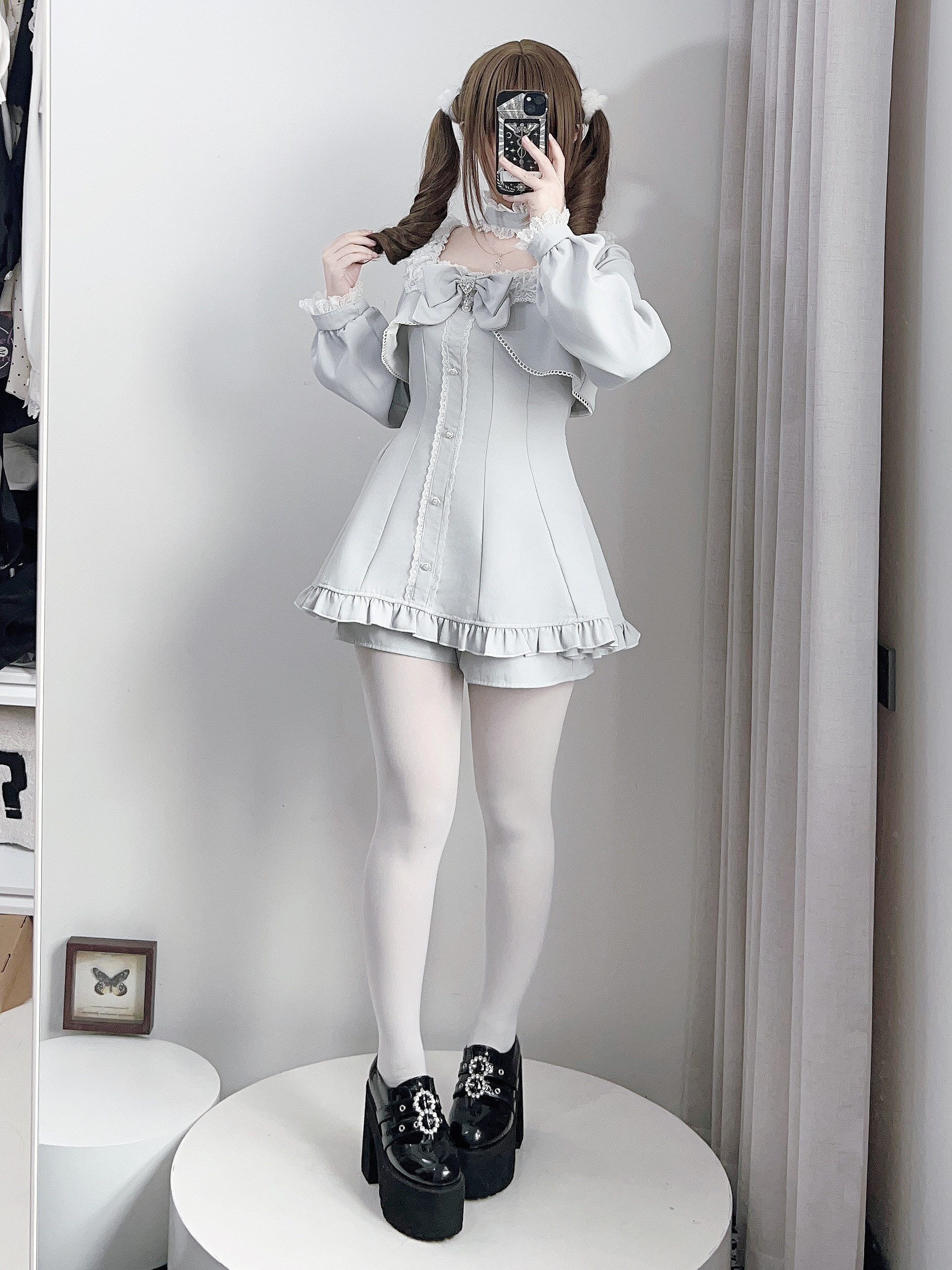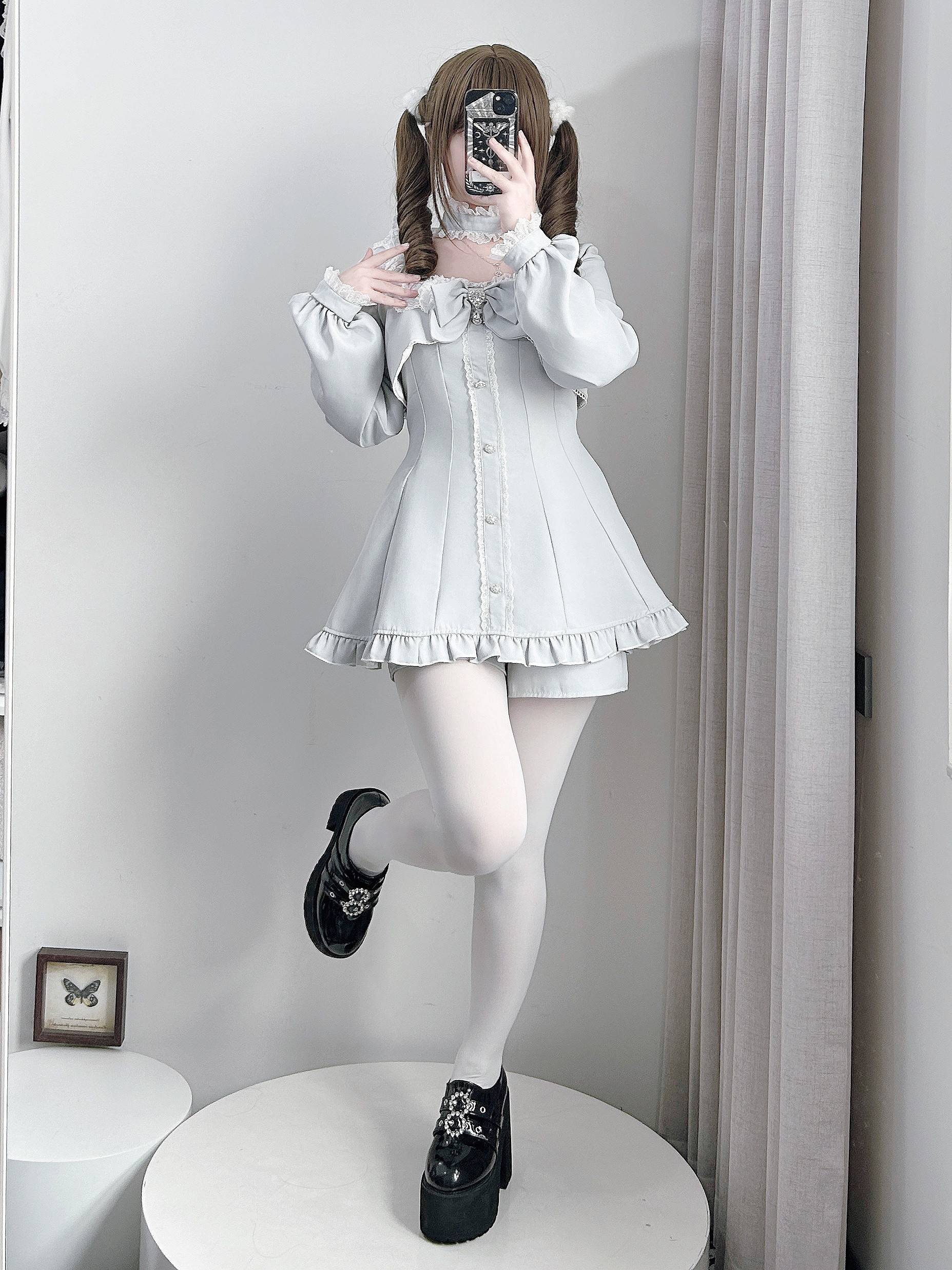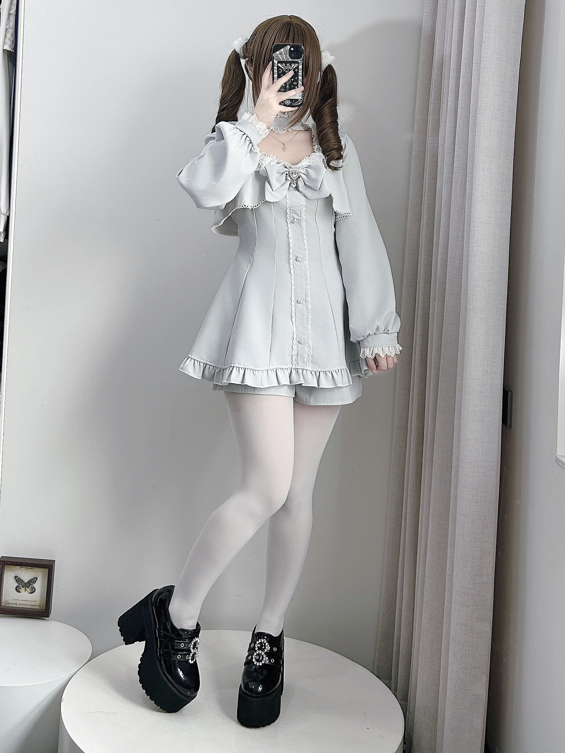 【暮光序曲】原创设计量产型蕾服长袖套装假两件日系蝴蝶结蕾丝萌 [Original Page Link]