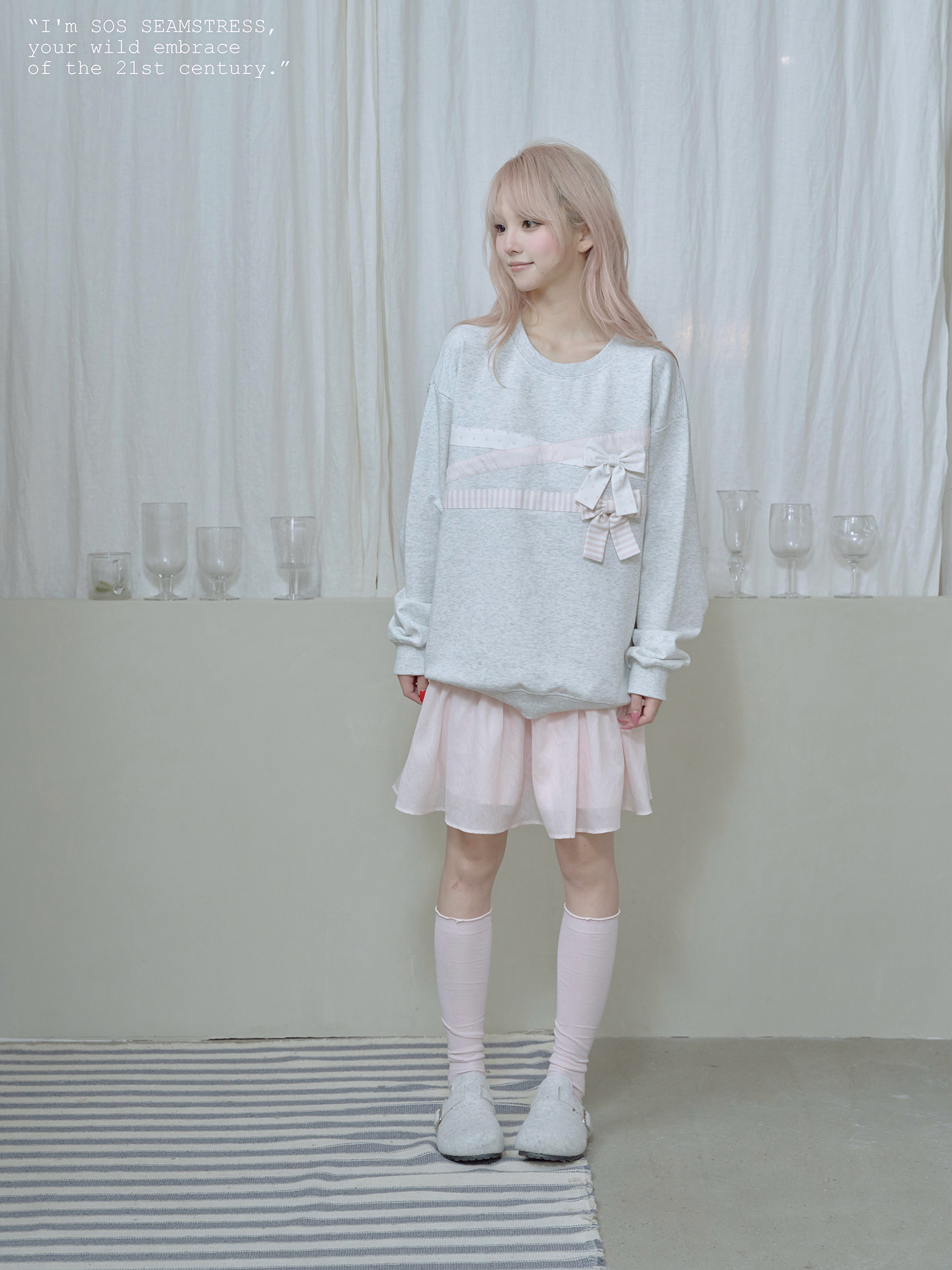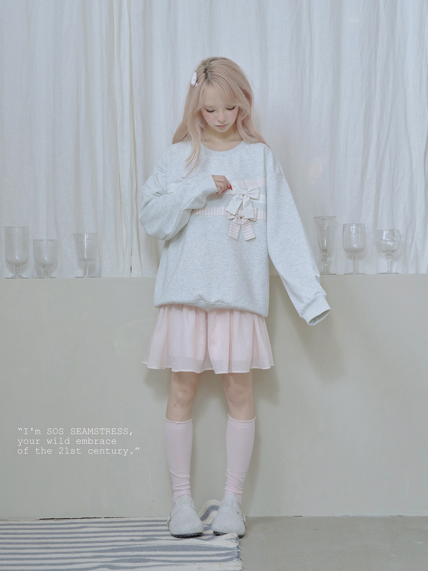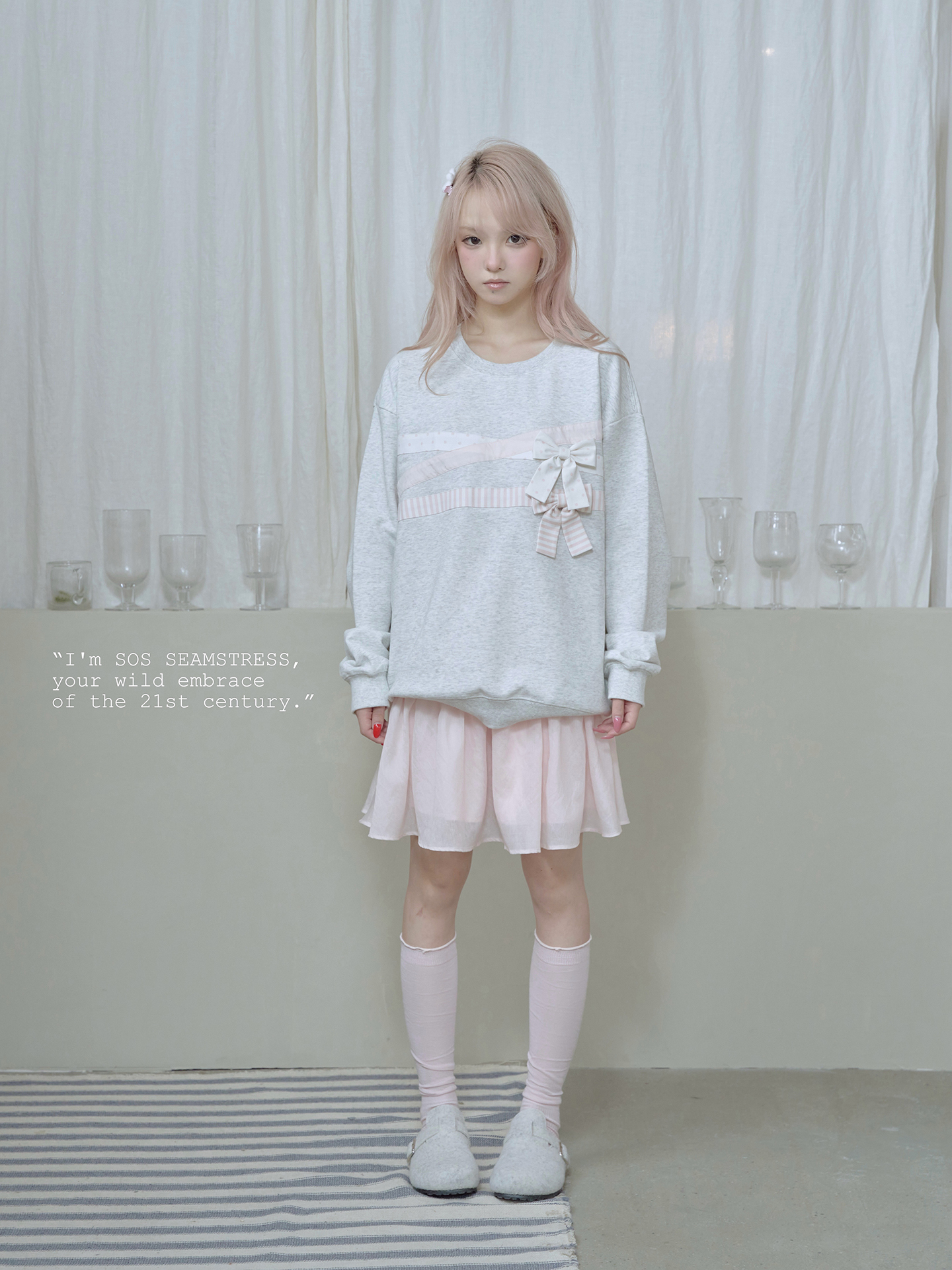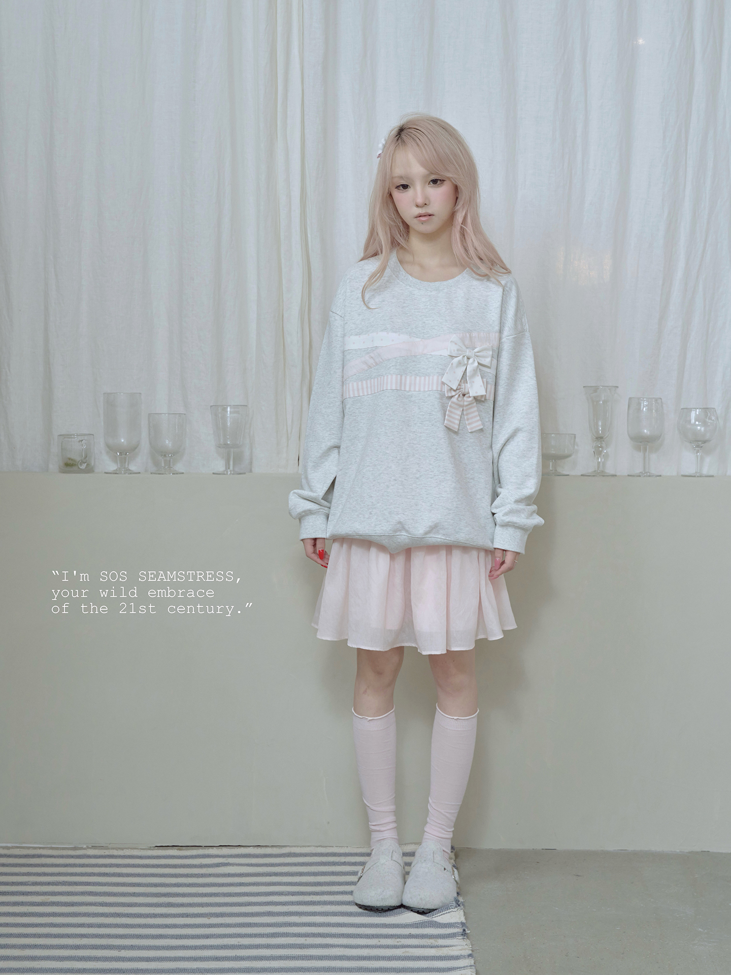 SOS SEAMSTRESS纯棉蝴蝶结波点拼接条纹卫衣宽松圆领套头长袖上衣 [Original Page Link]