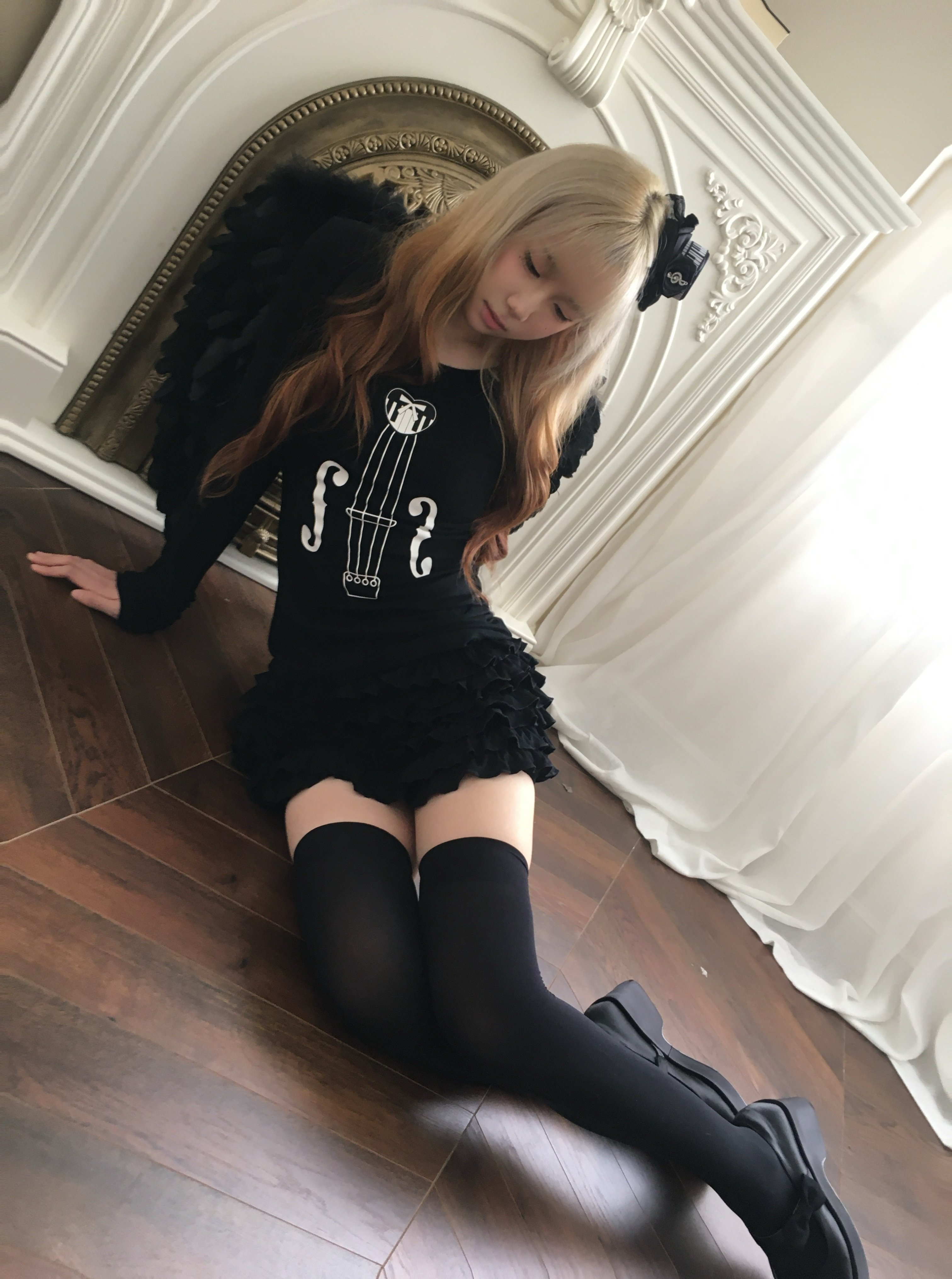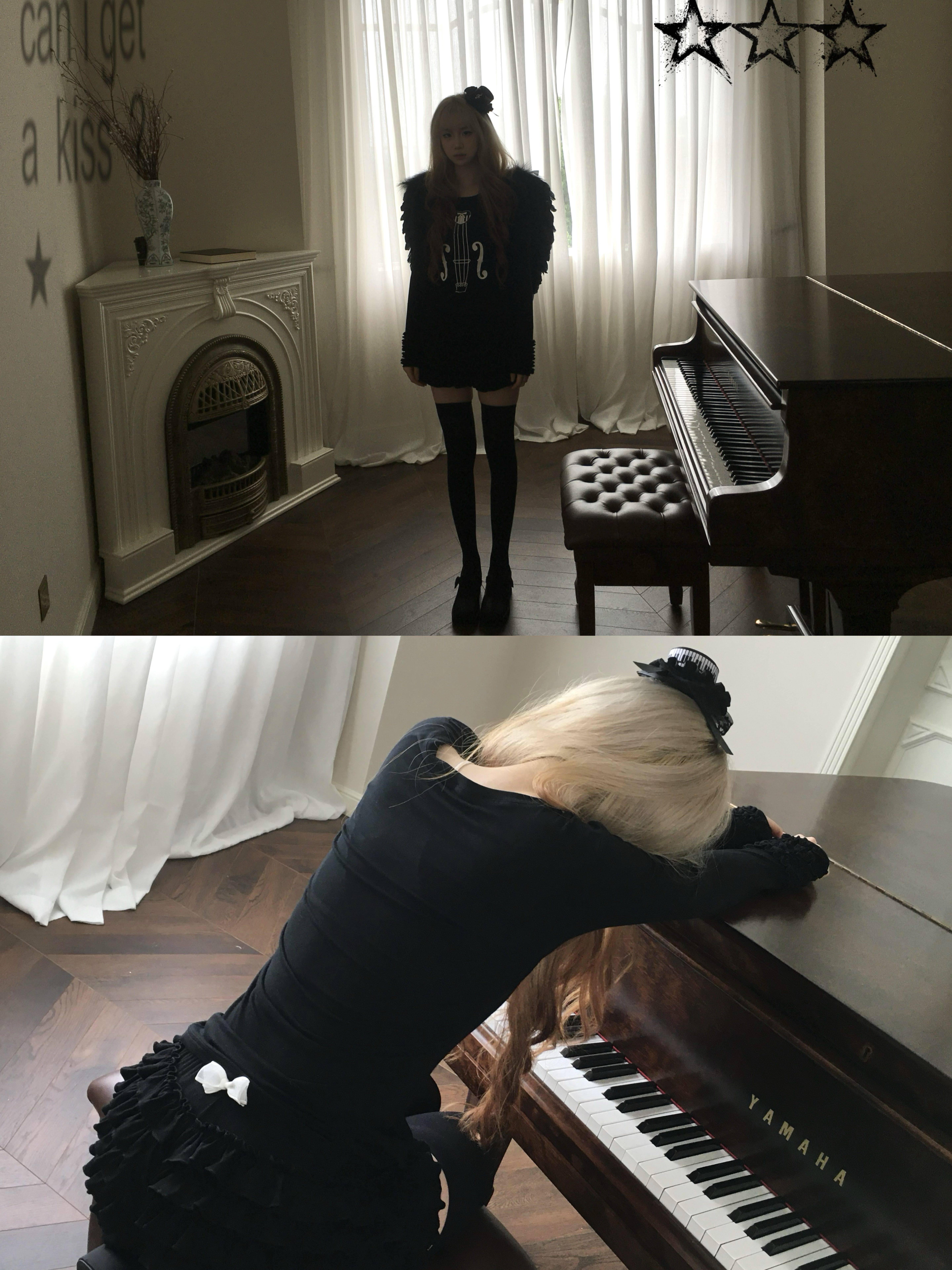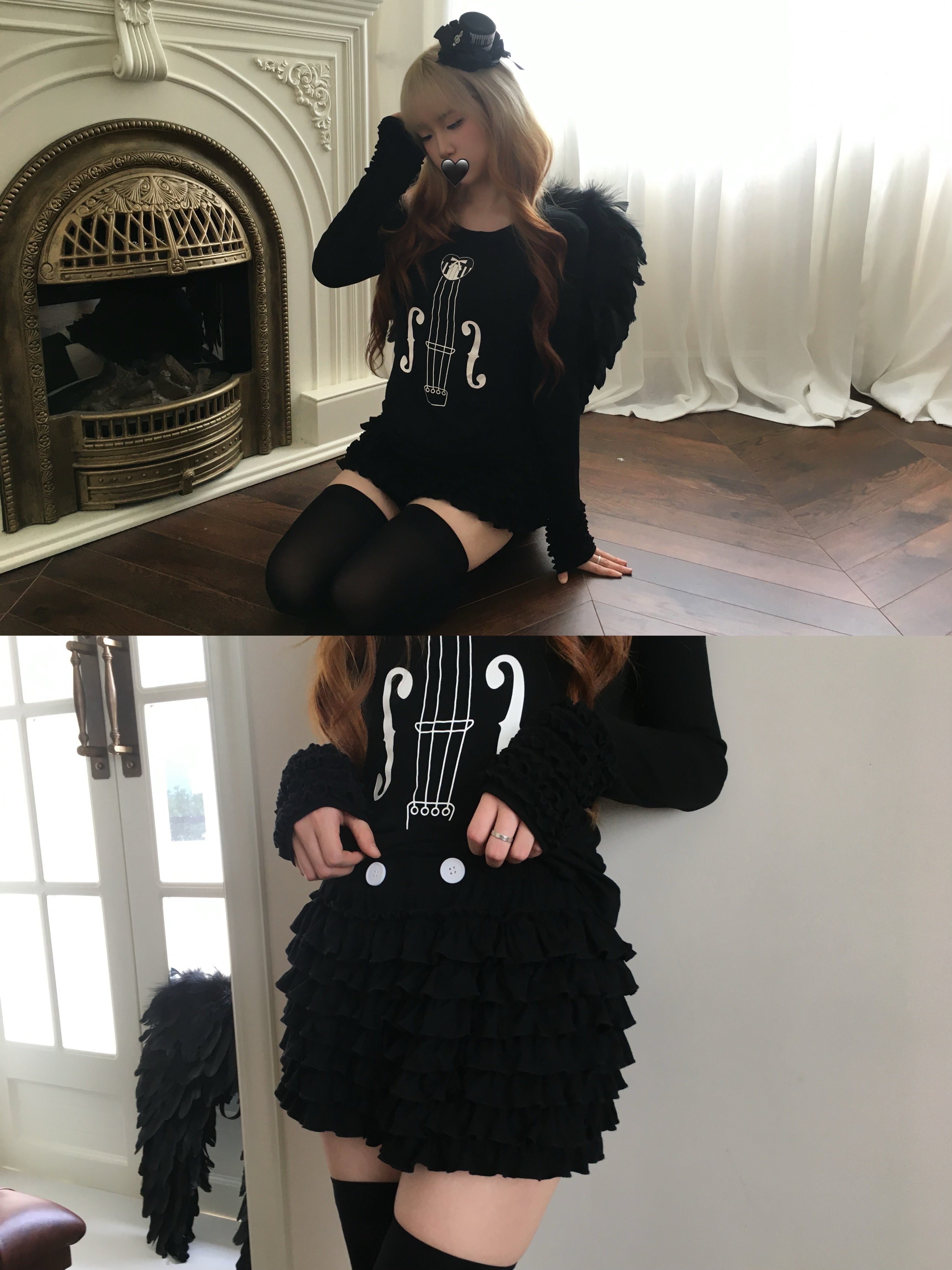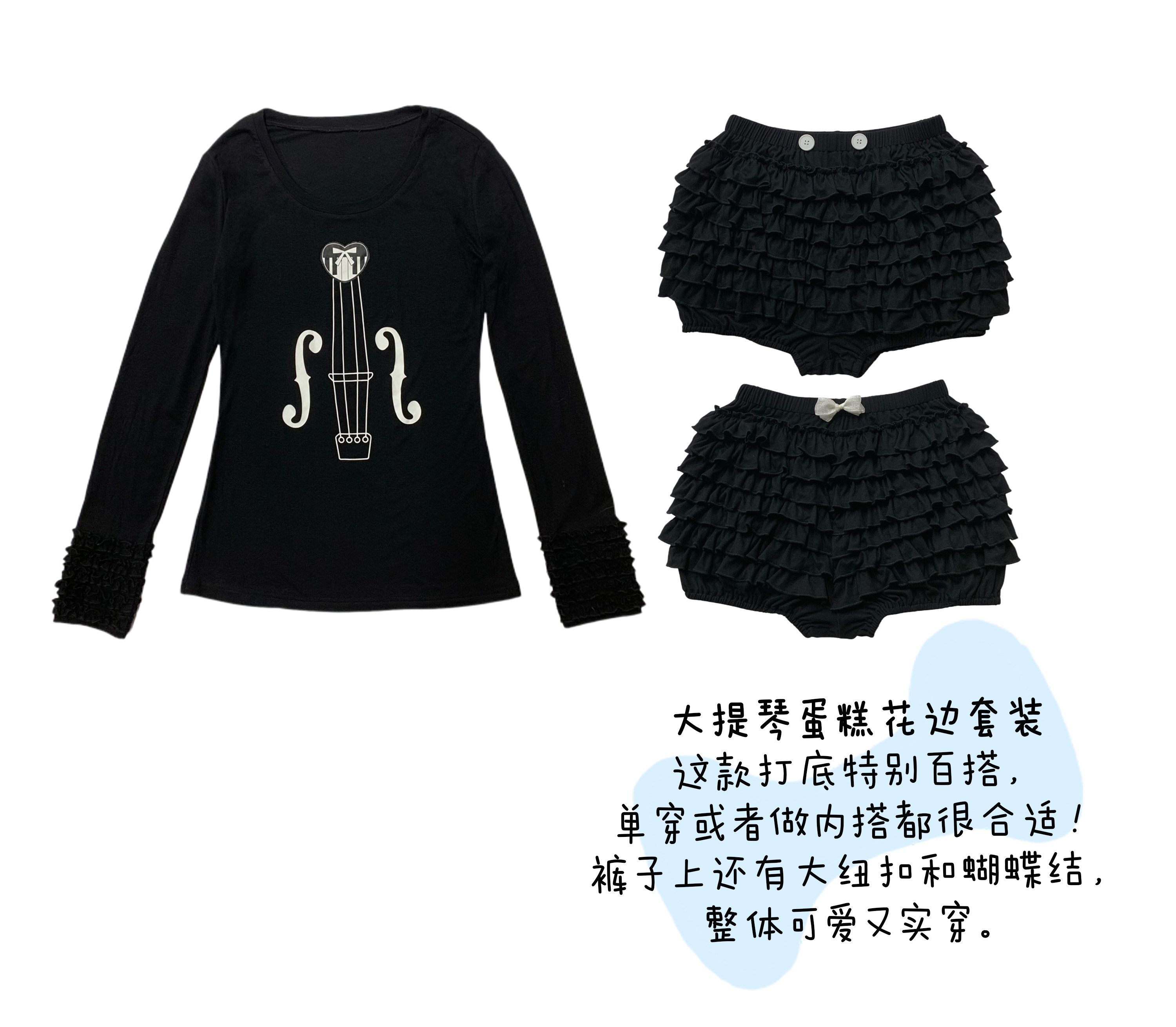 Popbus 黑白大提琴蛋糕花边长袖短裤套装蝴蝶结百搭原创 泡泡巴士 [Original Page Link]