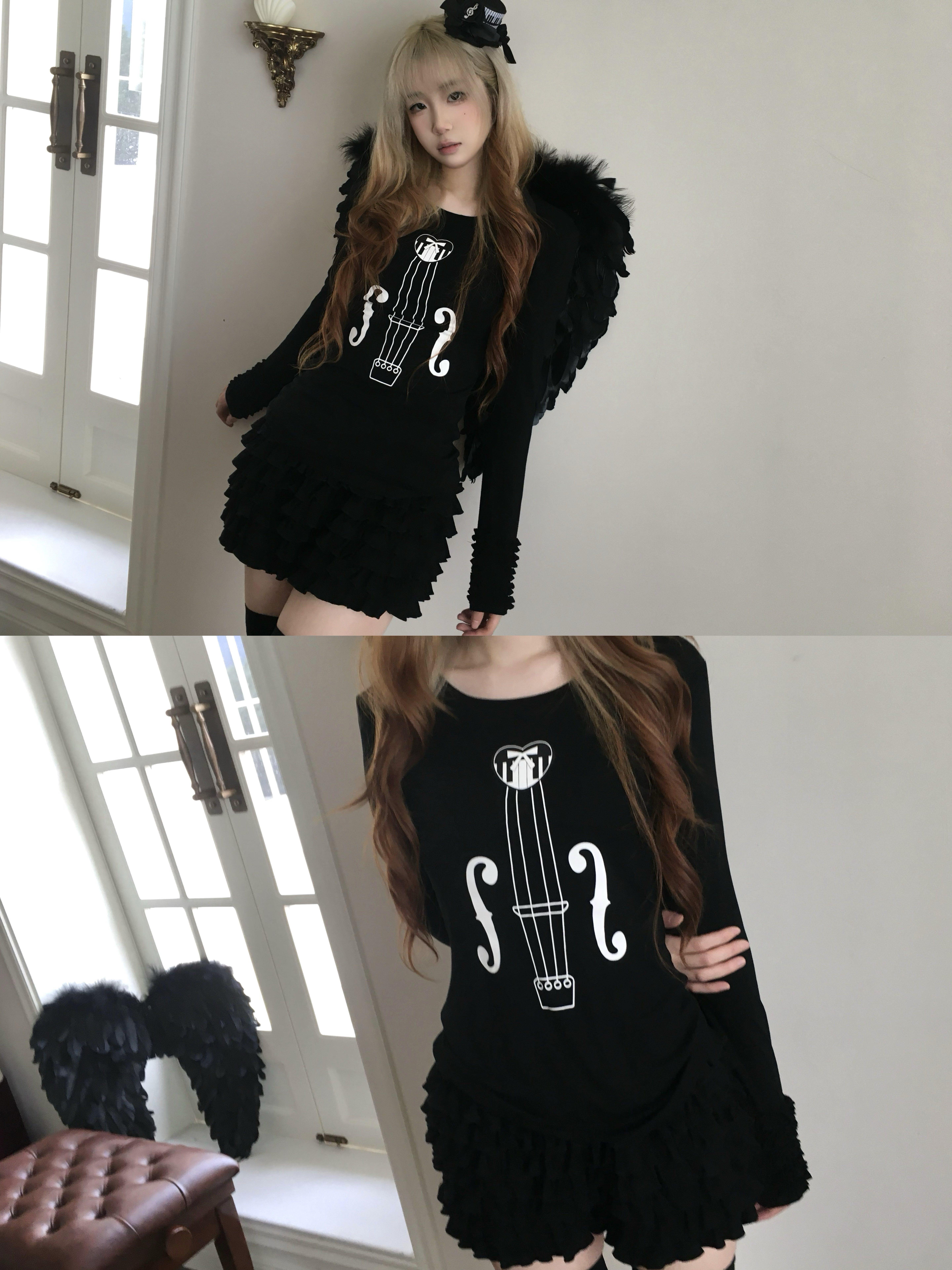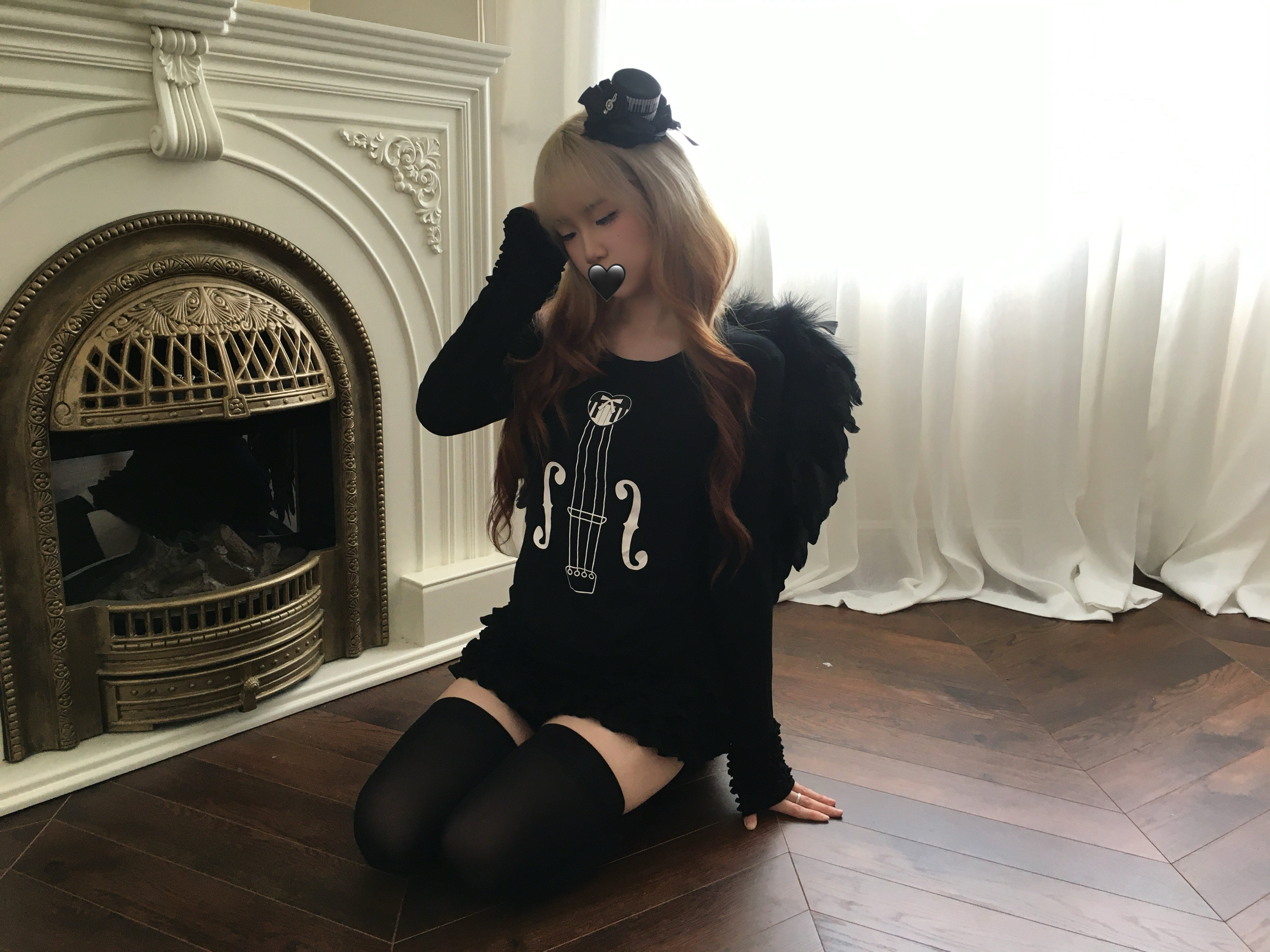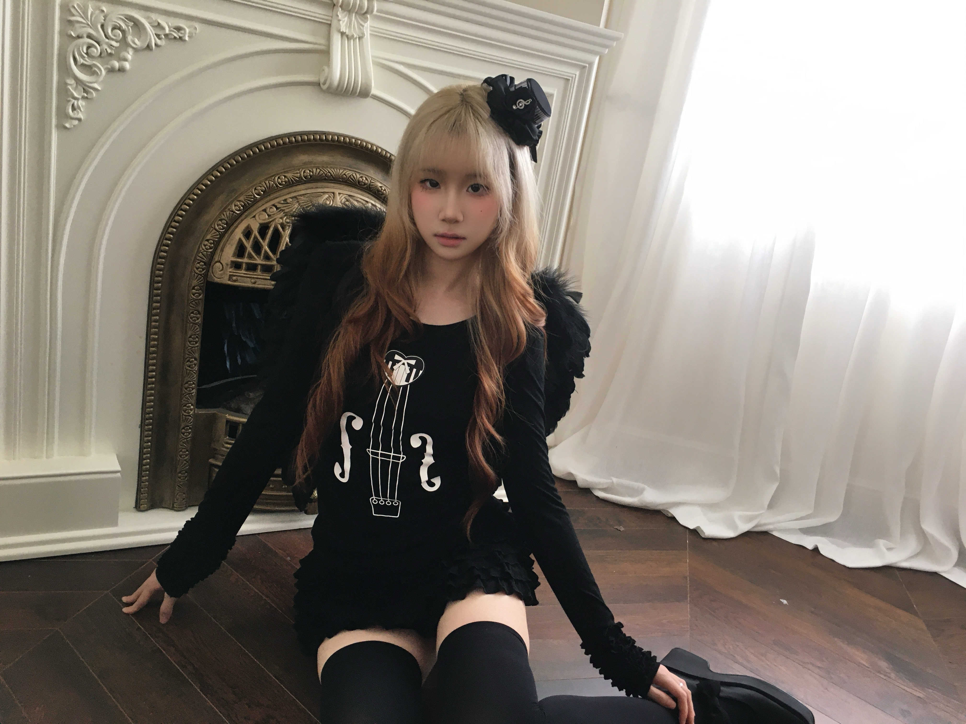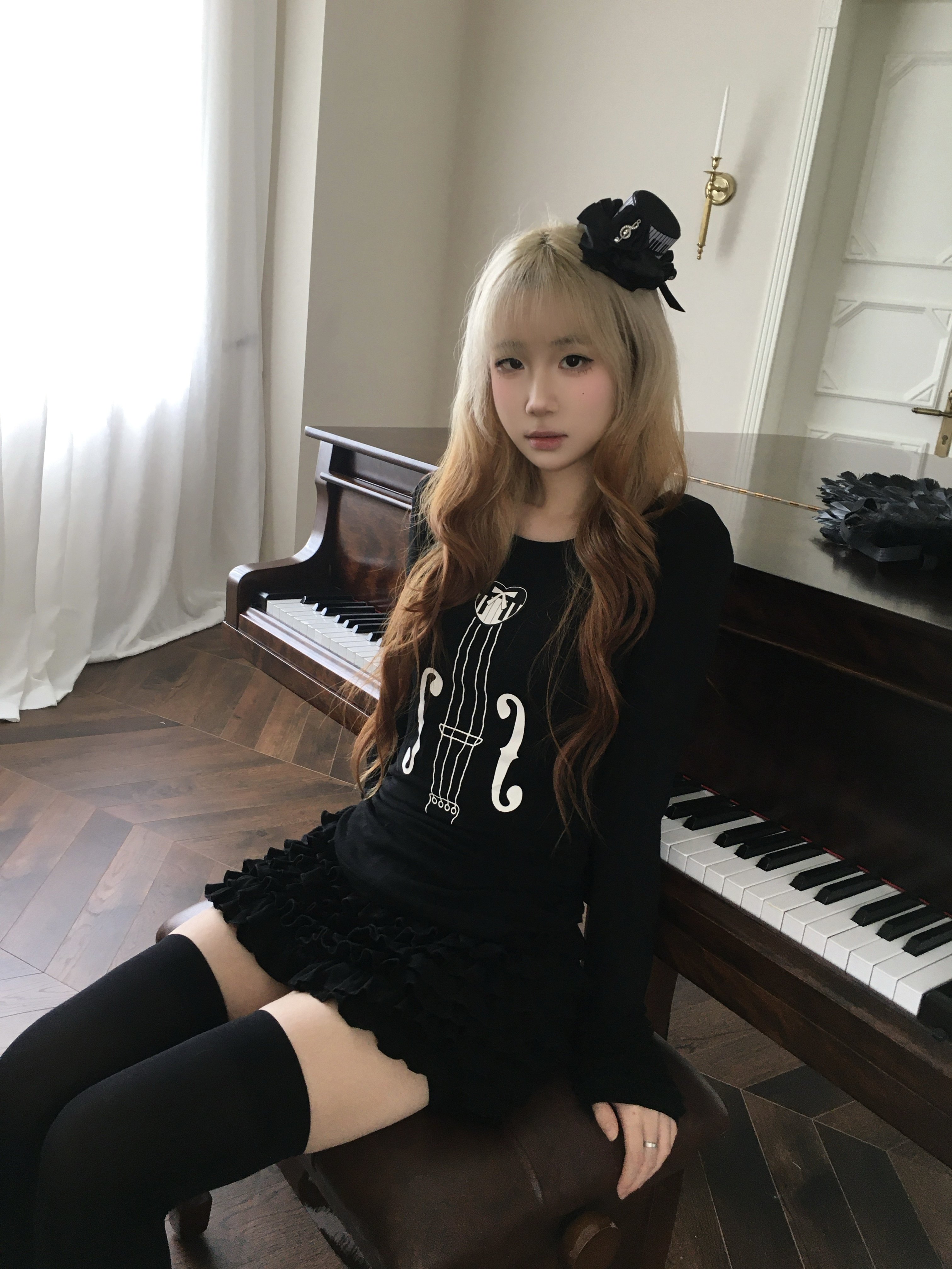 Popbus 黑白大提琴蛋糕花边长袖短裤套装蝴蝶结百搭原创 泡泡巴士 [Original Page Link]