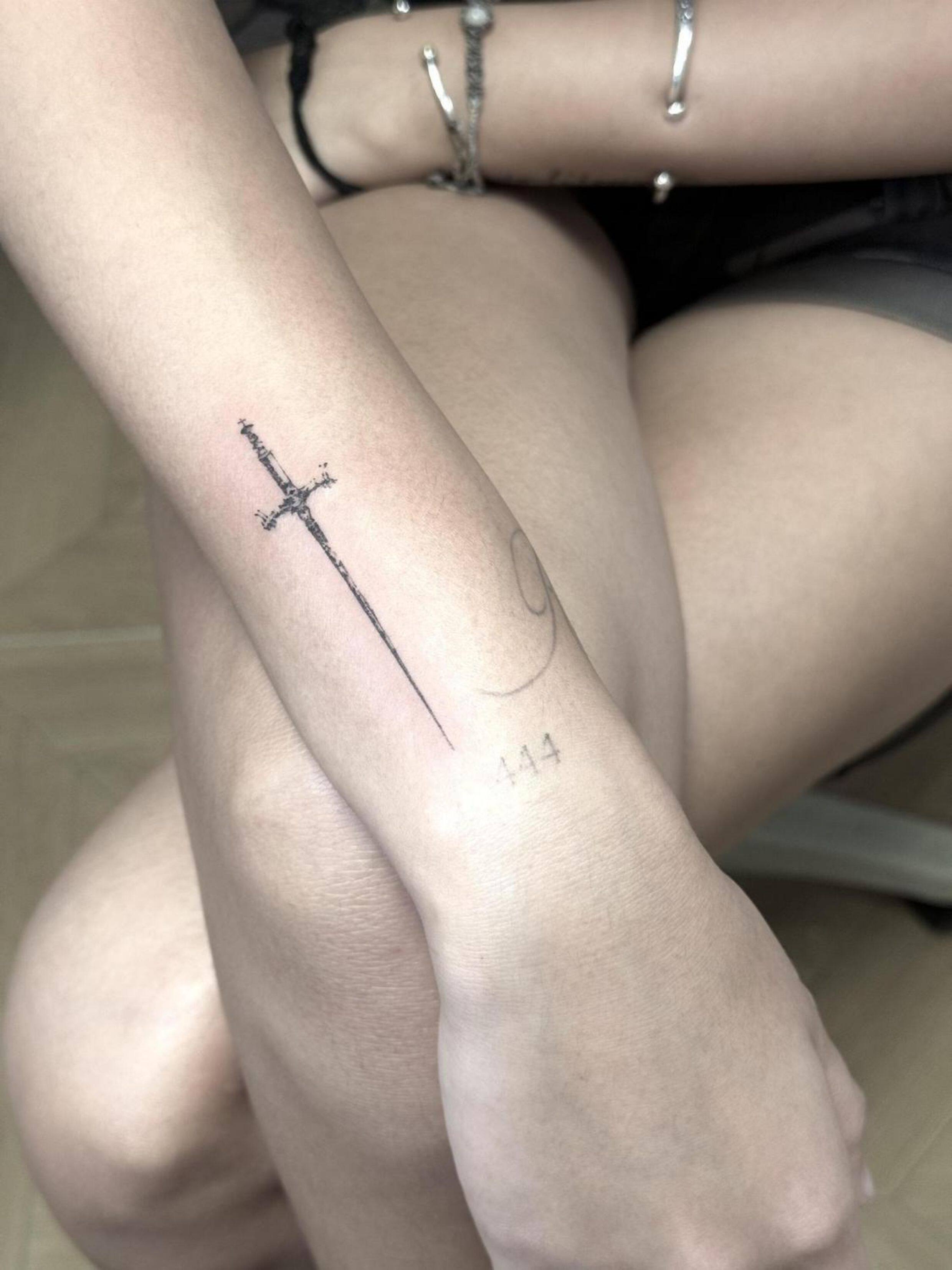 十字圣光剑 草本纹身贴半永久新款个性创意刺青ins风无毒遮疤贴纸 [Original Page Link]