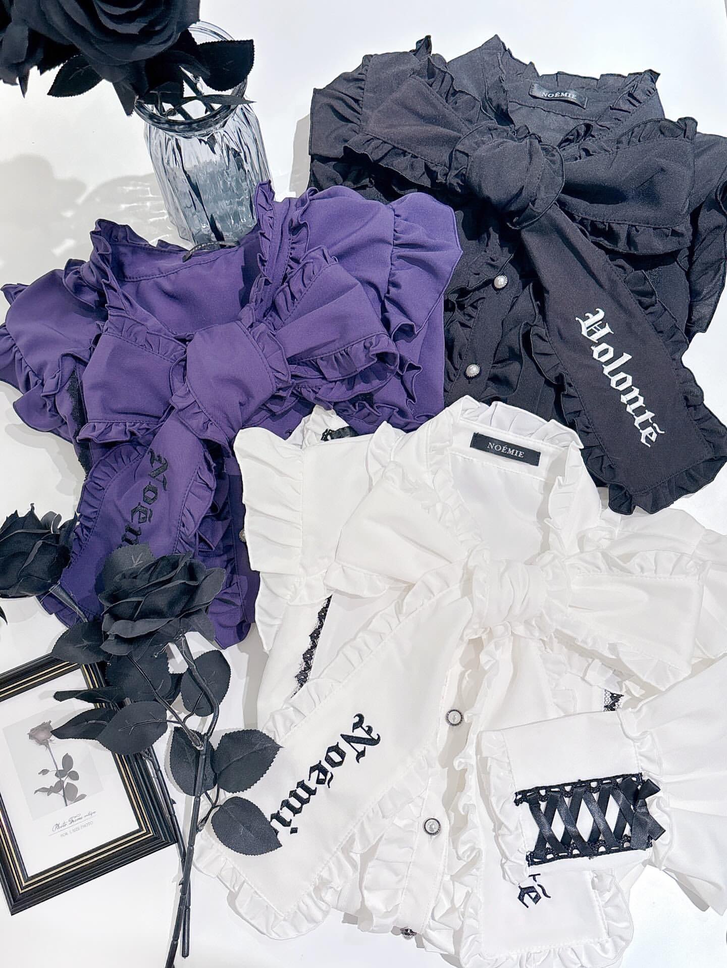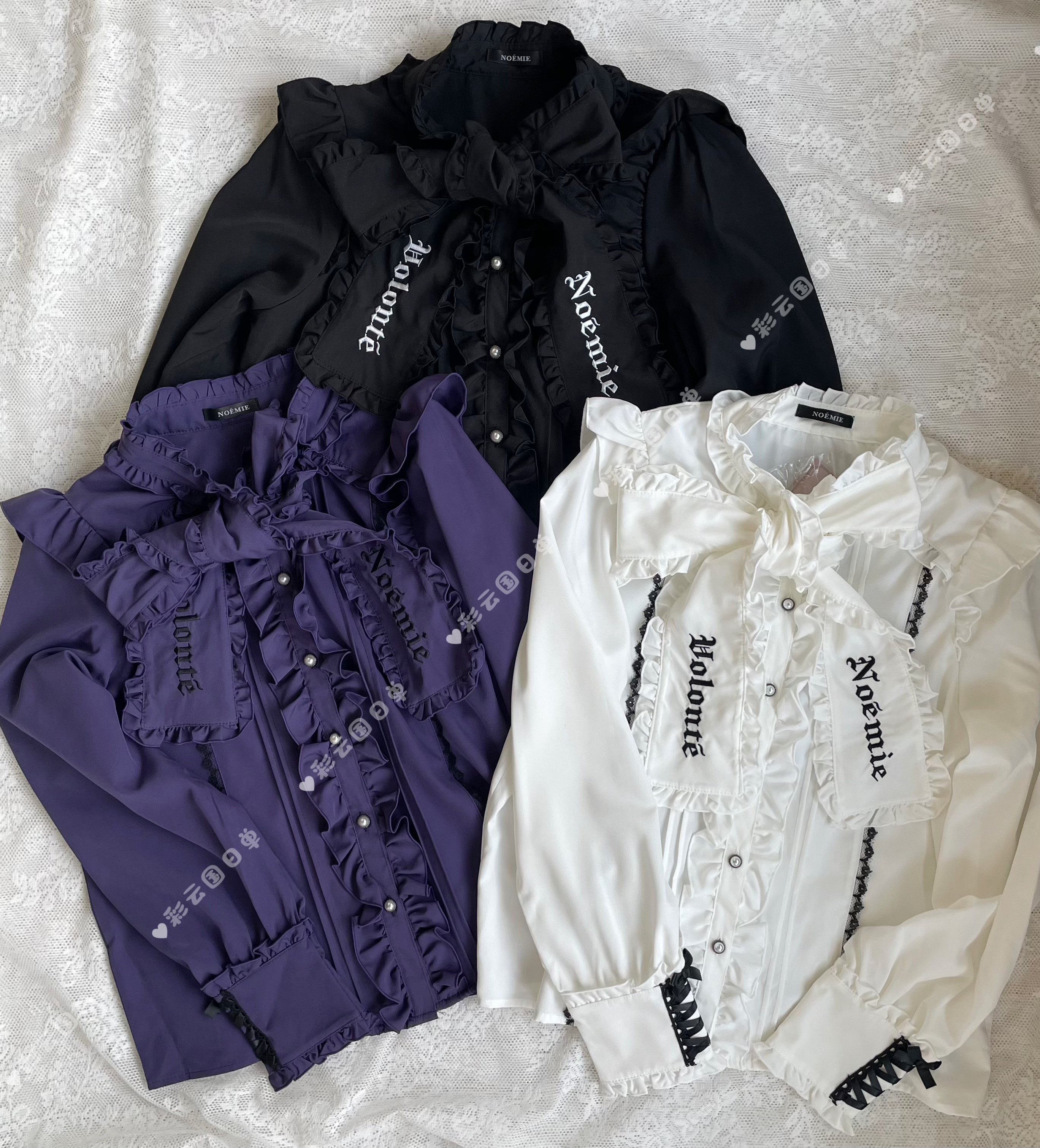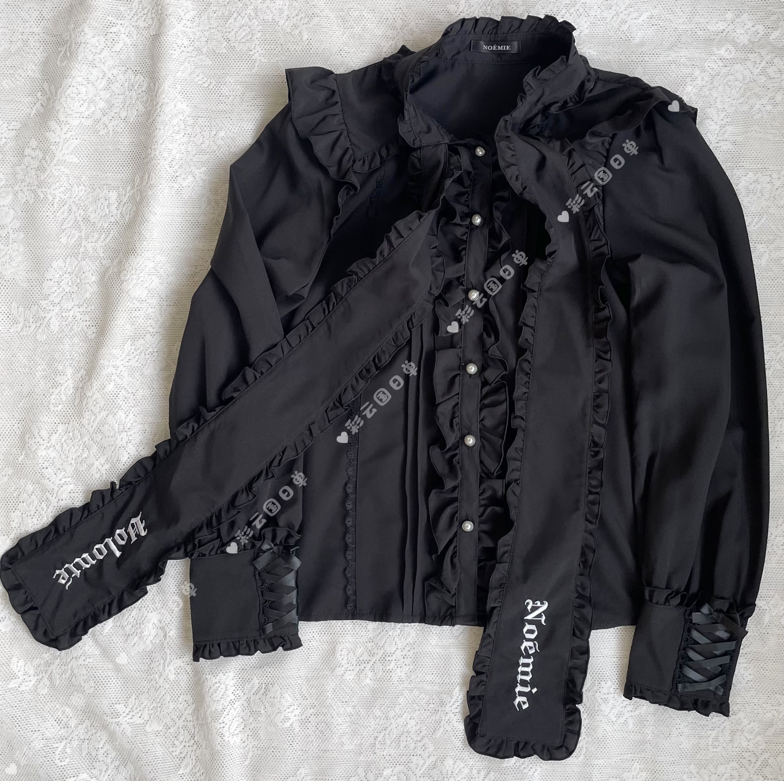 独家实拍noemi*糯米纯元复古哥特风荷叶边系带领结量产型长袖衬衫 [Original Page Link]