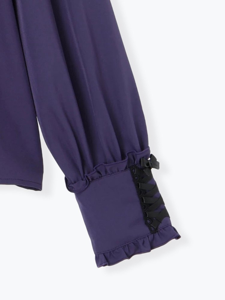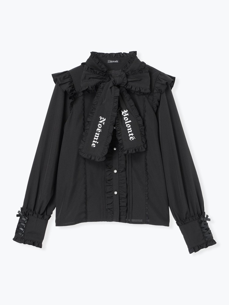 Exclusive real shot of noemi*glutinous rice pure retro gothic style ruffled tie bow tie mass-produced long-sleeved shirt