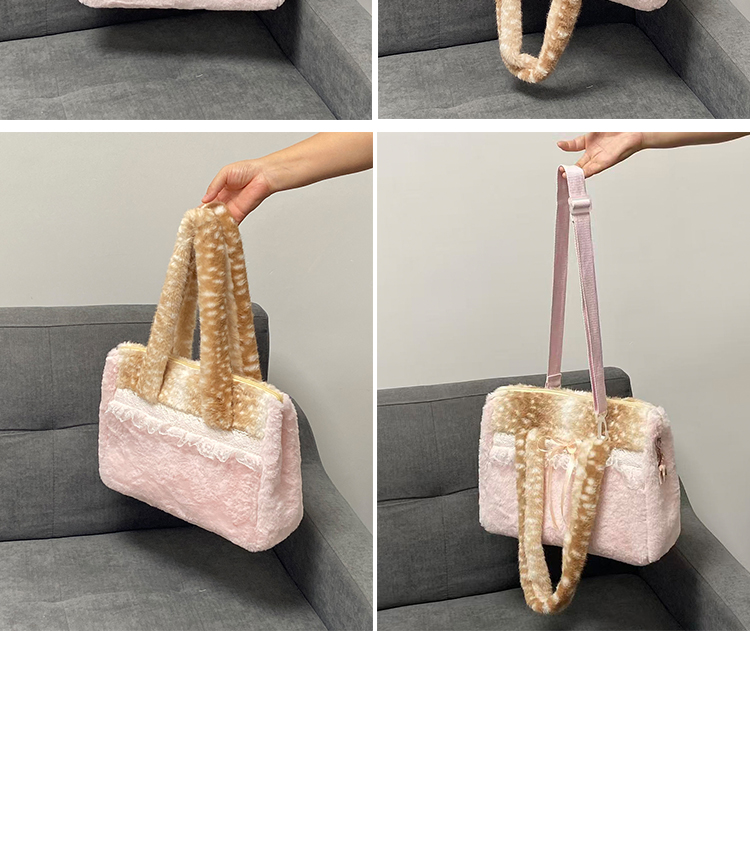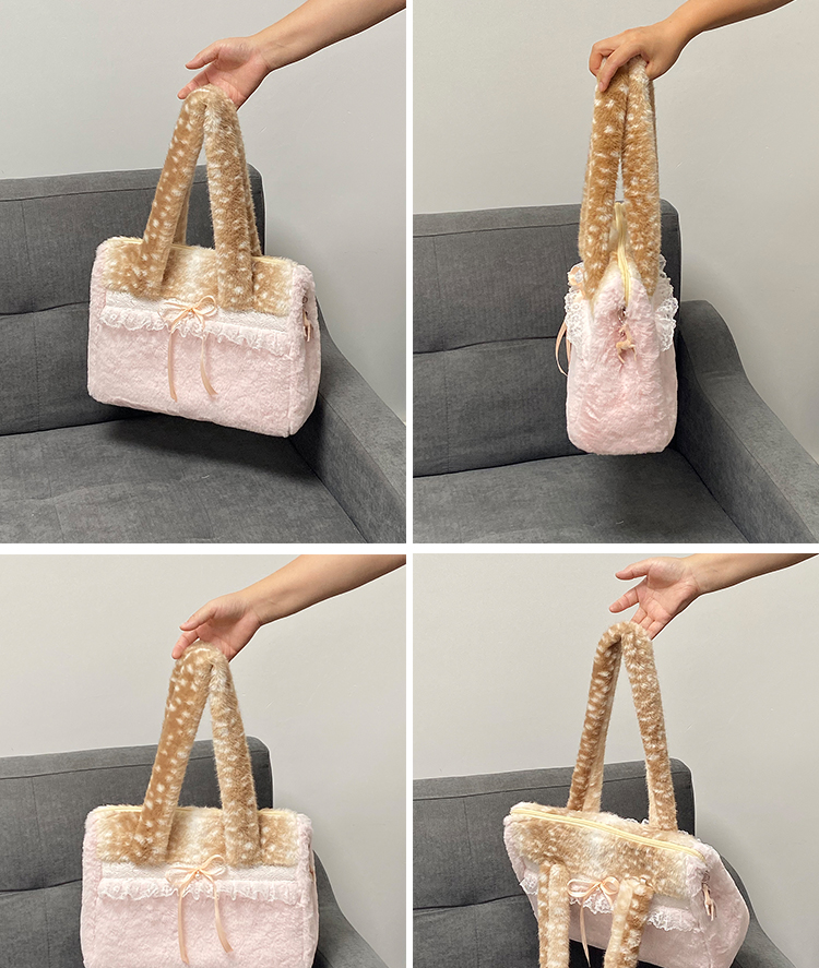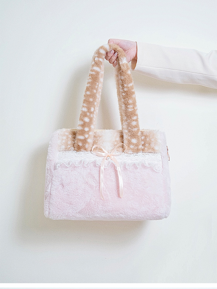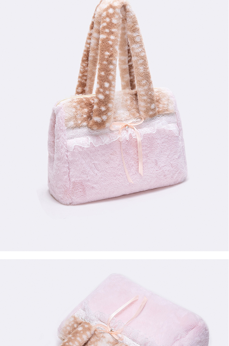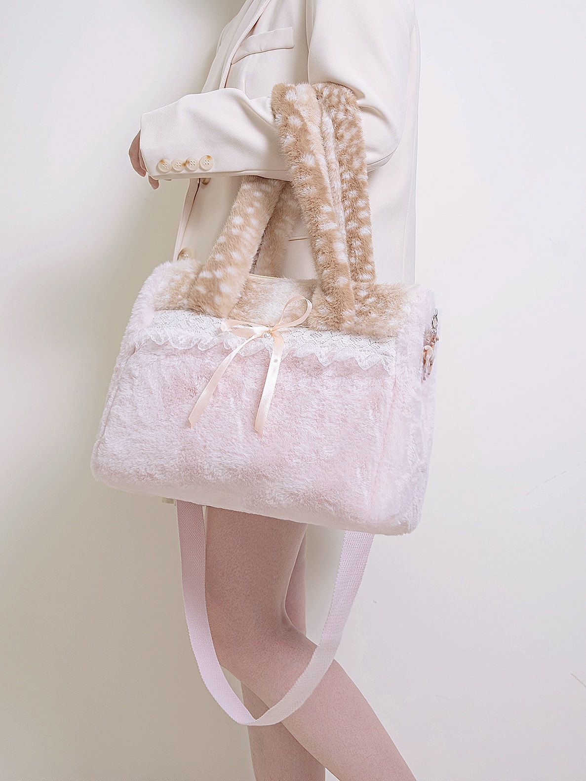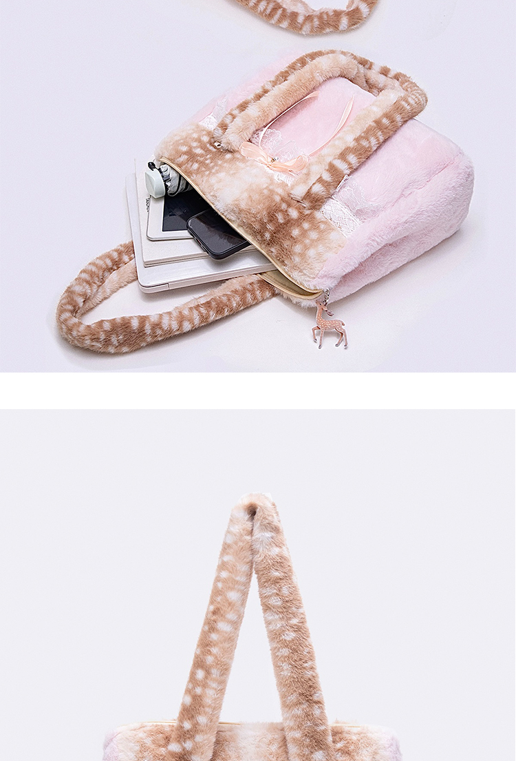 HIATUS Cute Instagram Style Plush Deer Print Lace Trim Girlish Shoulder Bag, Cute Furry Versatile Crossbody Bag