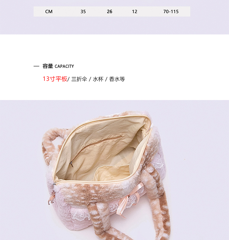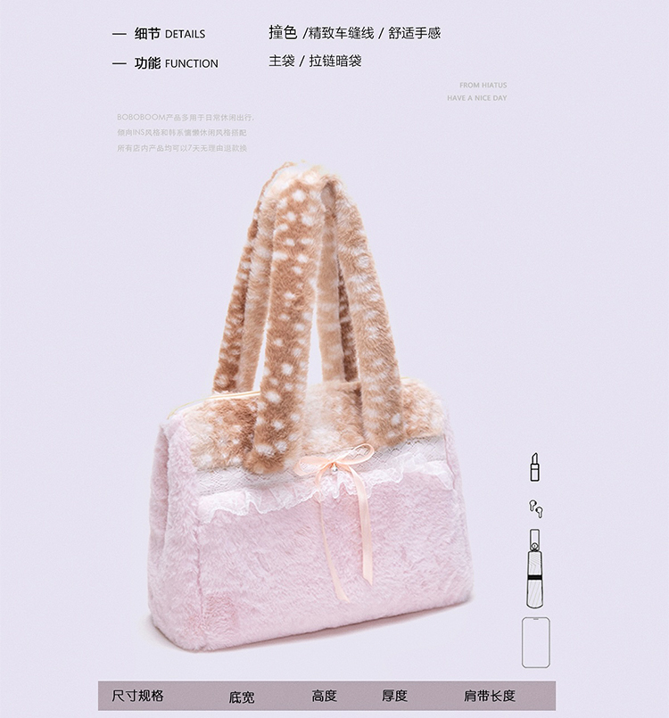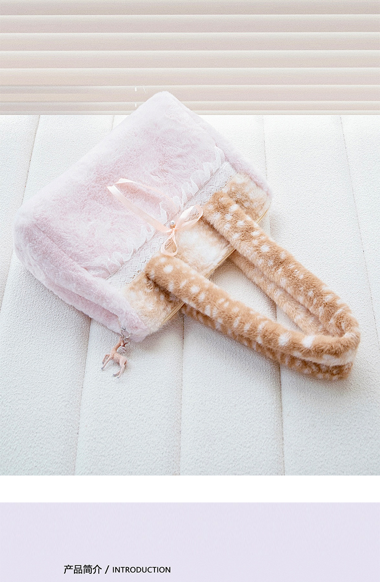 HIATUS可爱ins风毛绒鹿纹蕾丝花边少女单肩包可爱毛毛百搭斜挎包 [Original Page Link]