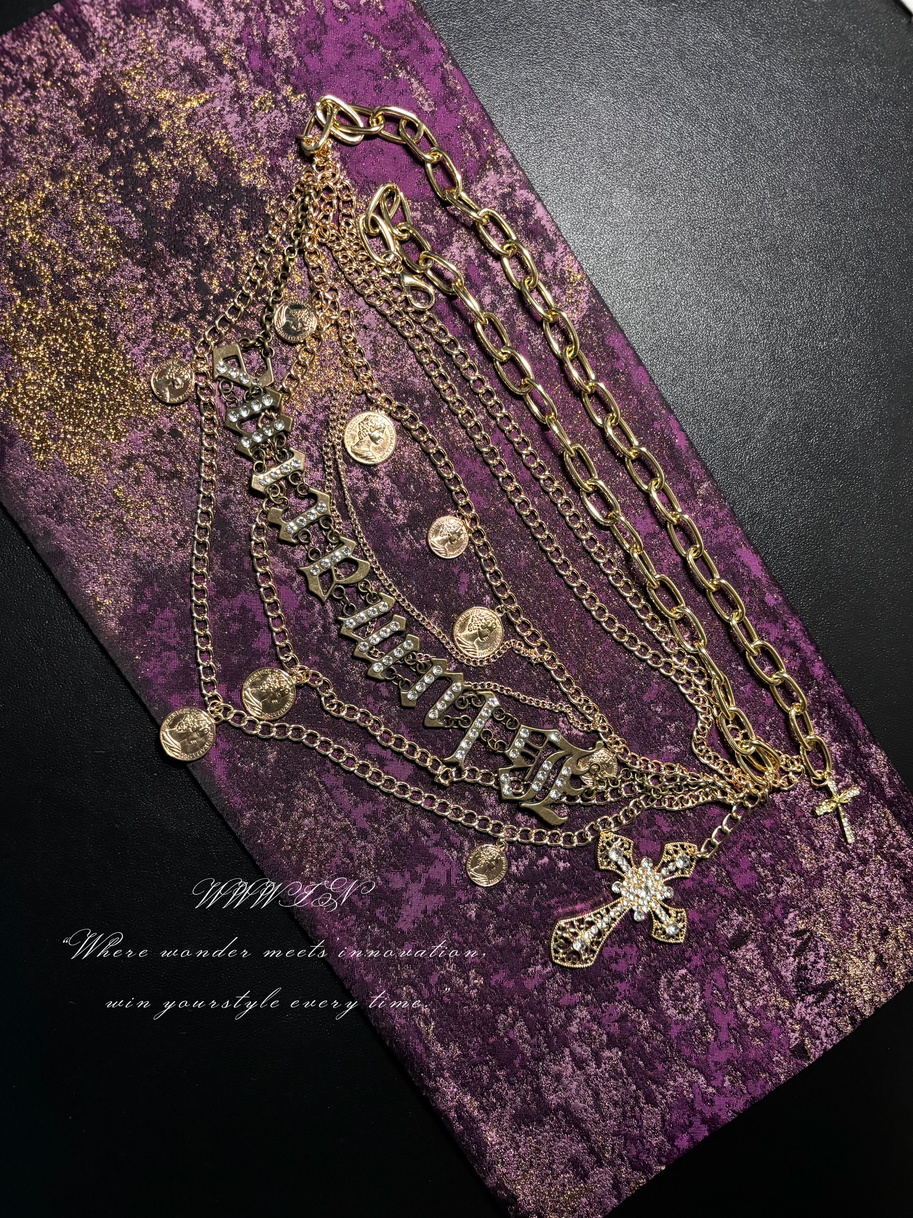 [WWWIN Original] Baroque Dream Shibuya Gyaru Cross Vintage Letter Waist Chain
