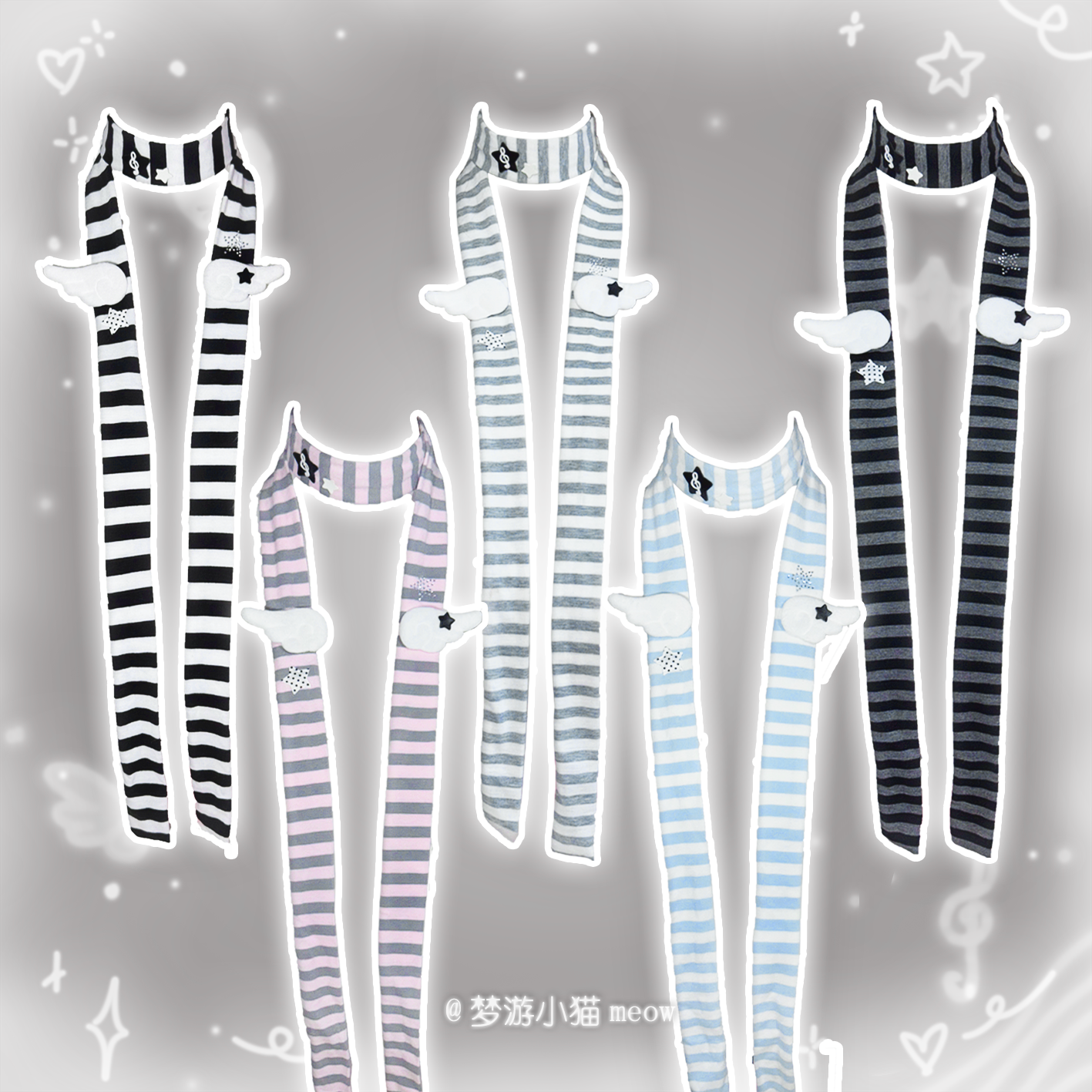 梦游小猫/新款翅膀星星条纹围巾日韩系脖护颈长条亚文化可爱萌系 [Original Page Link]