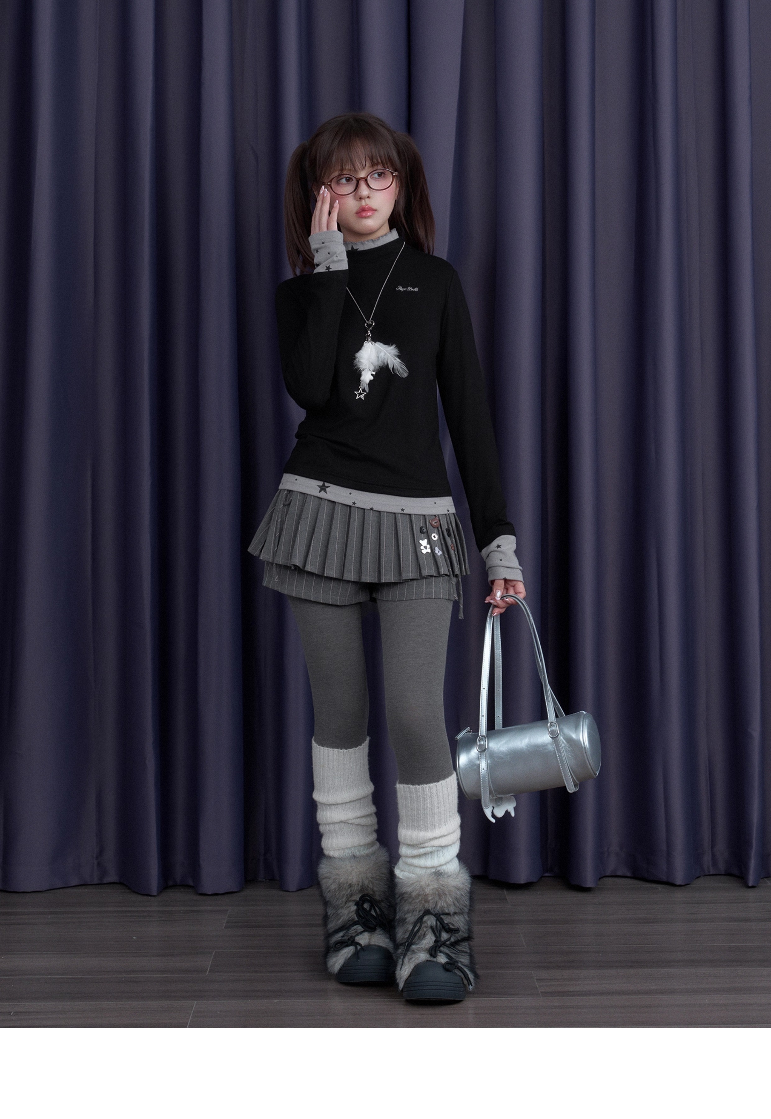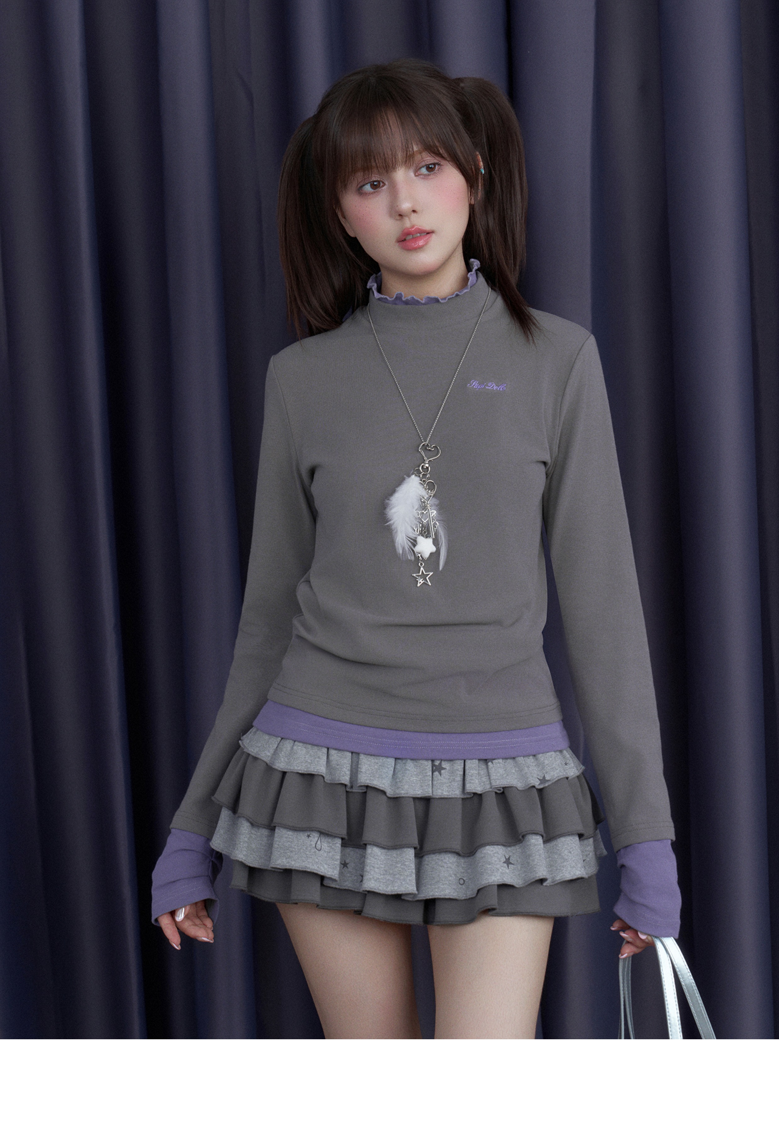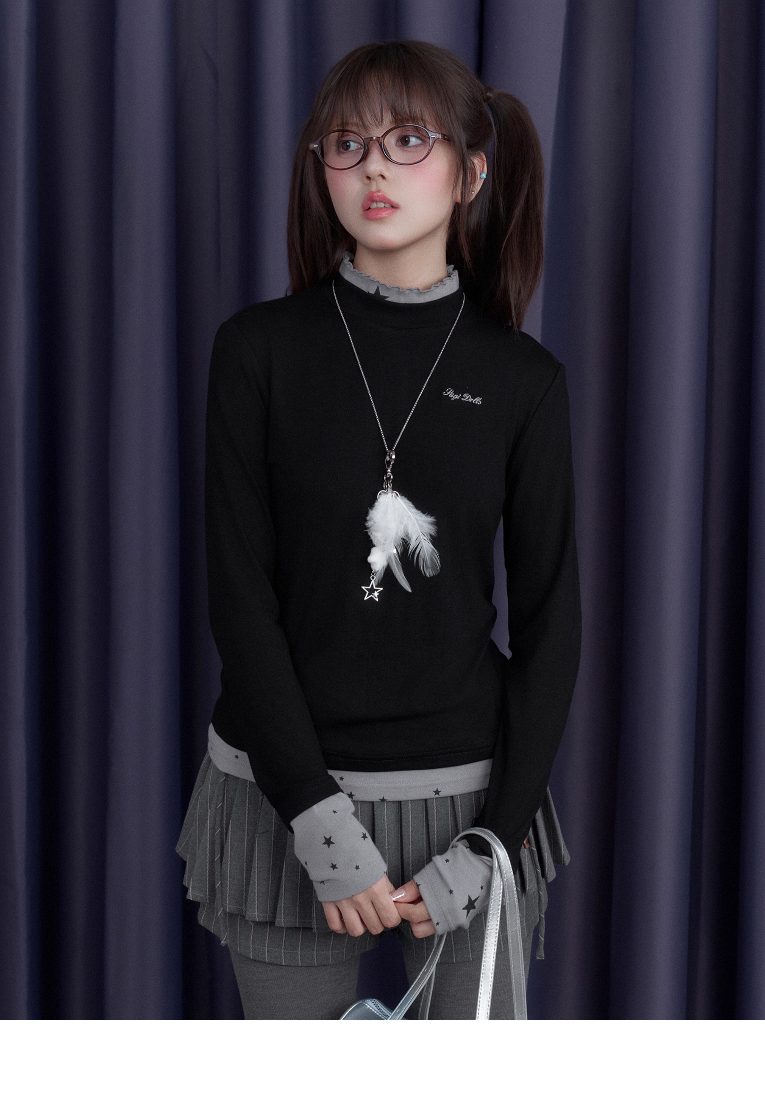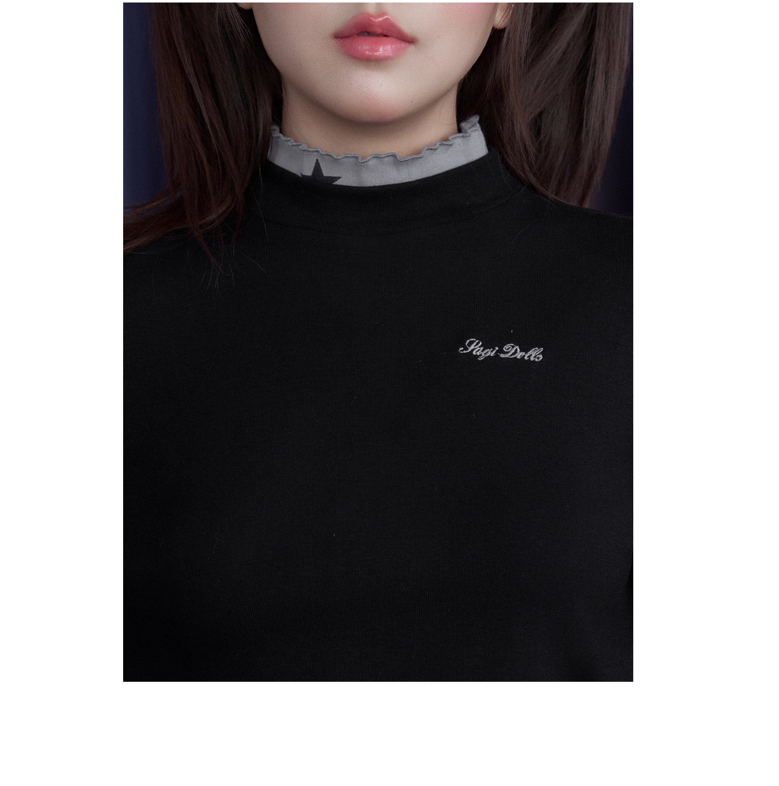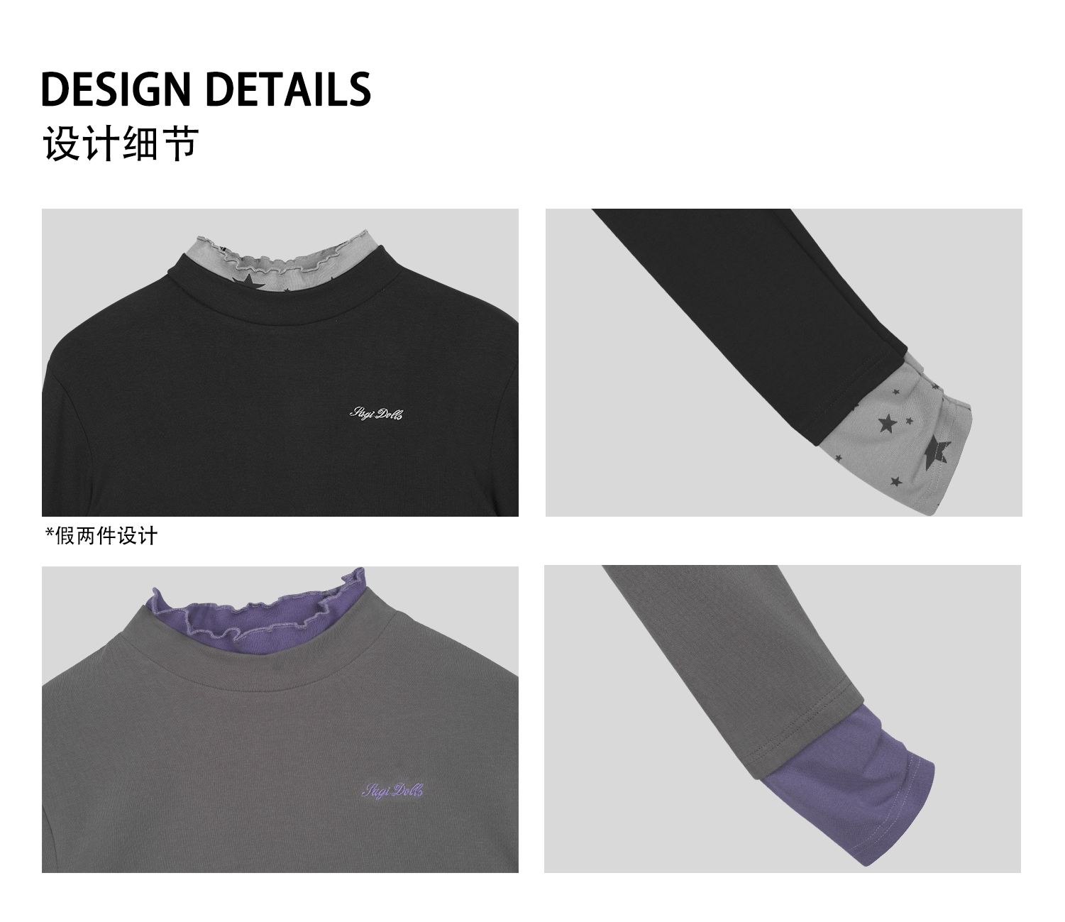 SagiDolls少女斗志 百搭遮腹!甜酷显瘦高领假两件打底T恤宽松双色 [Original Page Link]