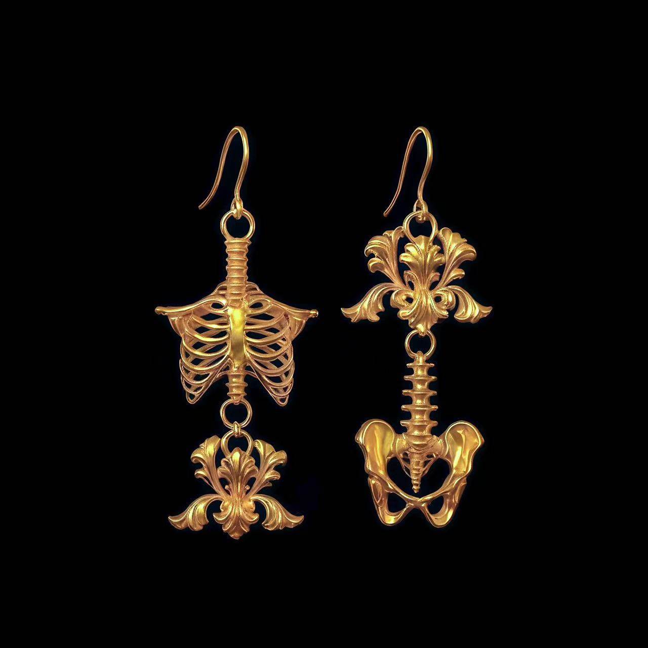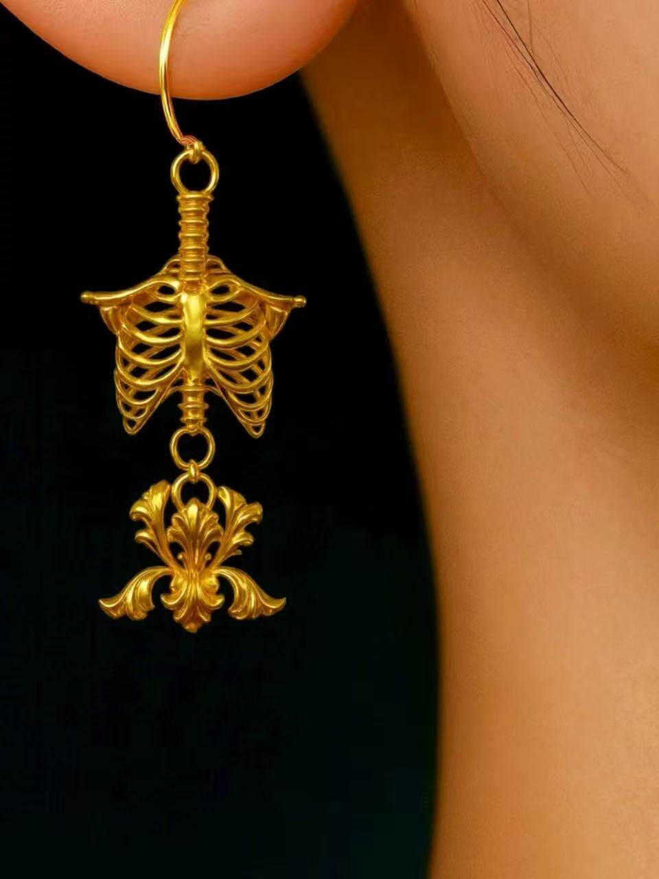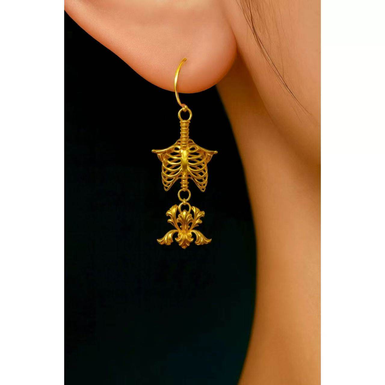 美人骨与鸢尾花悬铃耳环女独特个性朋克风高级感爆款小众设计耳饰 [Original Page Link]
