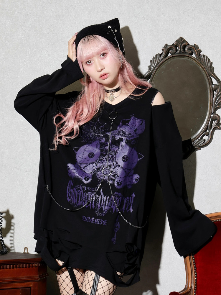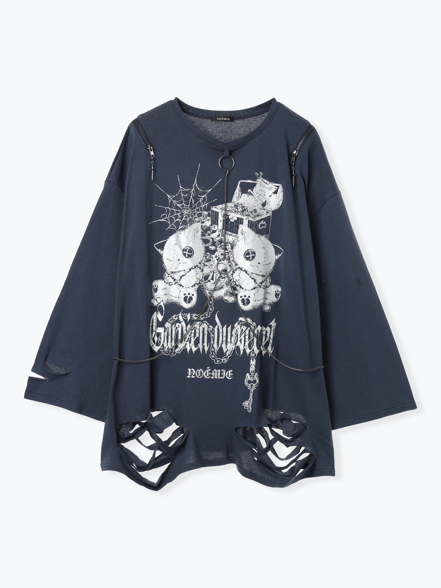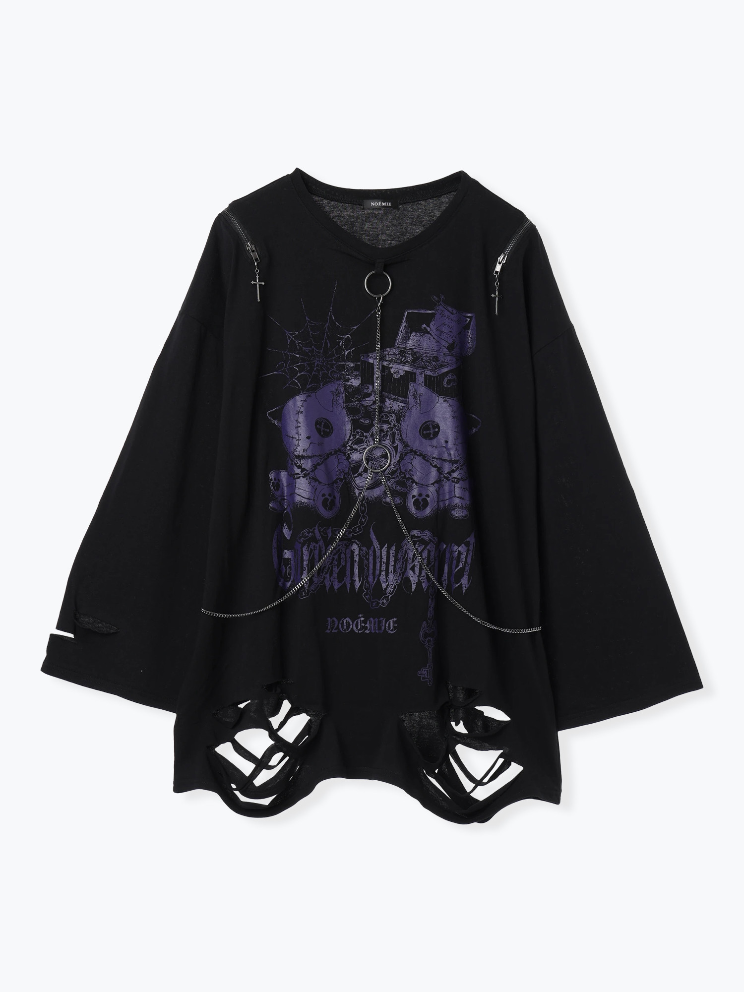 免代购费 白白日本购 noemie 病态猫环链做旧中性长袖T恤 4700 [Original Page Link]