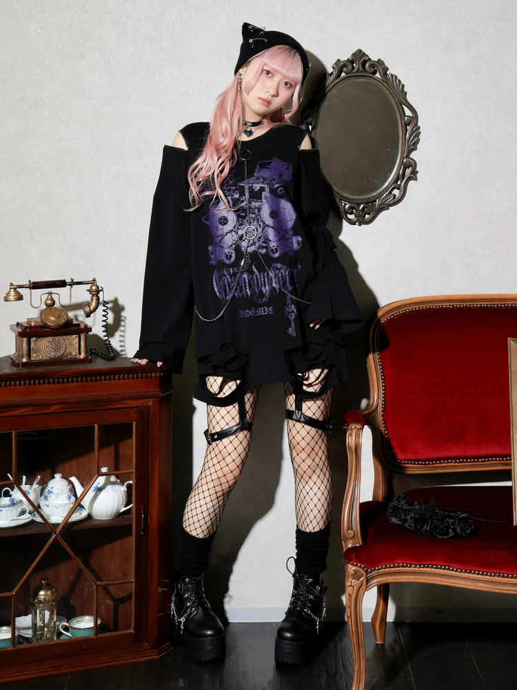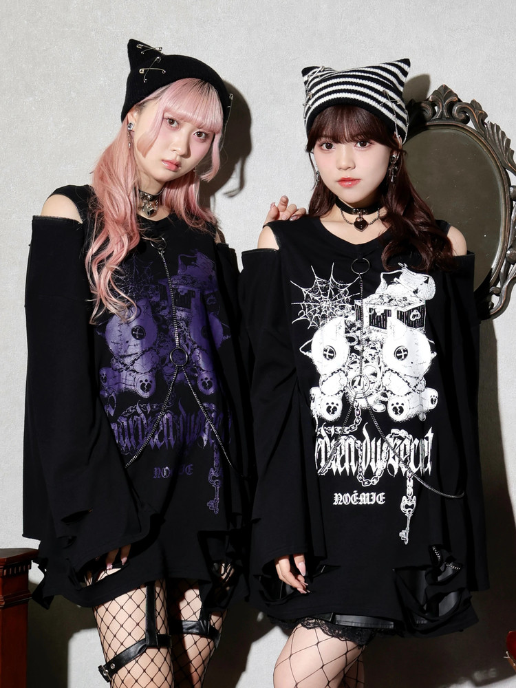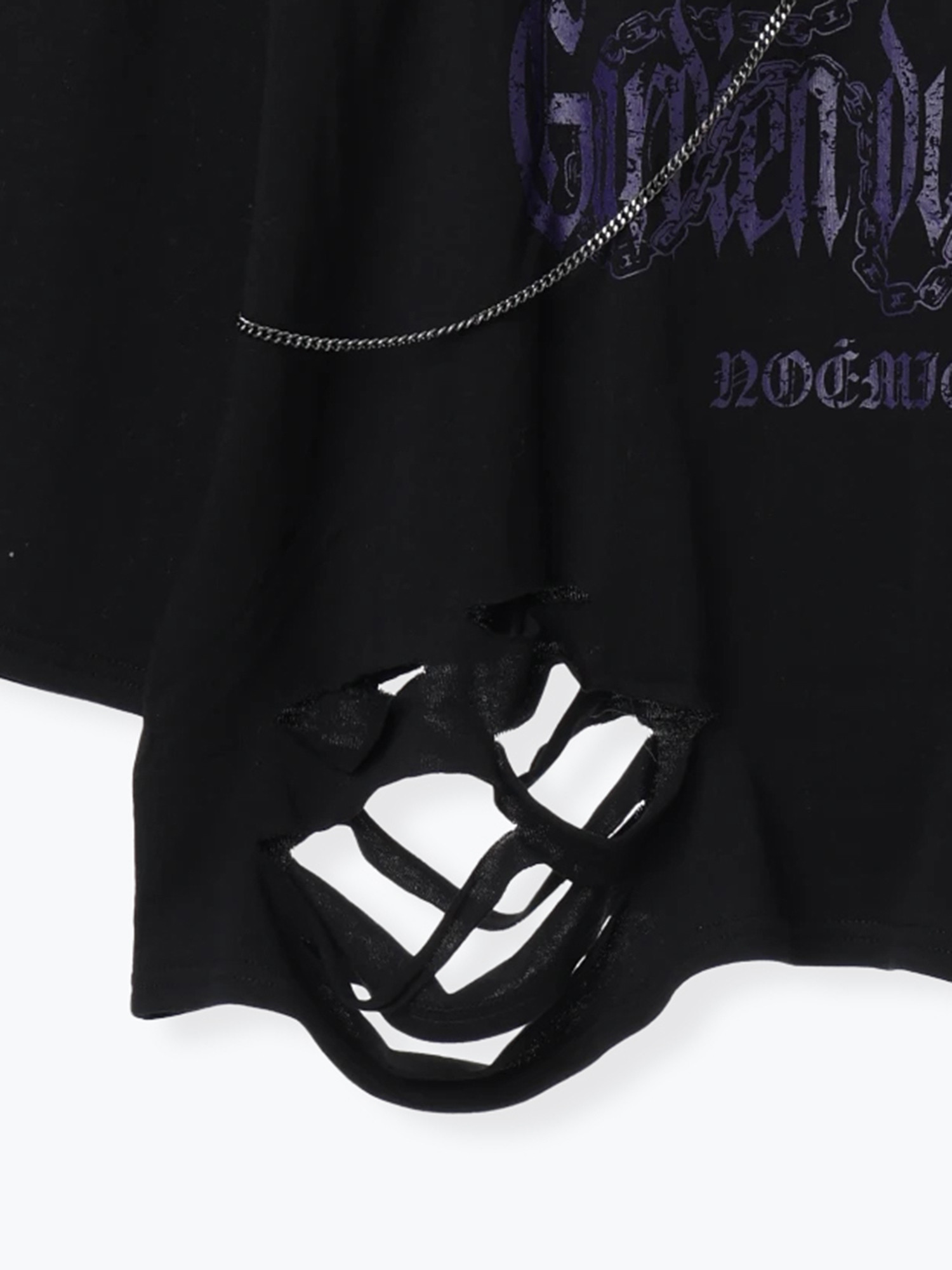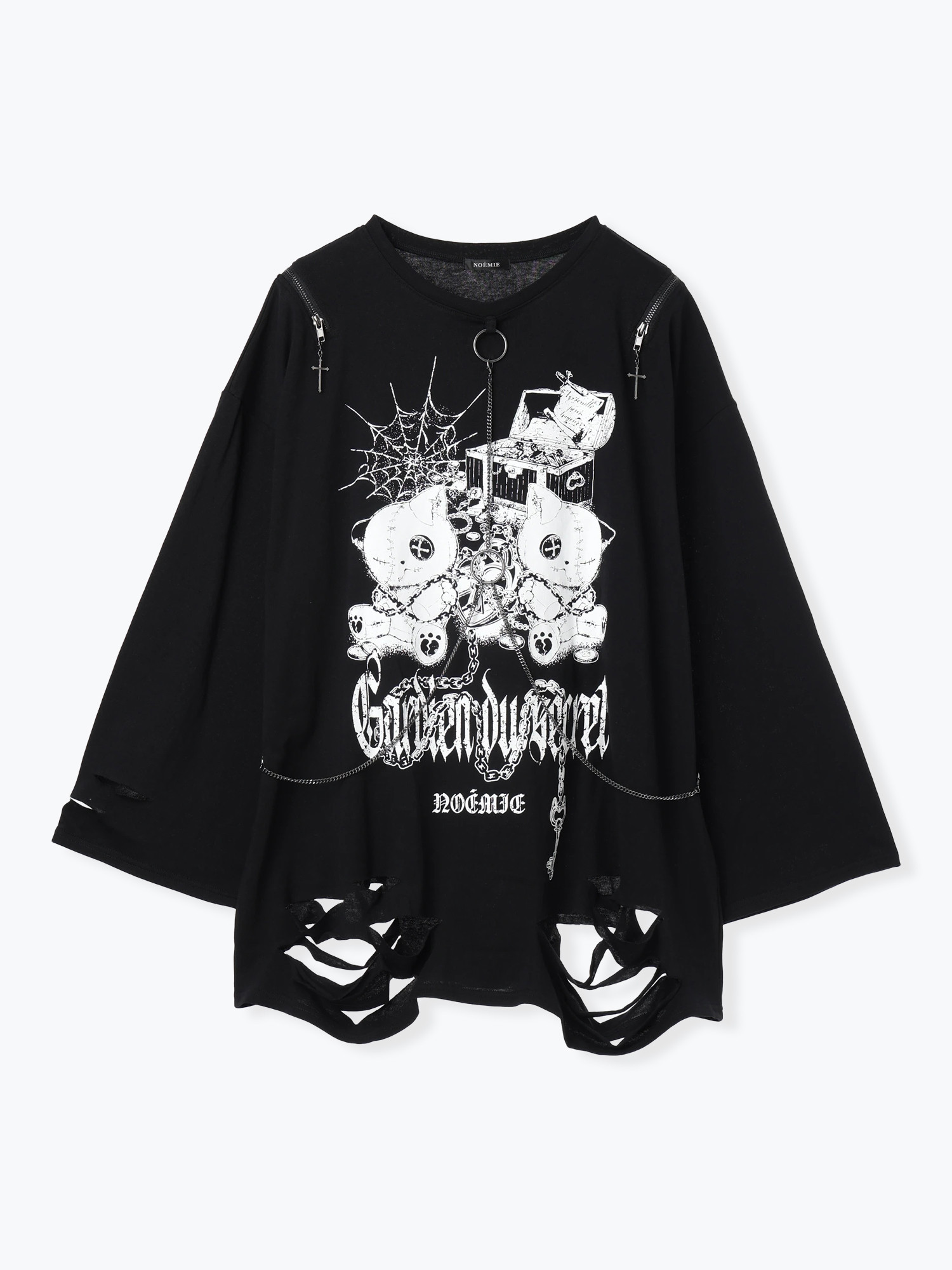 免代购费 白白日本购 noemie 病态猫环链做旧中性长袖T恤 4700 [Original Page Link]