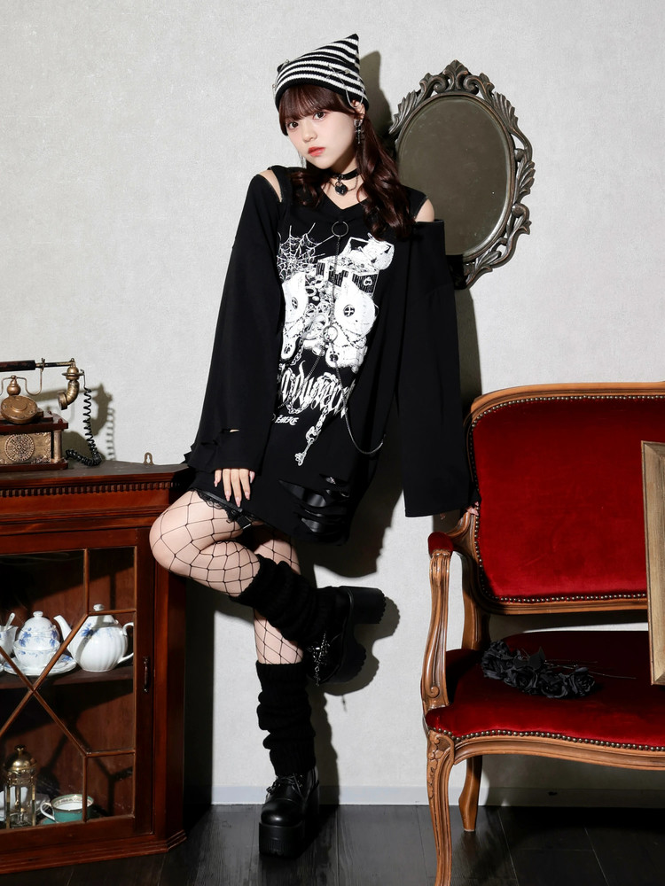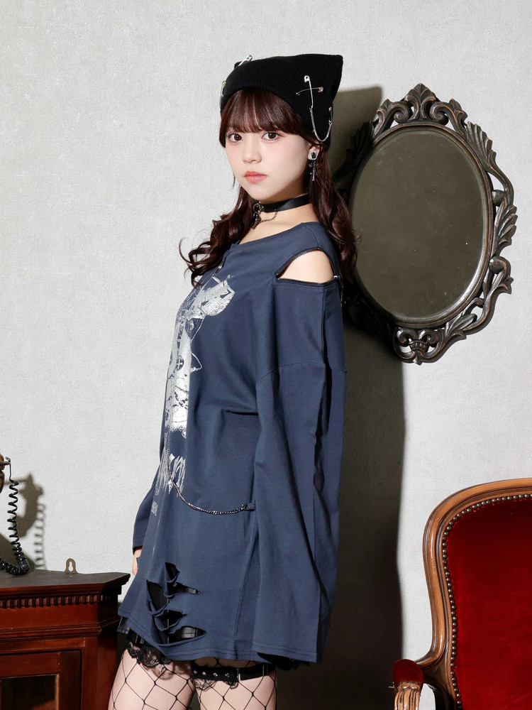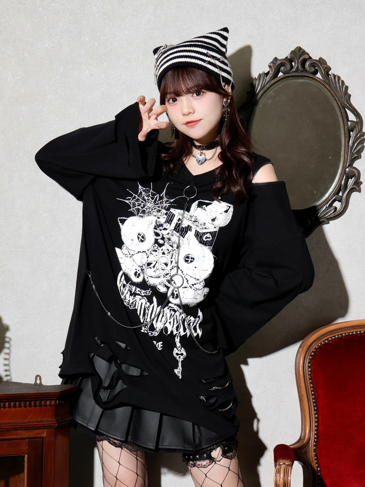 No agent fee, free Japanese purchase of noemie distressed cat chain unisex long-sleeved T-shirt, 4700