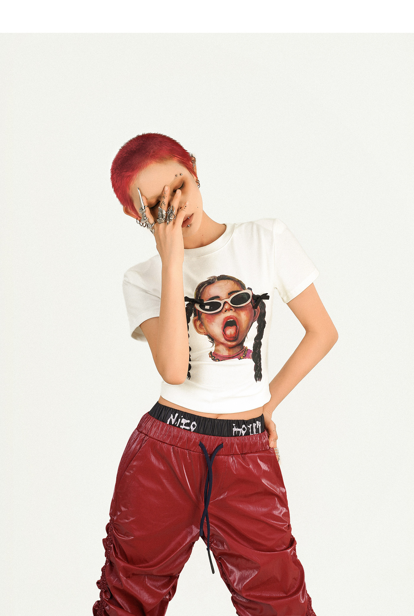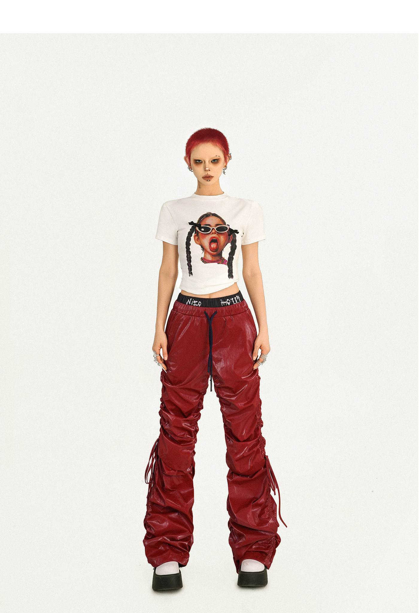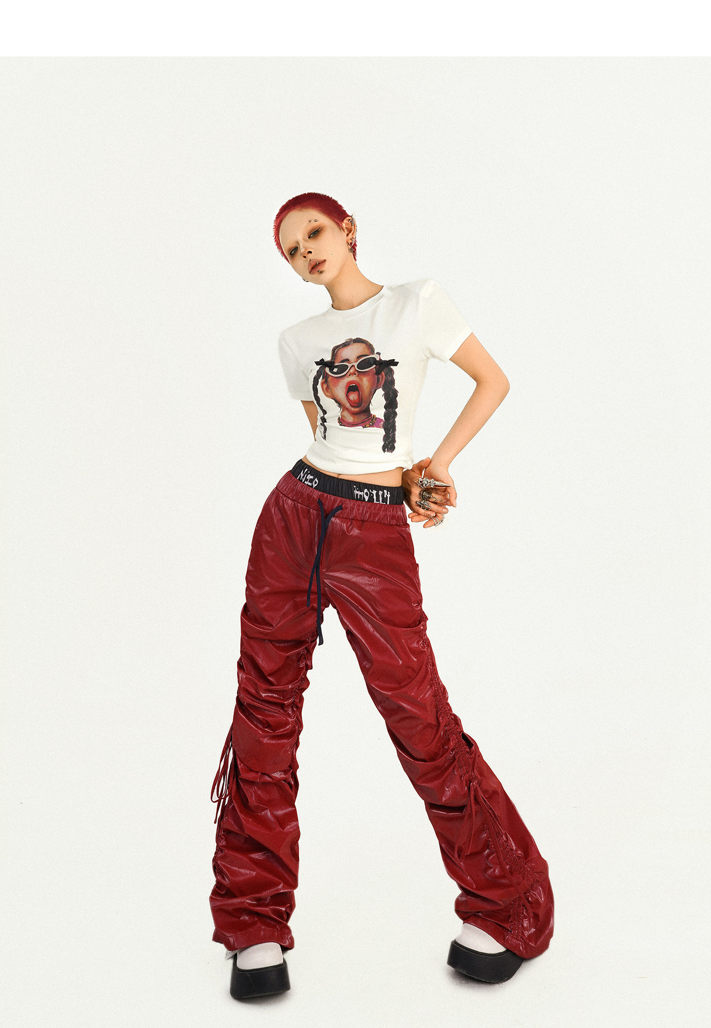 奶酷墨莉原创小众街头时尚绑绳褶皱红色皮裤女双腰头设计感长裤潮 [Original Page Link]