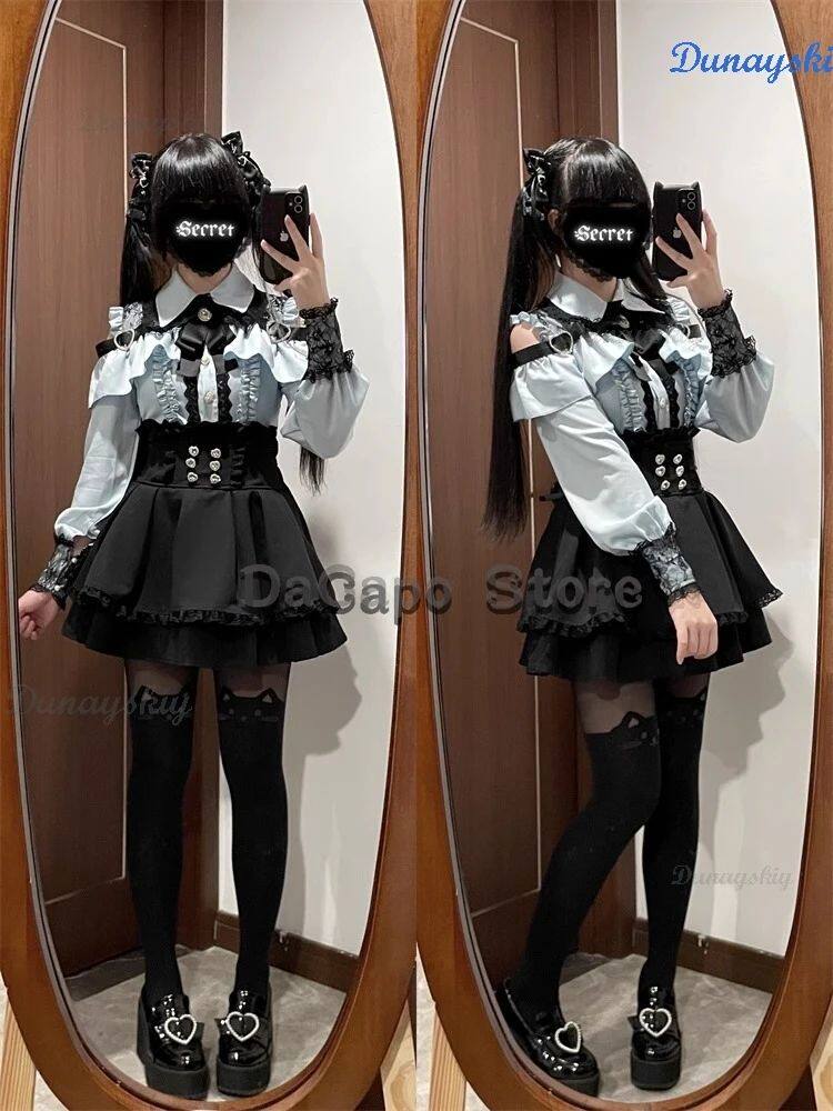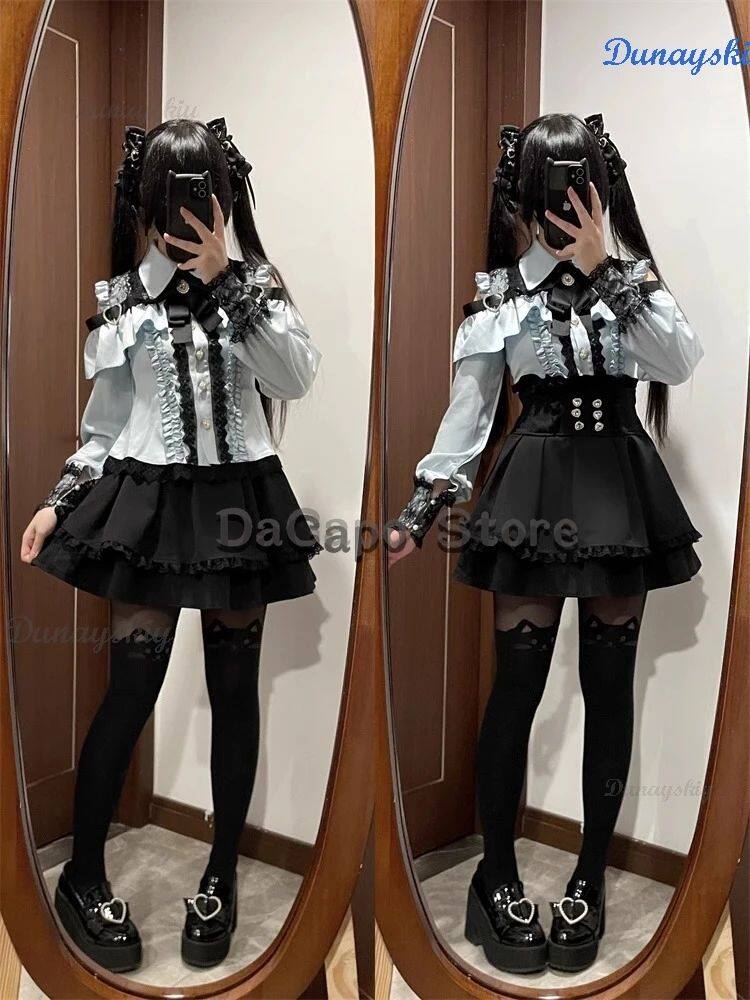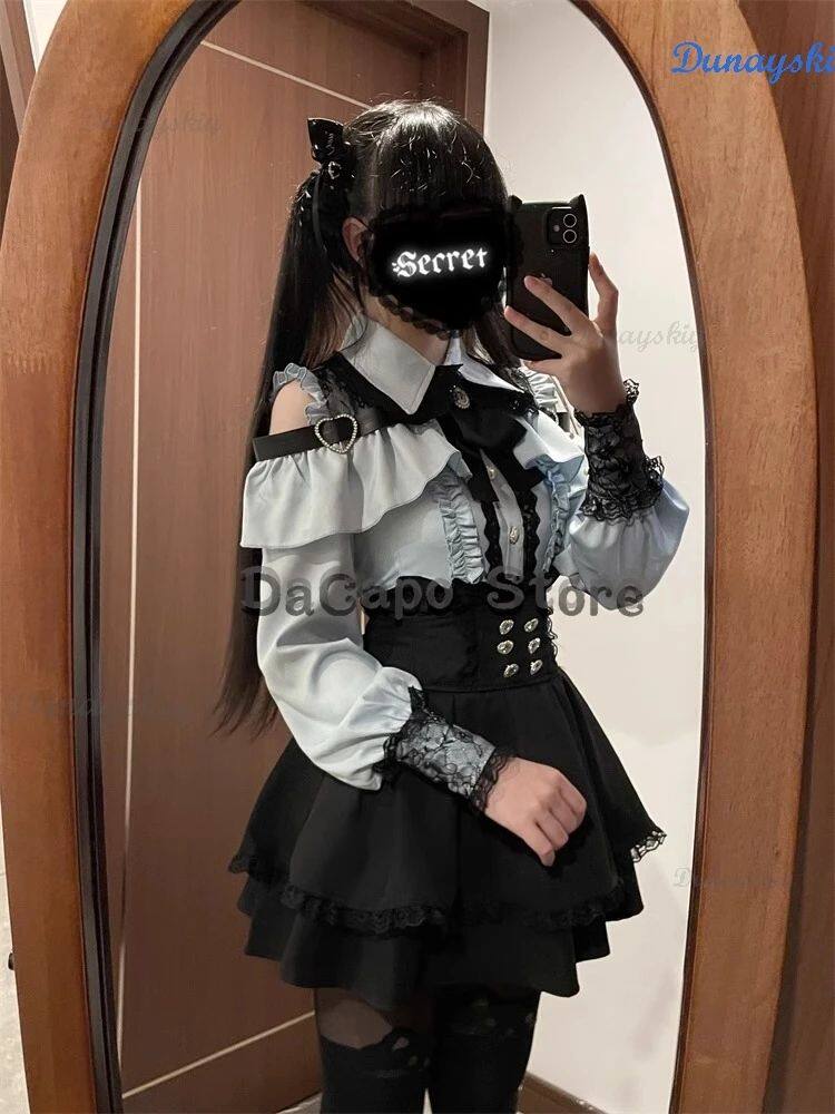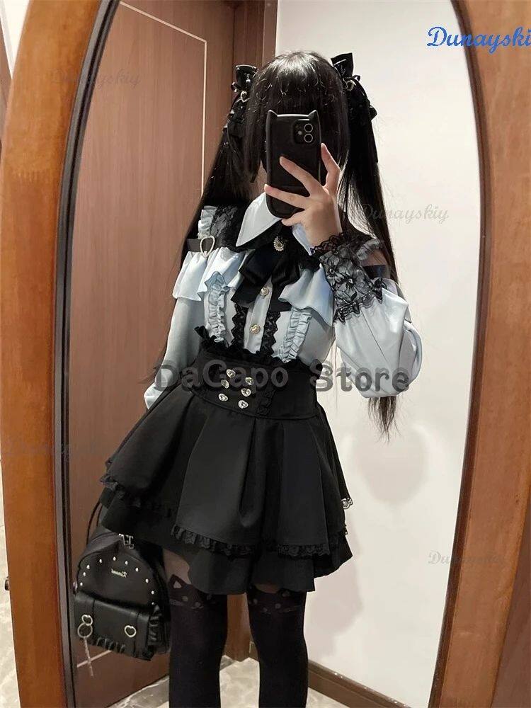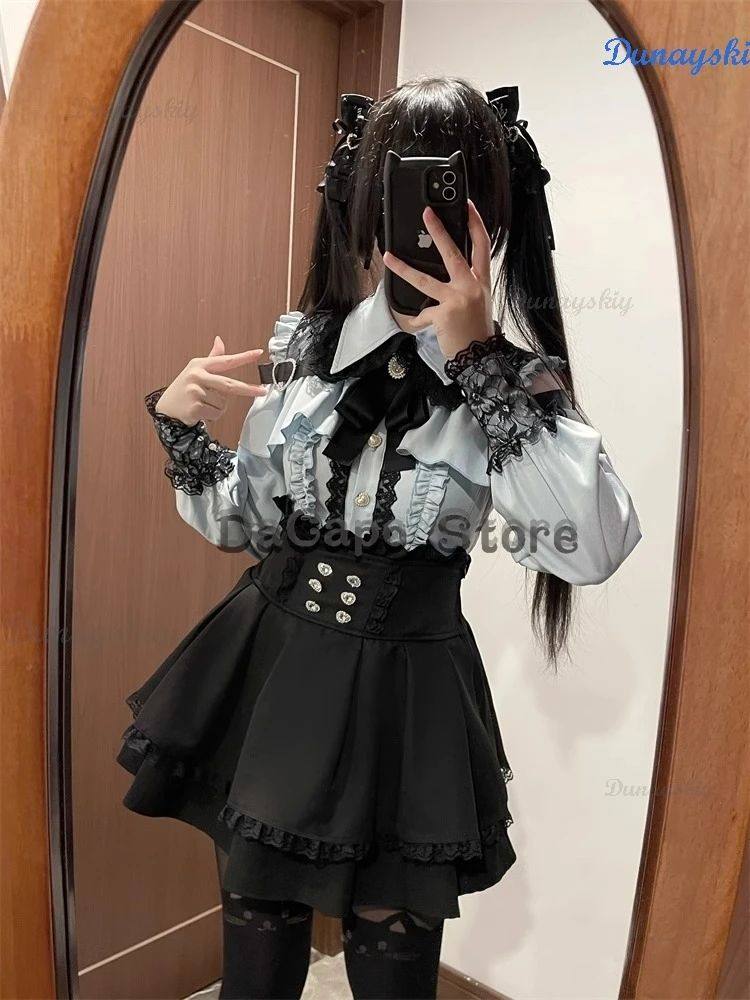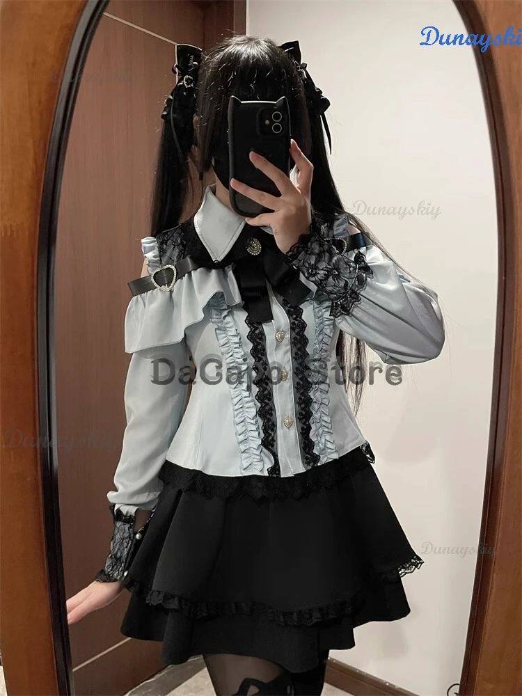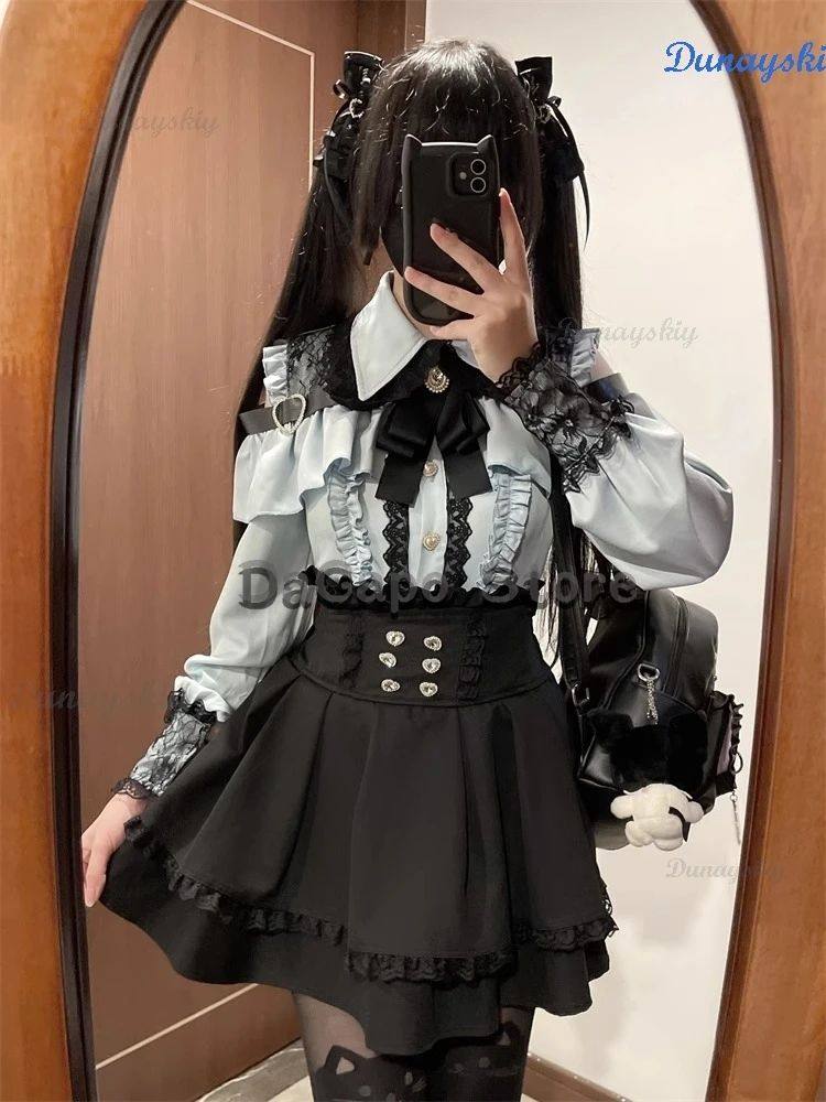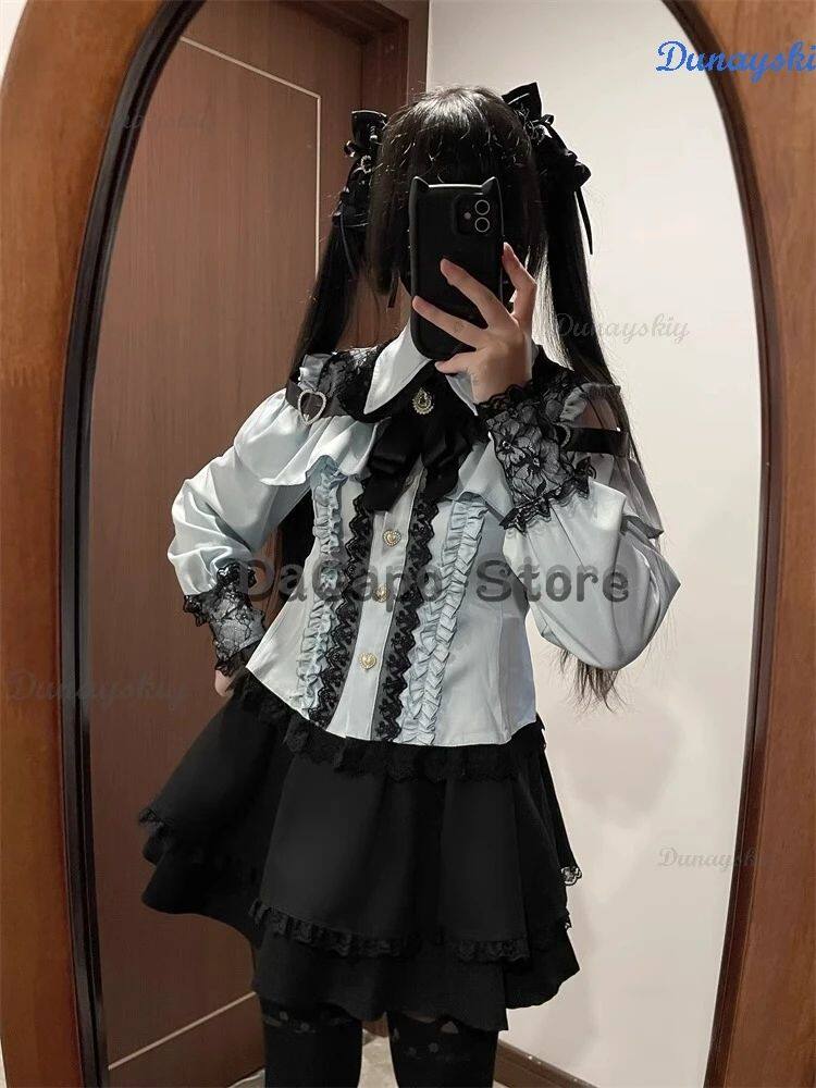 New Jirai Kei Outfit Lolita Girls Blouse Top Women Kawii Bow