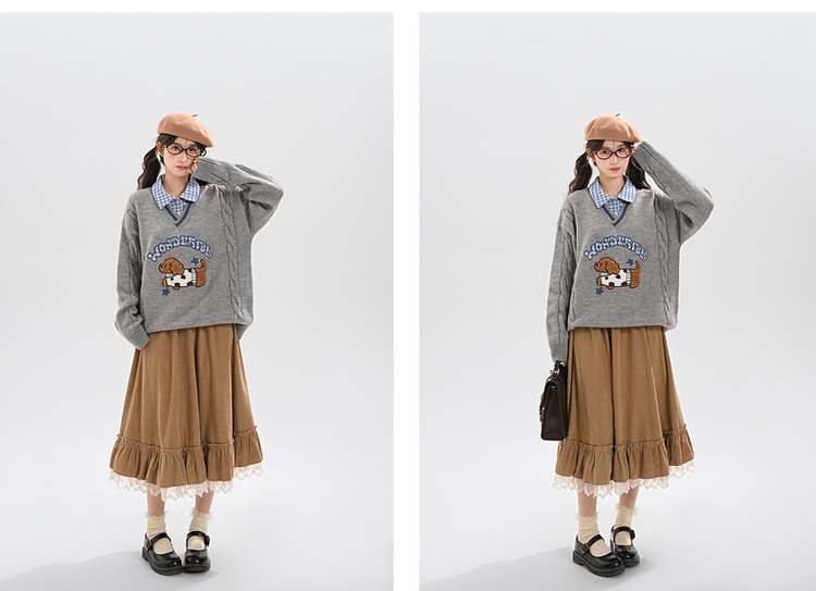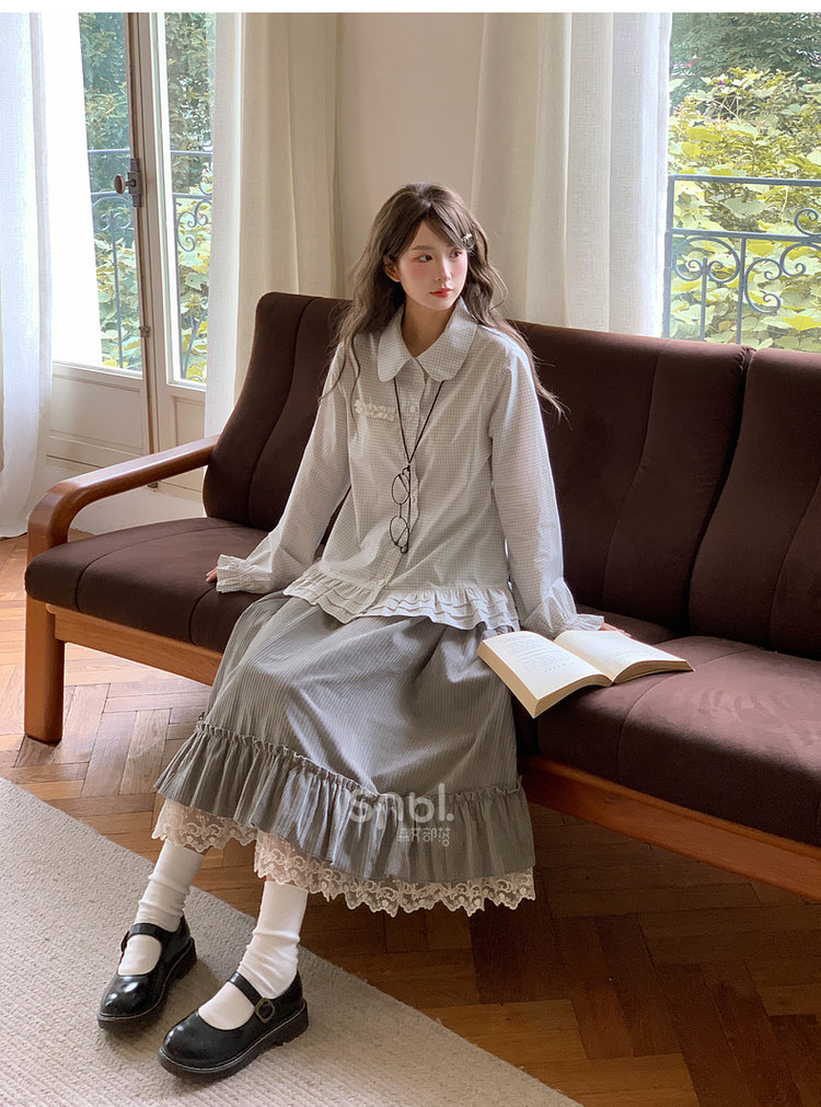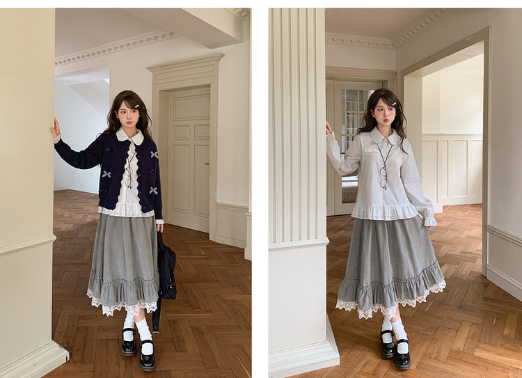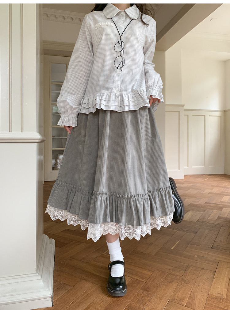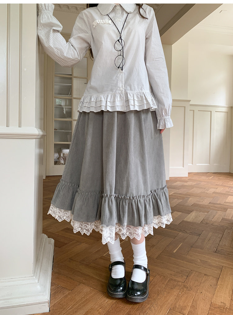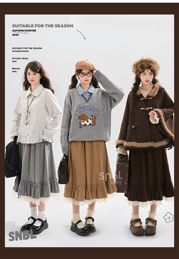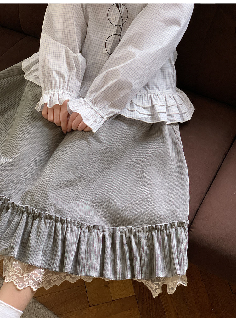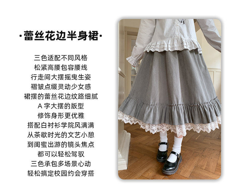 森女部落学院风高腰A字半身裙女2025新款秋季蕾丝拼接设计感长裙 [Original Page Link]
