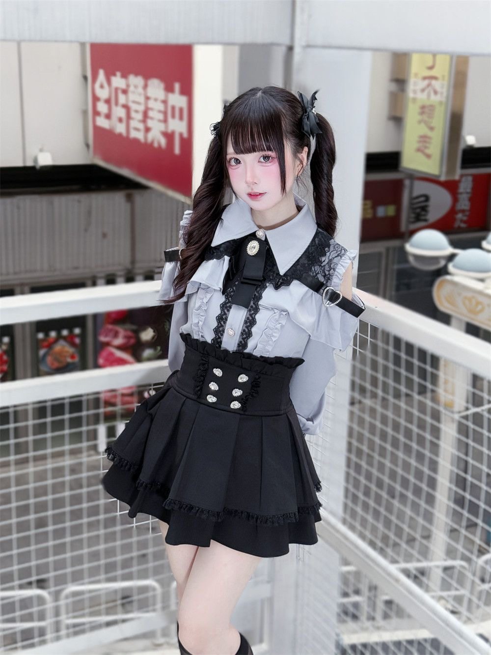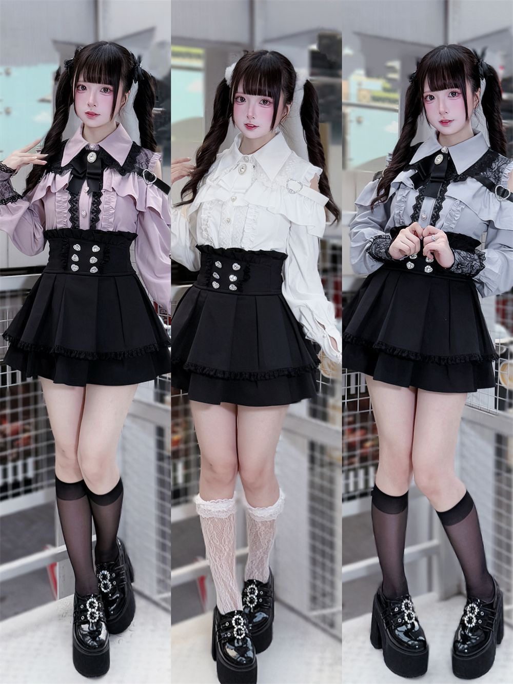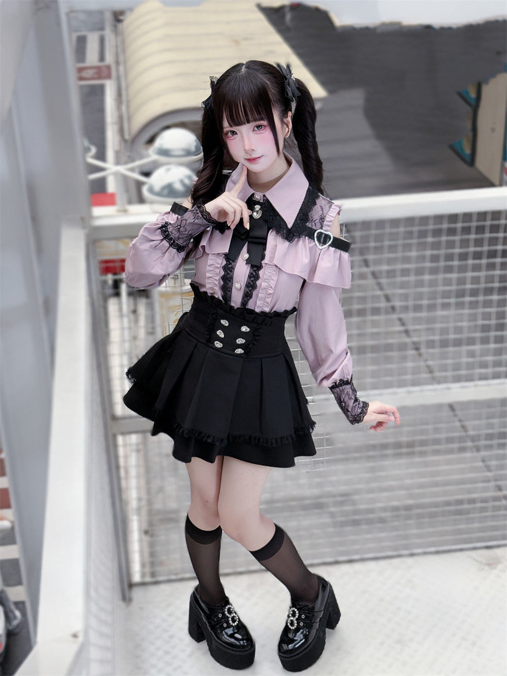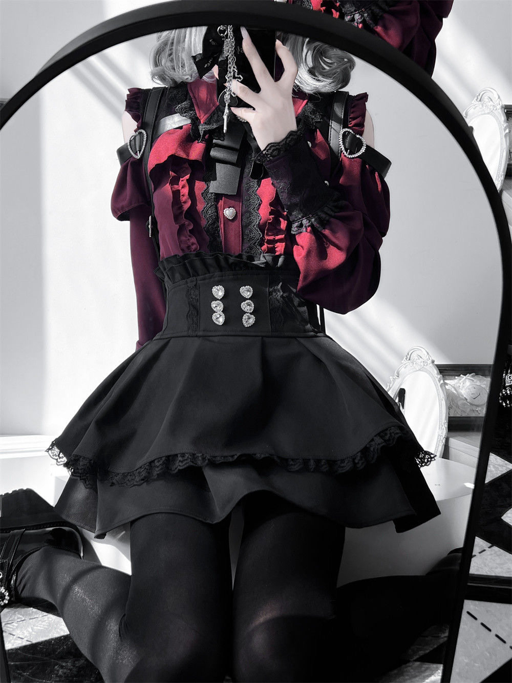甜心邂逅蕾丝套装酒酿樱桃原创日系小个子量产上衣衬衫下裙长袖 [Original Page Link]