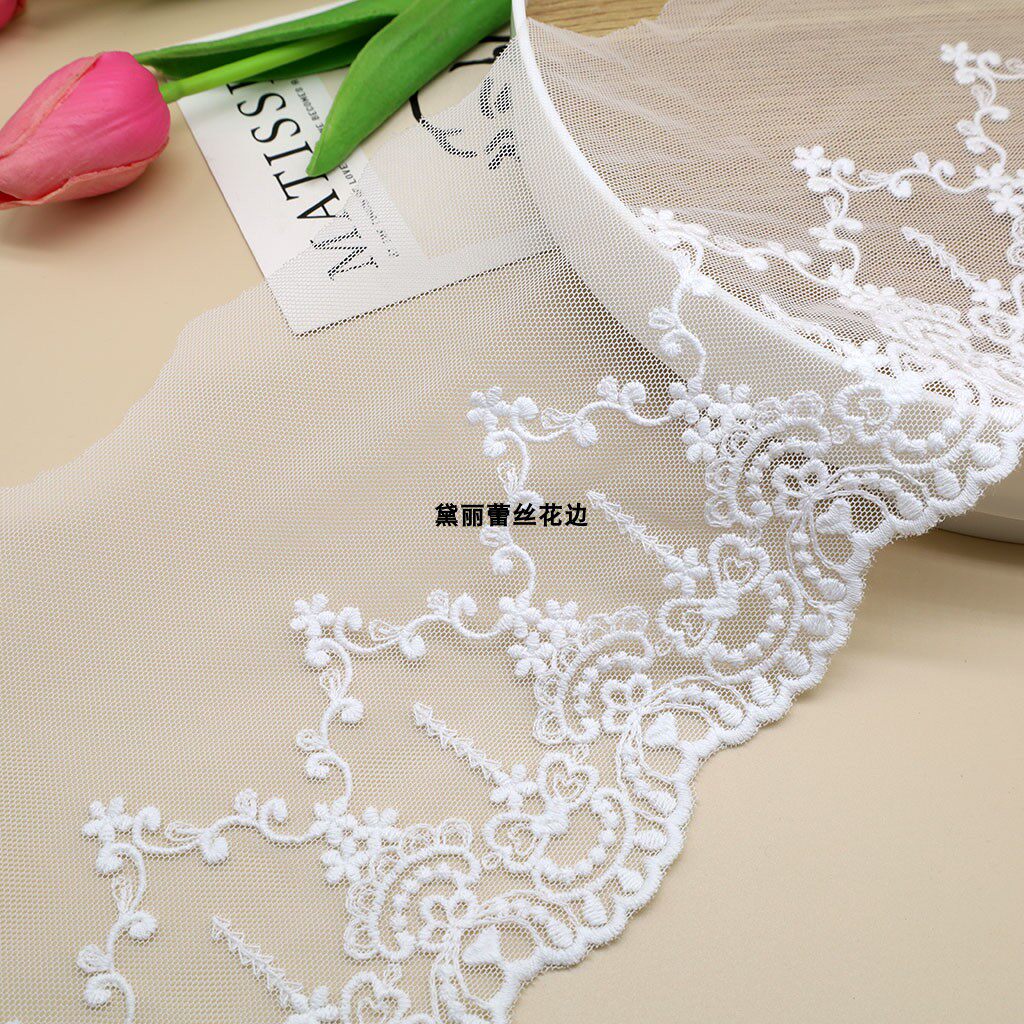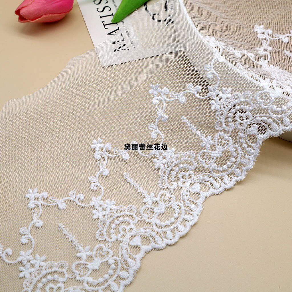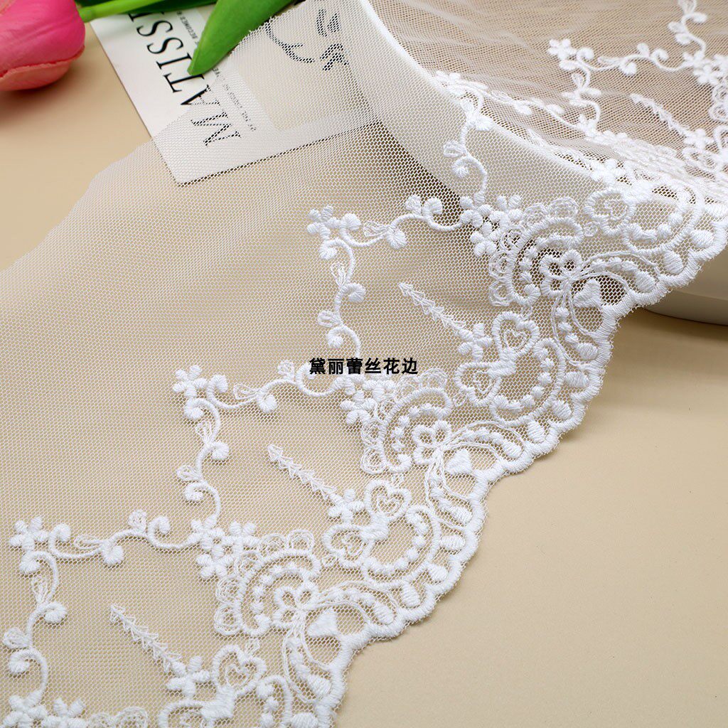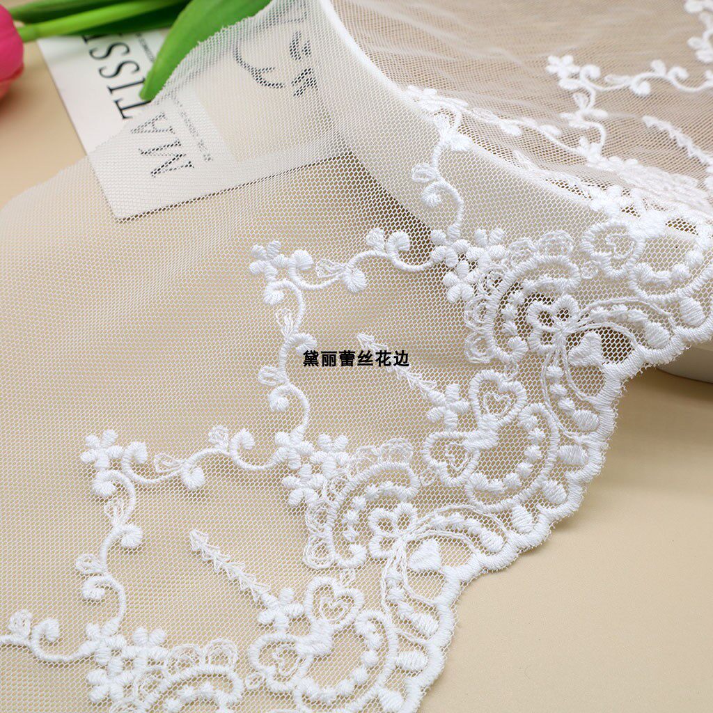 宽13.5cm 棉线 可爱蝴蝶结桃心网纱刺绣花边娃衣裙边手工蕾丝花边 [Original Page Link]