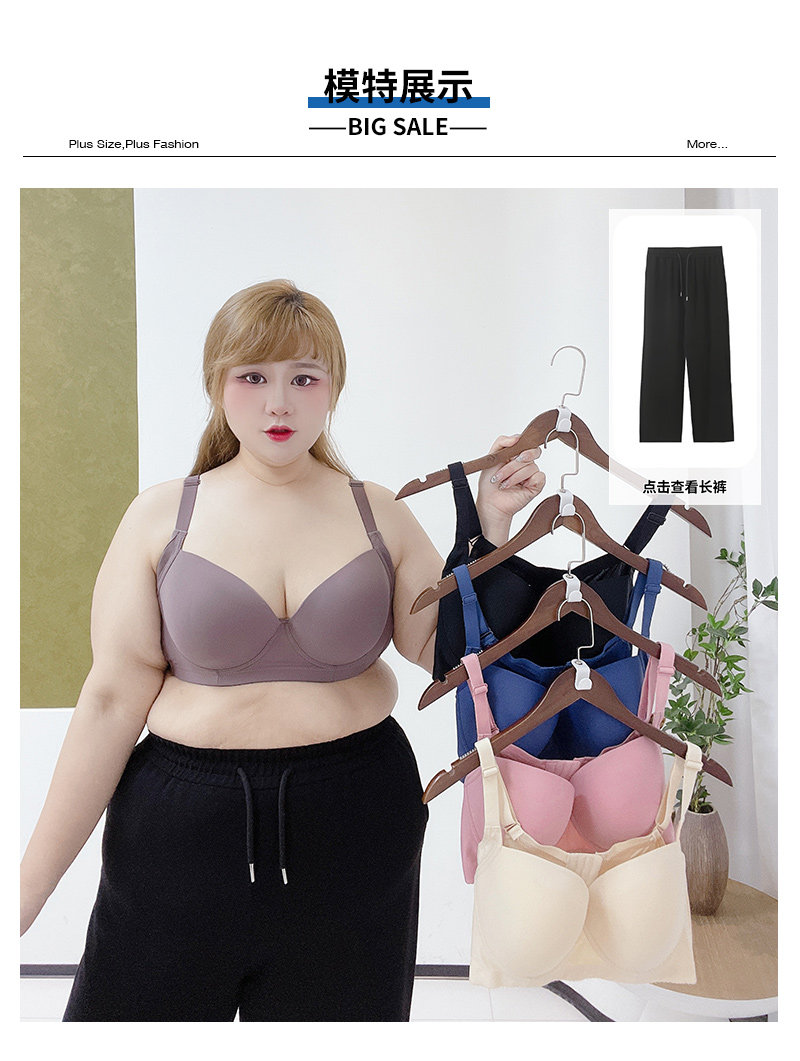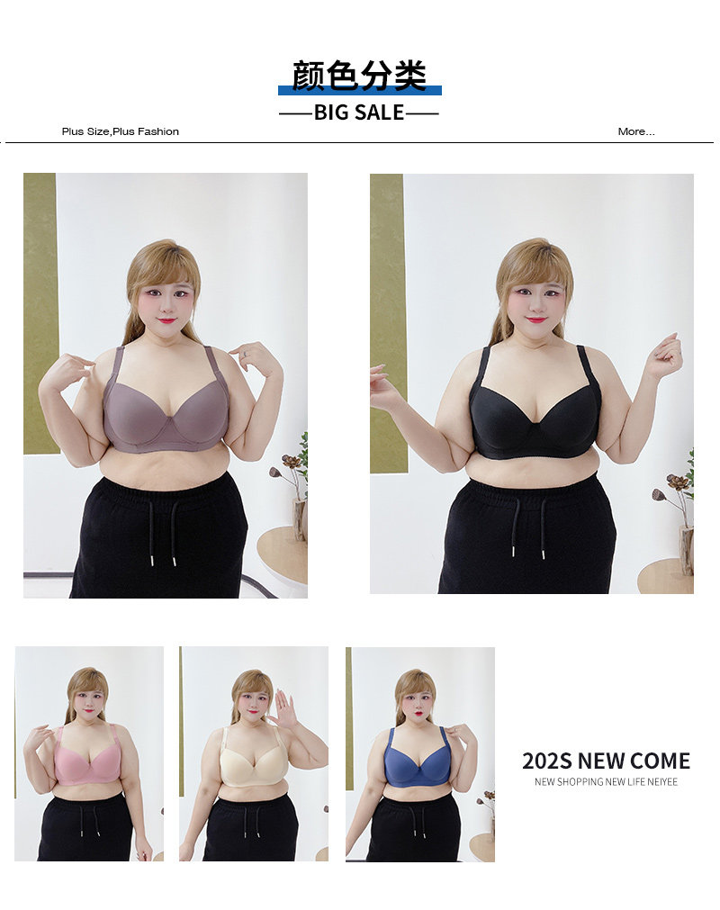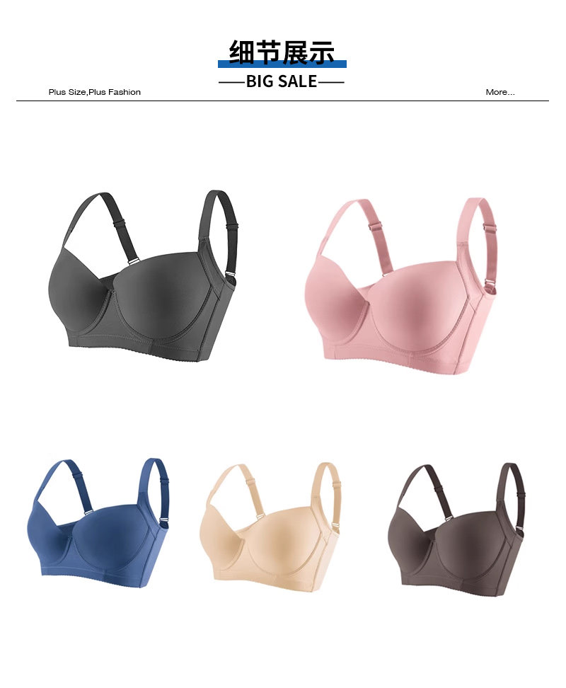 Push-up, anti-sagging, underwire, minimalist style bra for plus sizes, smooth, seamless, sexy deep V-neck lingerie.