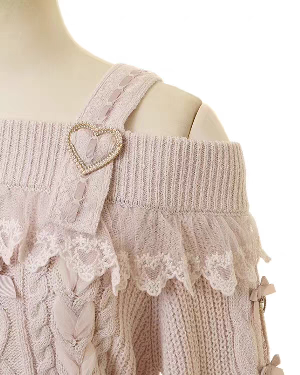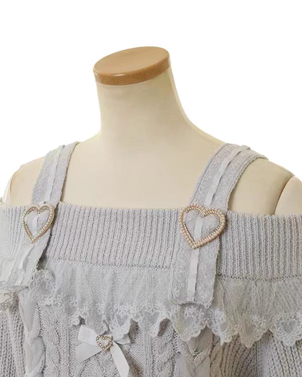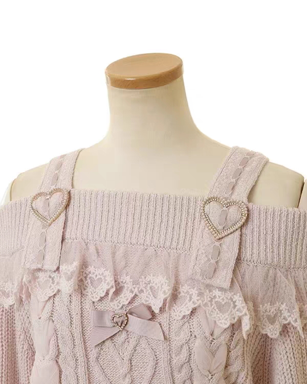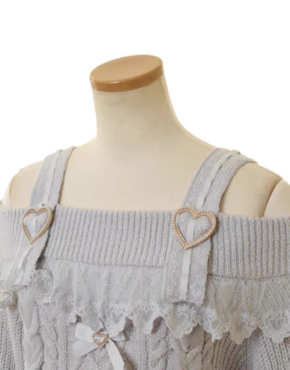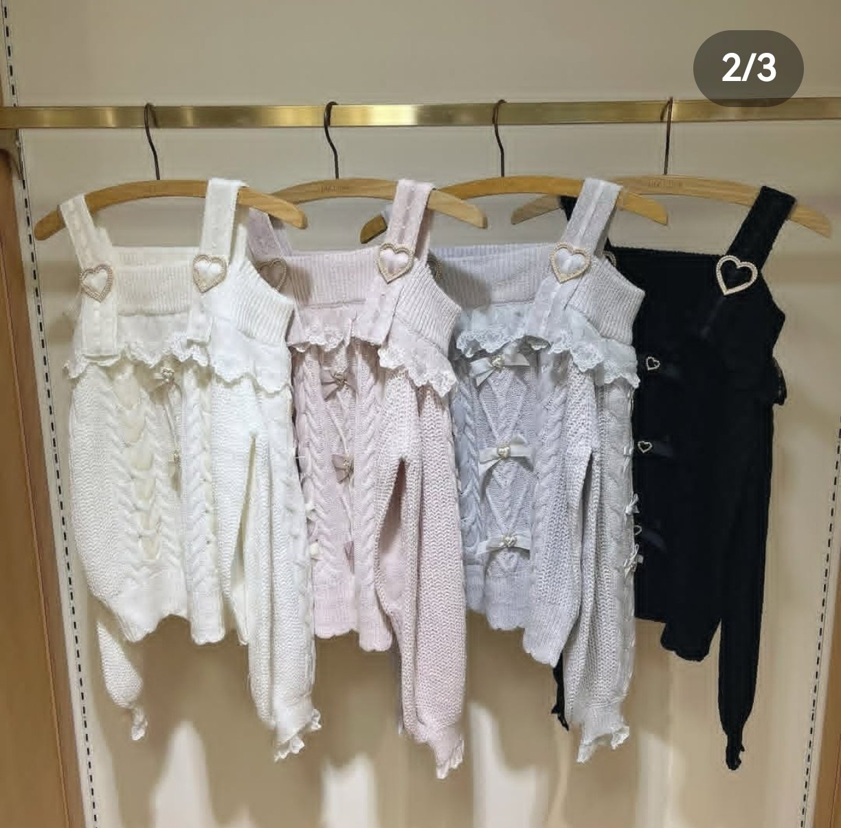 现货发 25年秋冬返单新批次爱心珍珠蝴蝶结吊带针织衫 [Original Page Link]