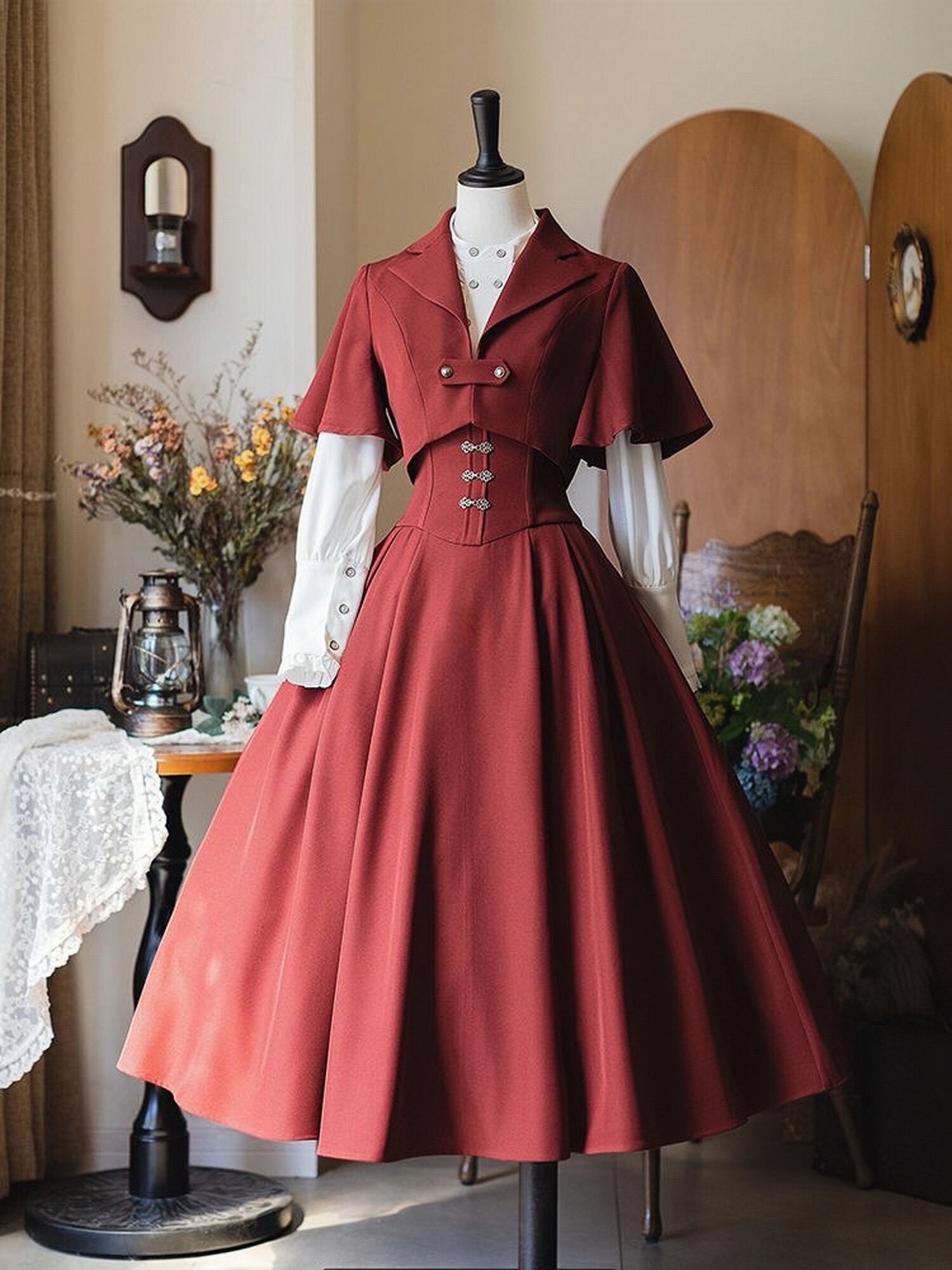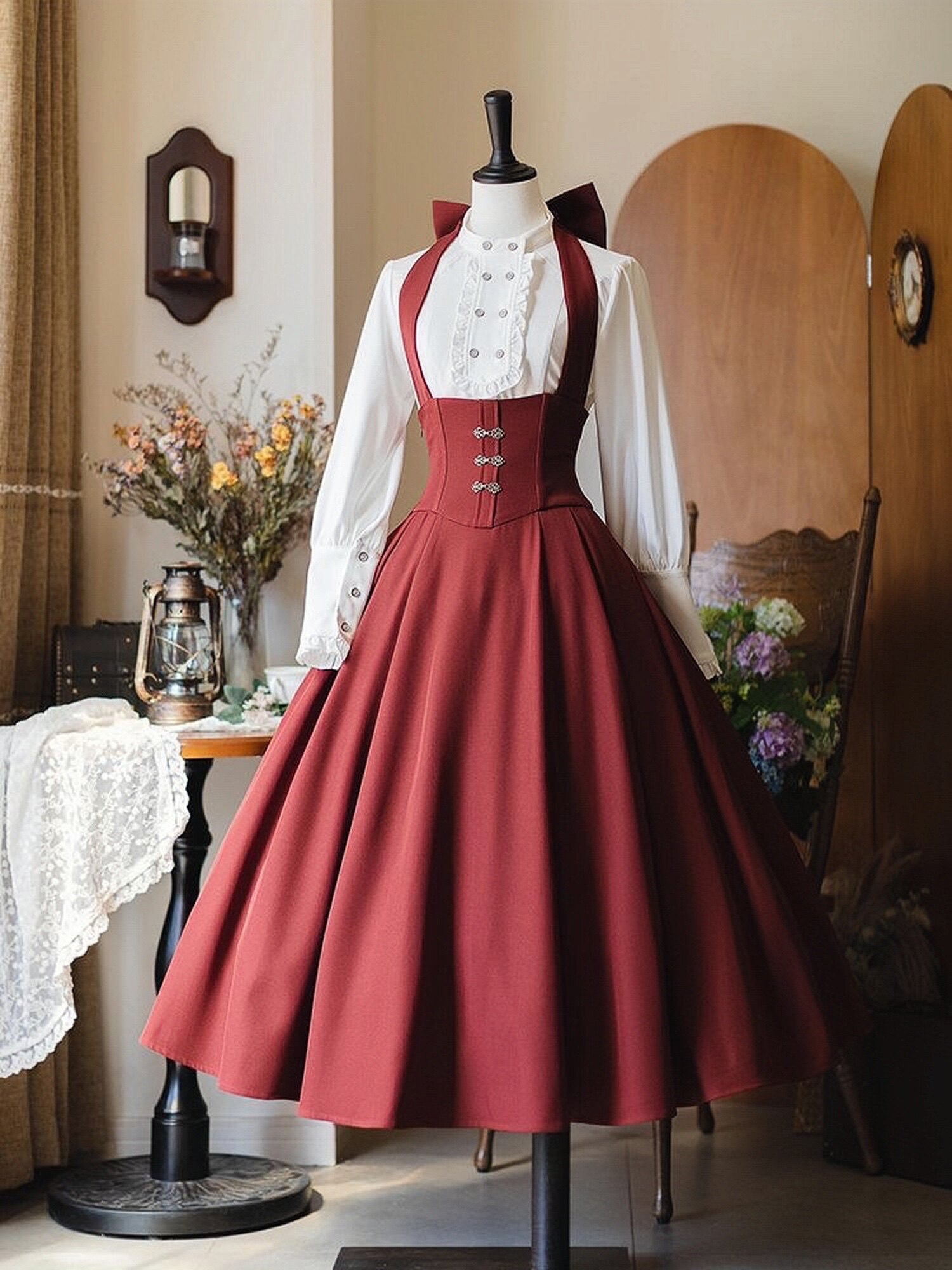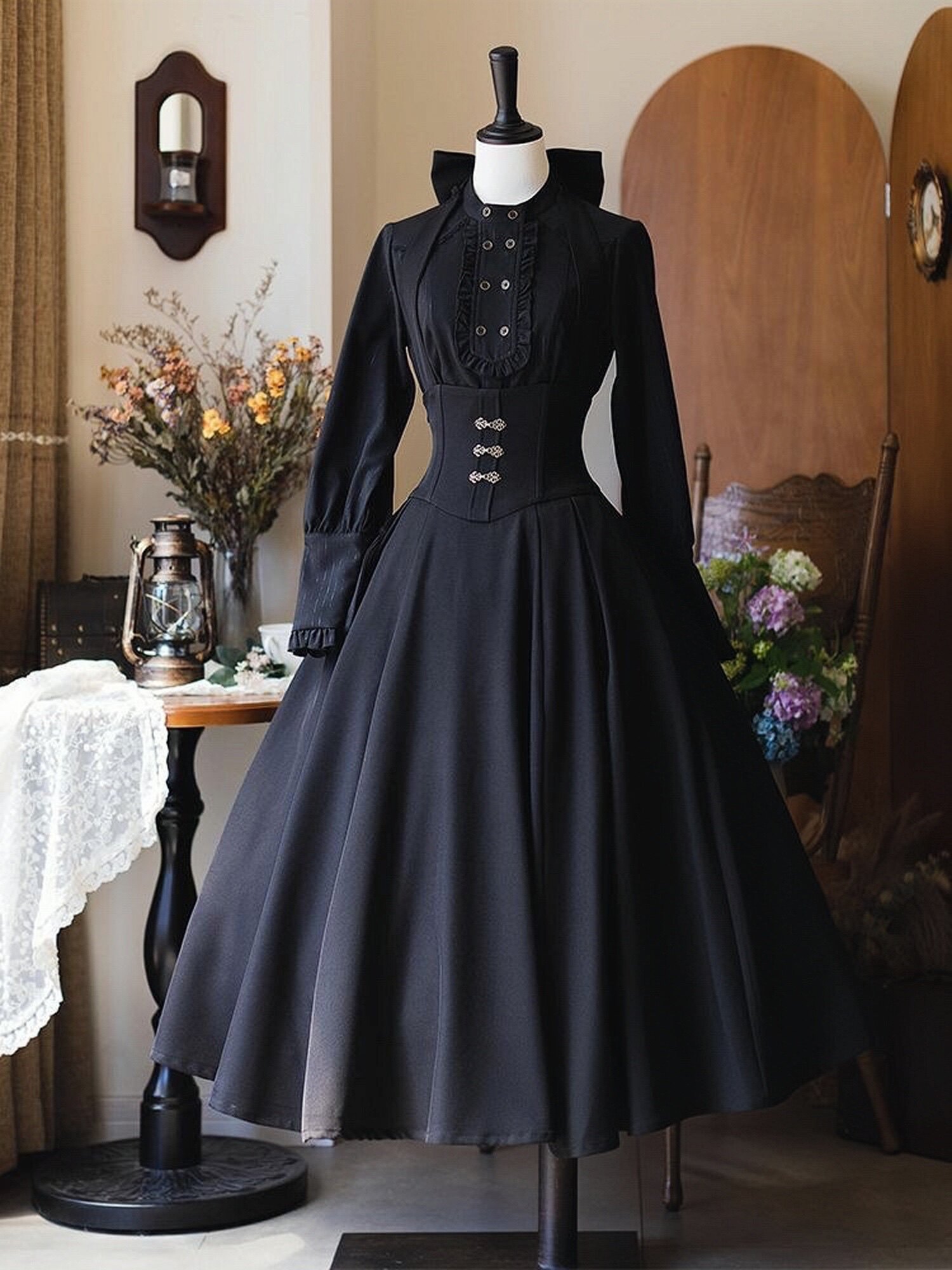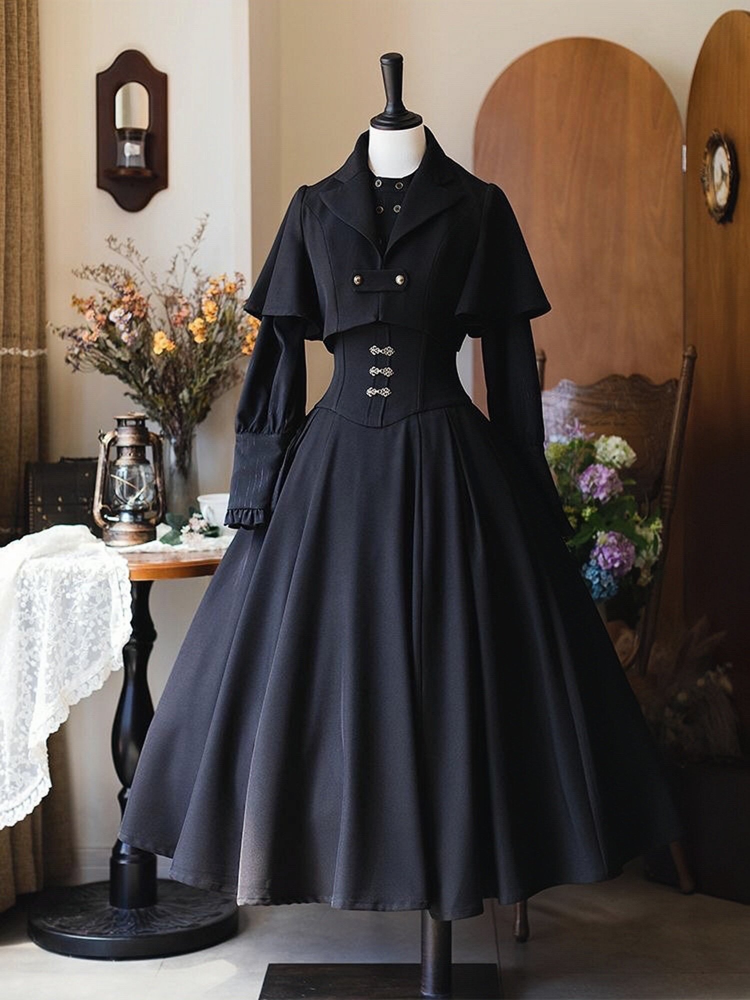 【森林来信】秋冬哥特风暗黑系lolita披肩衬衫挂脖连衣裙优雅套装 [Original Page Link]
