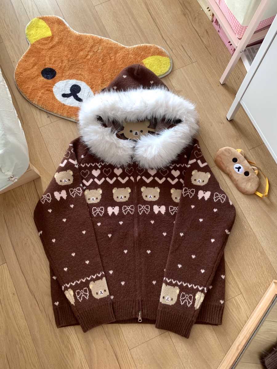 blurredbear原创软妹宅萌可爱软妹轻松熊毛衣秋冬加厚连帽外套女 [Original Page Link]