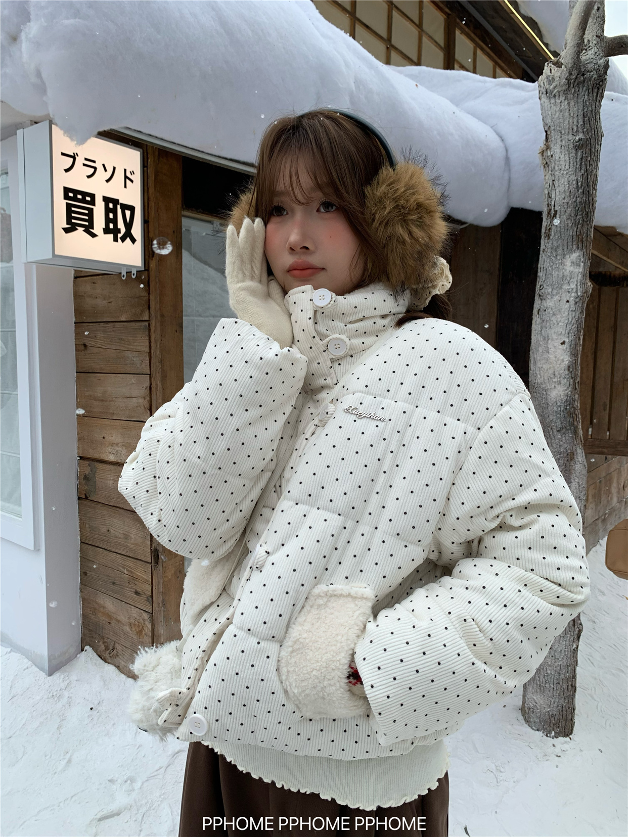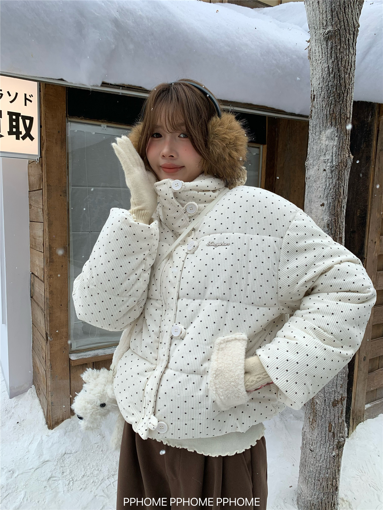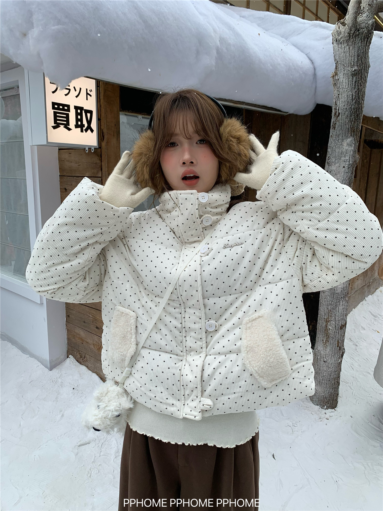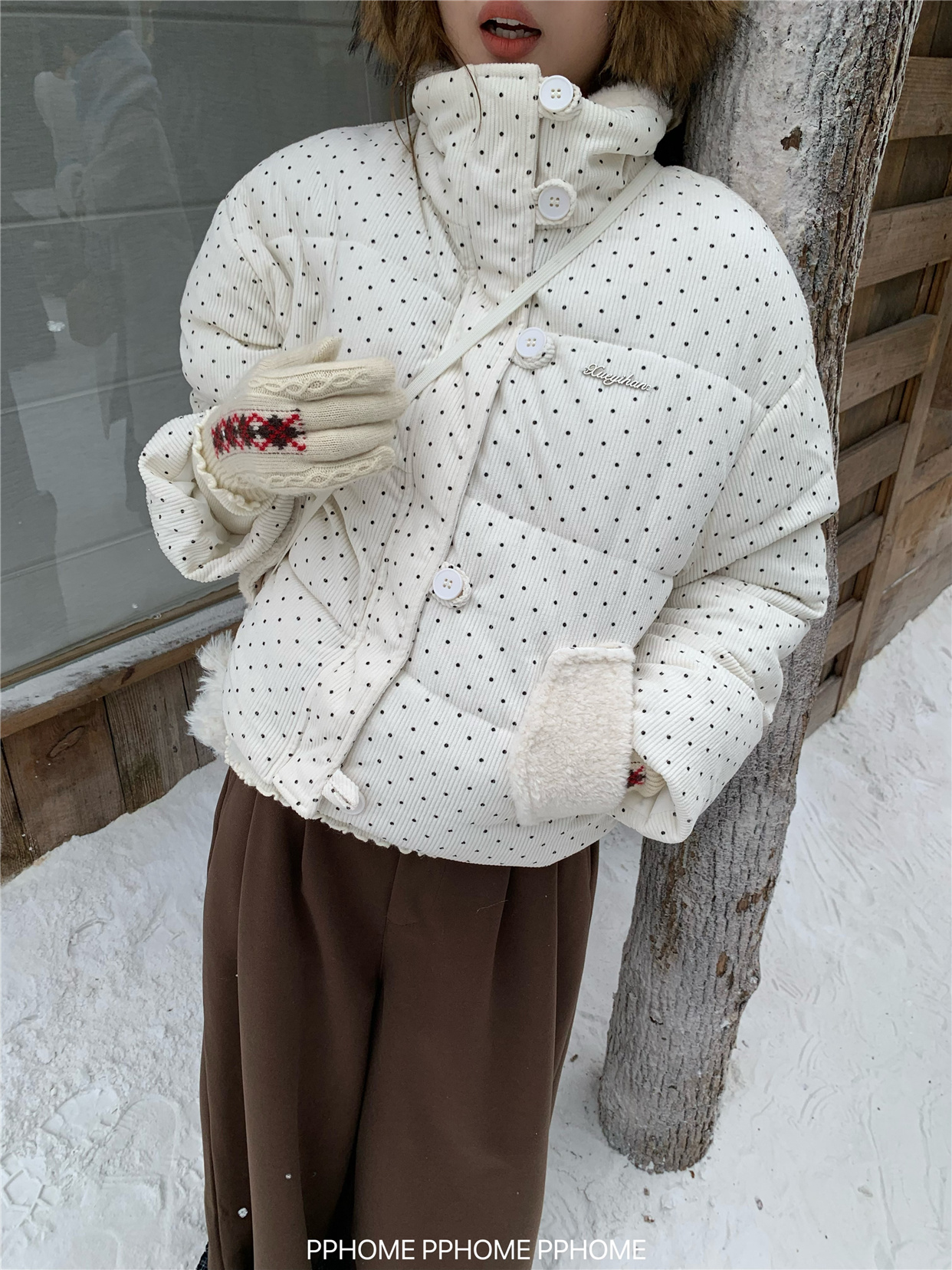 PPHOME自制~可爱波点面包服棉服女冬季显瘦短款立领保暖棉袄外套 [Original Page Link]