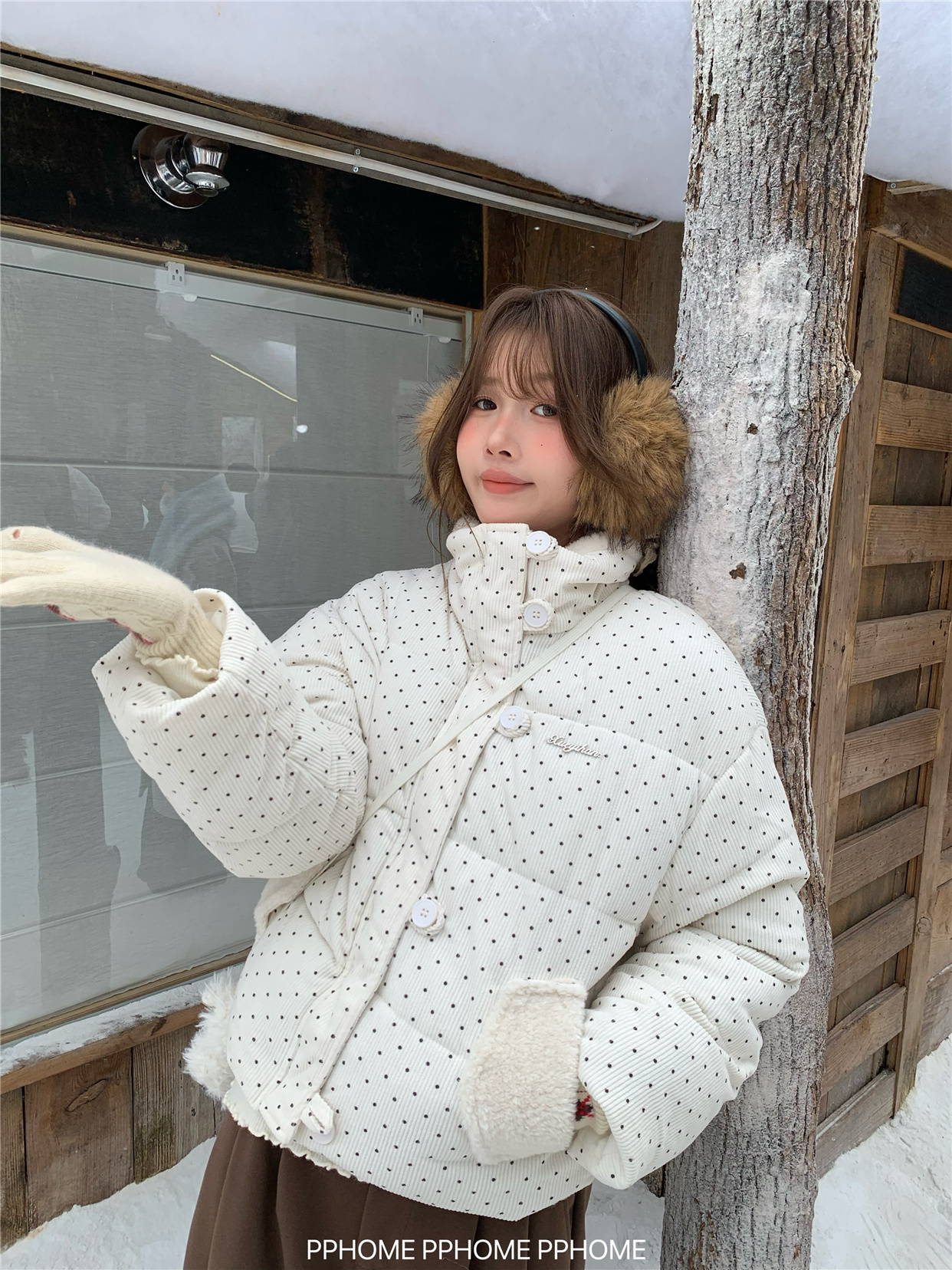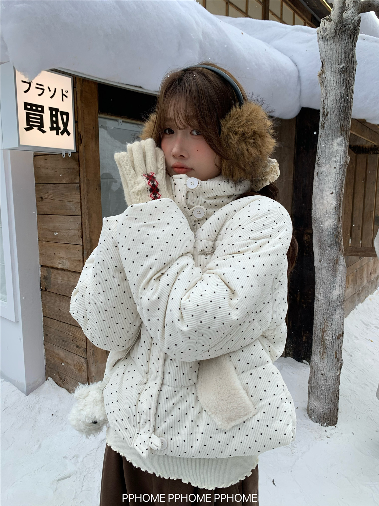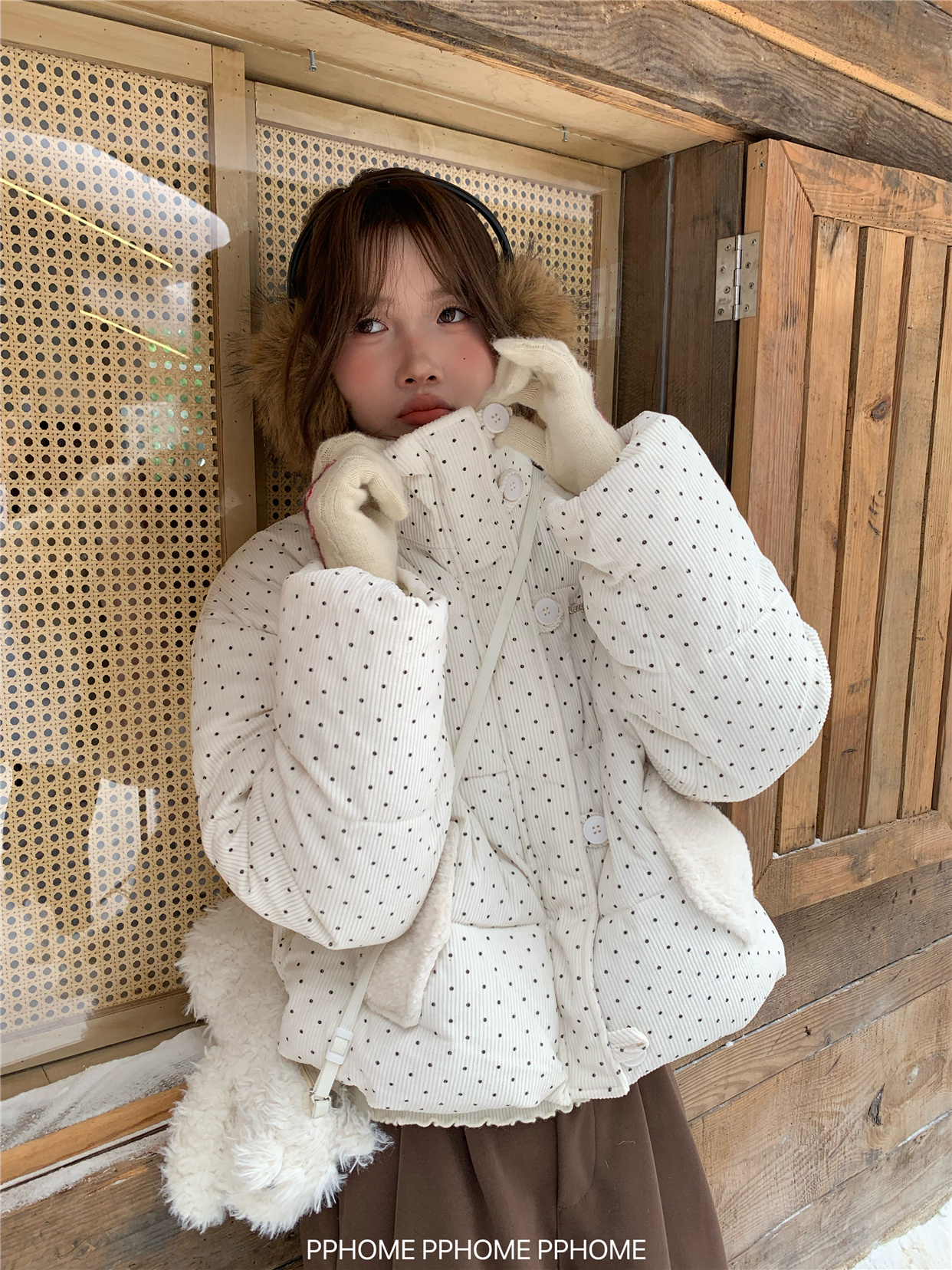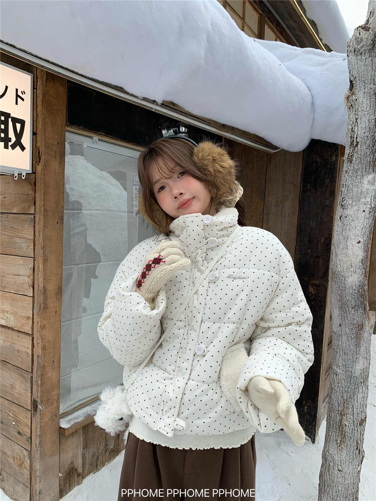 PPHOME自制~可爱波点面包服棉服女冬季显瘦短款立领保暖棉袄外套 [Original Page Link]