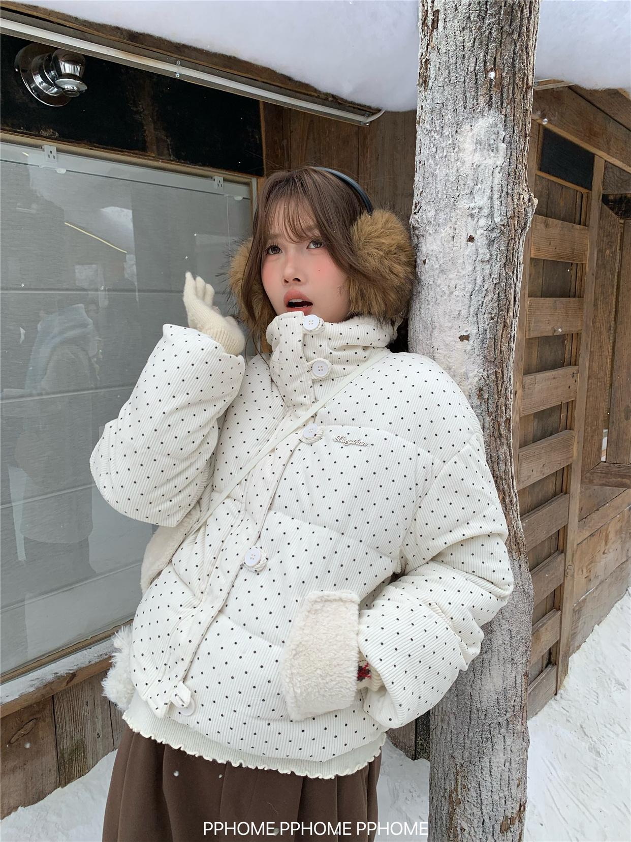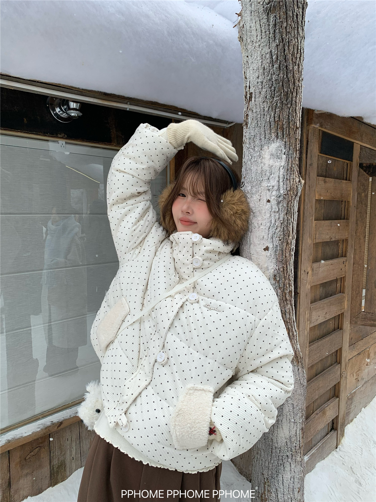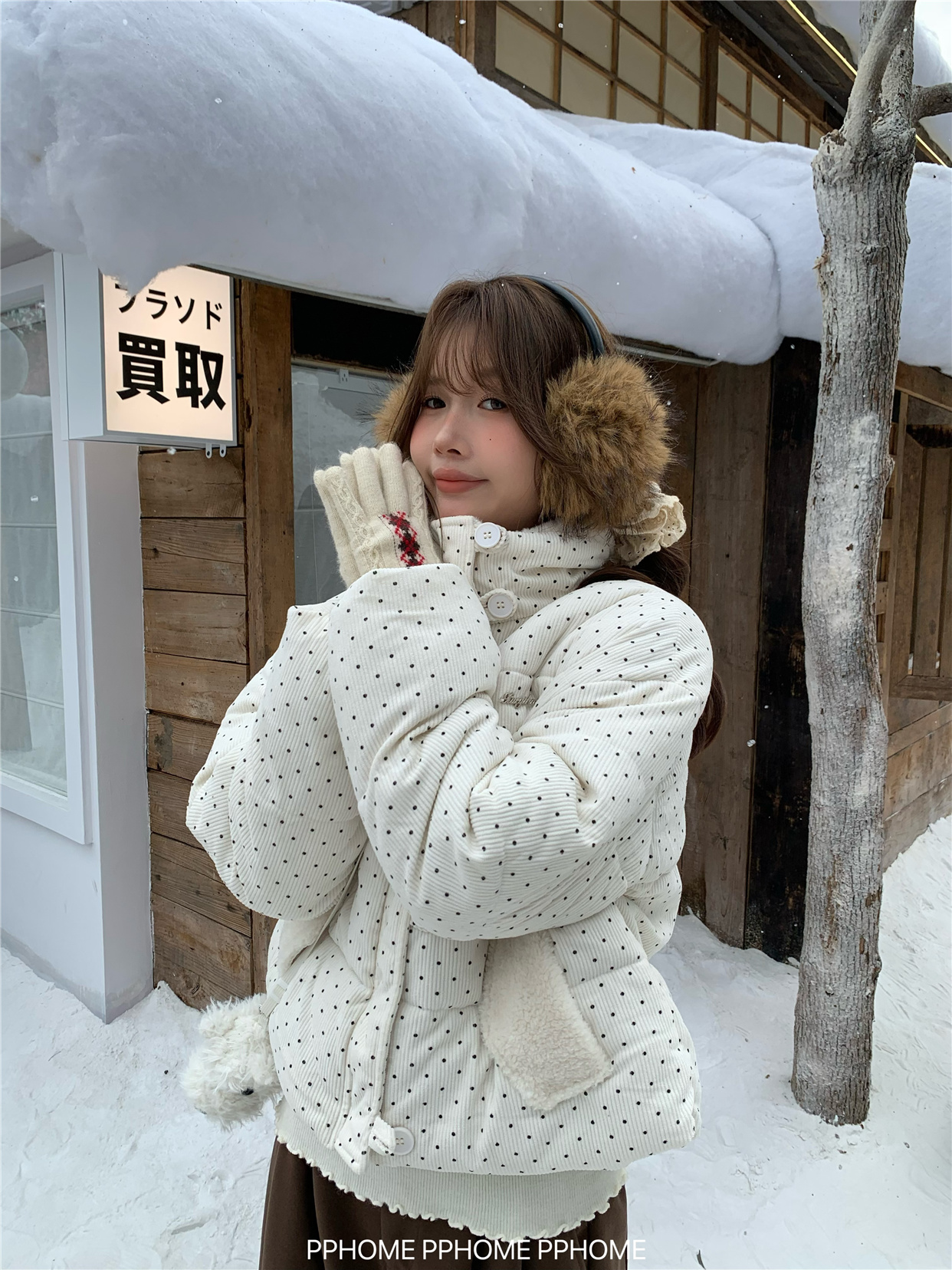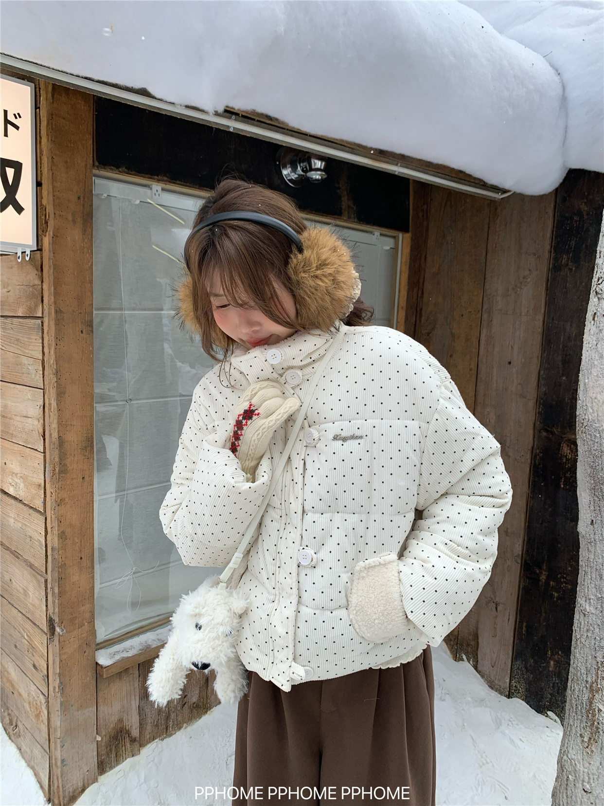 PPHOME自制~可爱波点面包服棉服女冬季显瘦短款立领保暖棉袄外套 [Original Page Link]