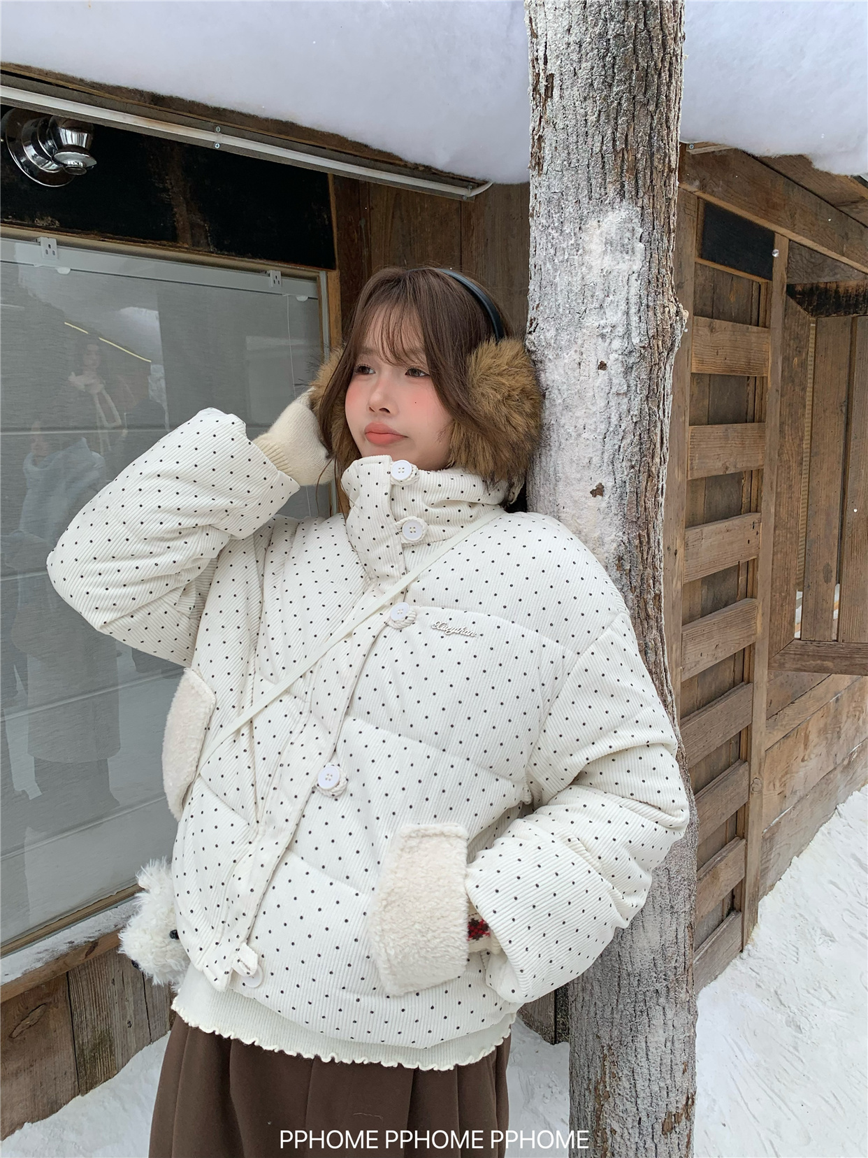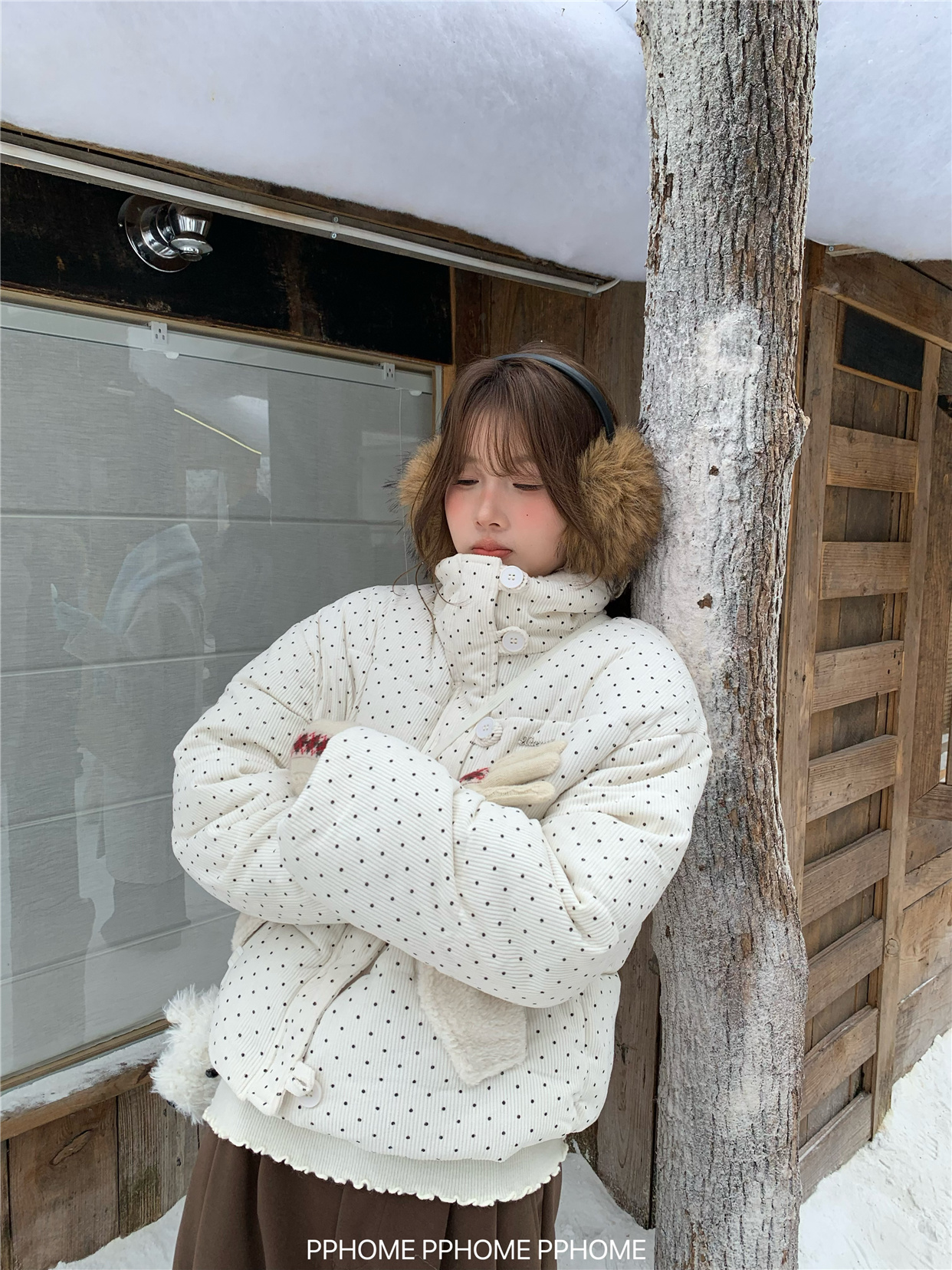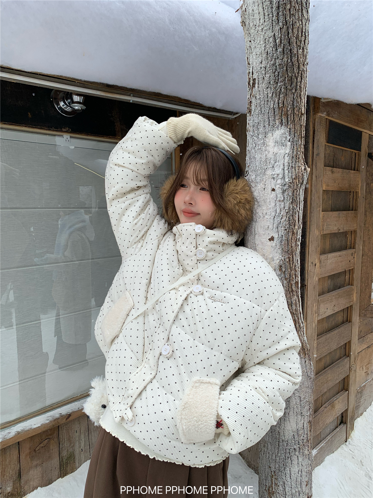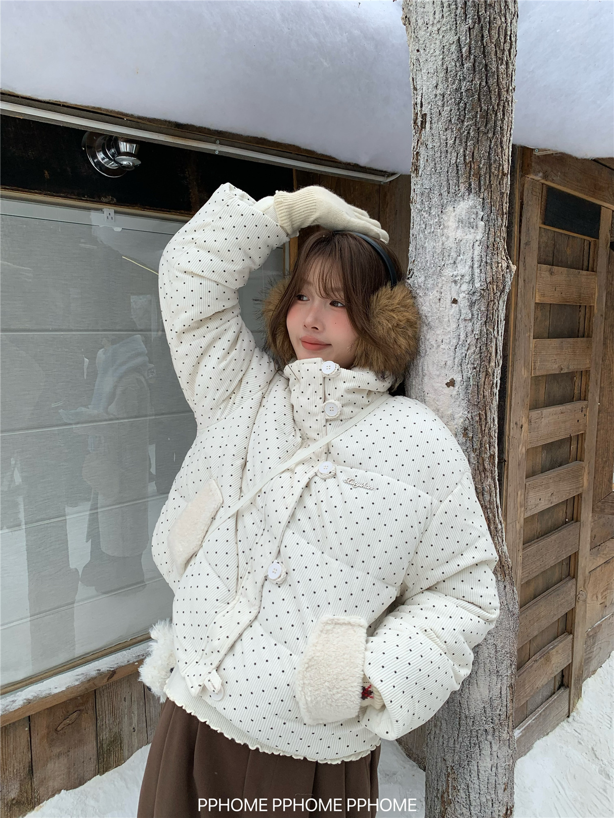 PPHOME自制~可爱波点面包服棉服女冬季显瘦短款立领保暖棉袄外套 [Original Page Link]