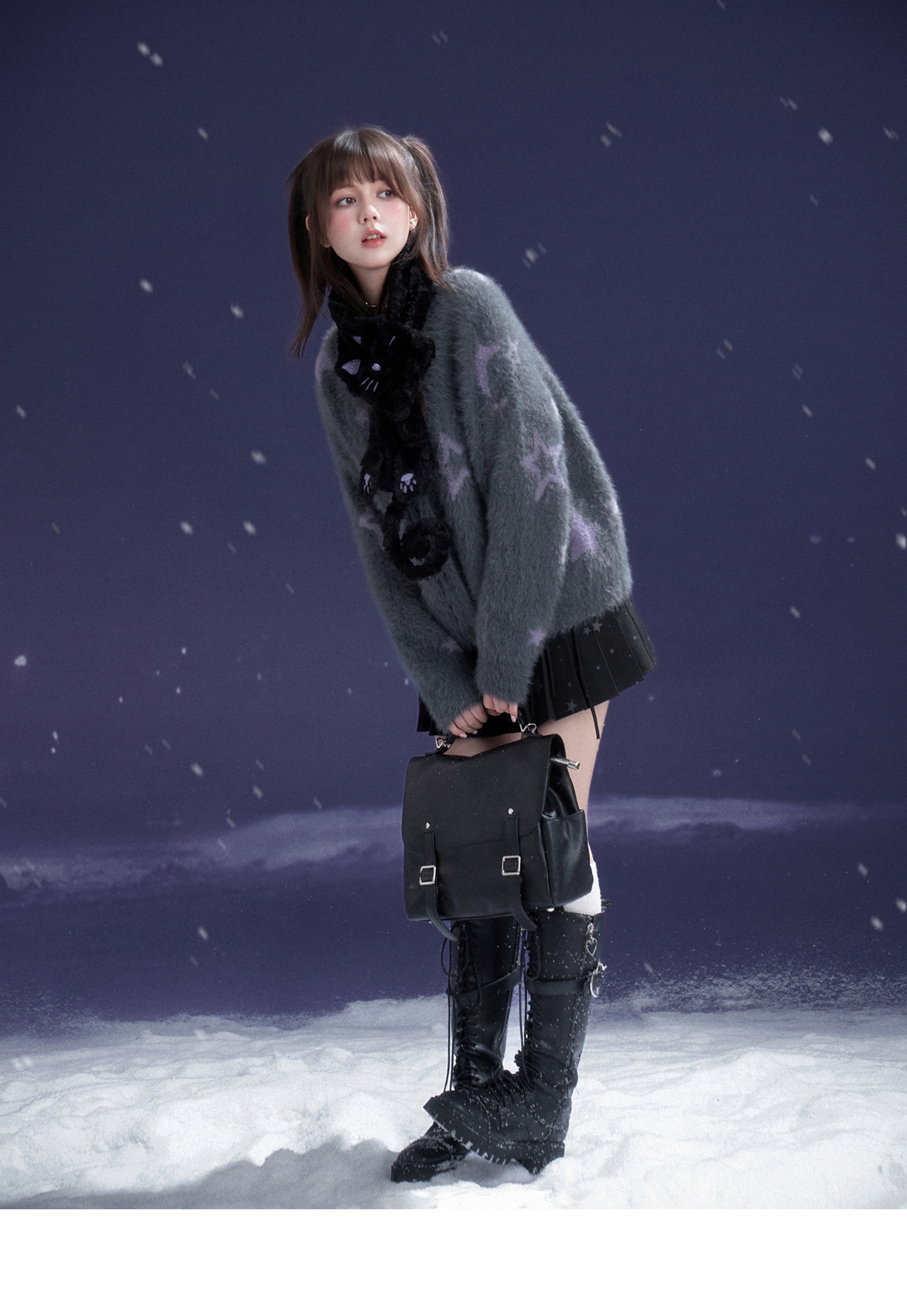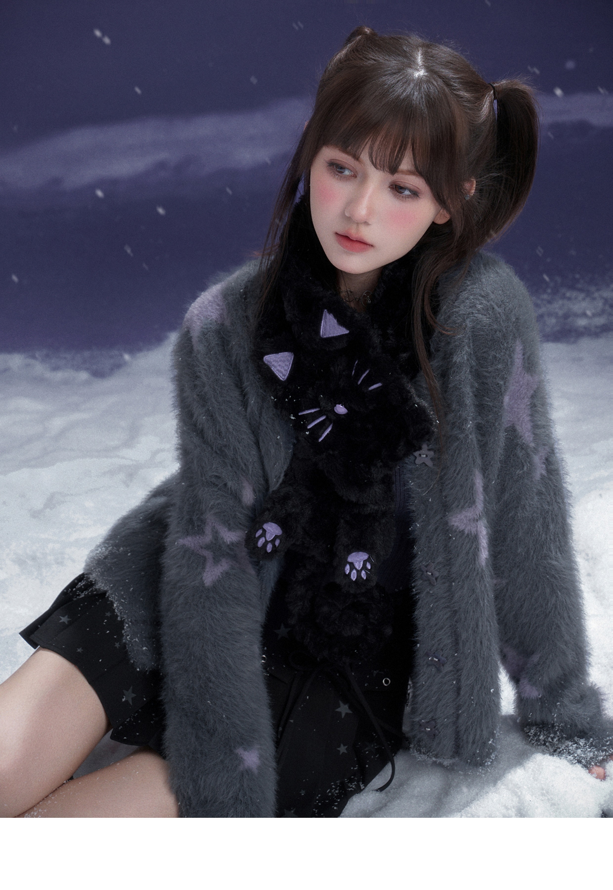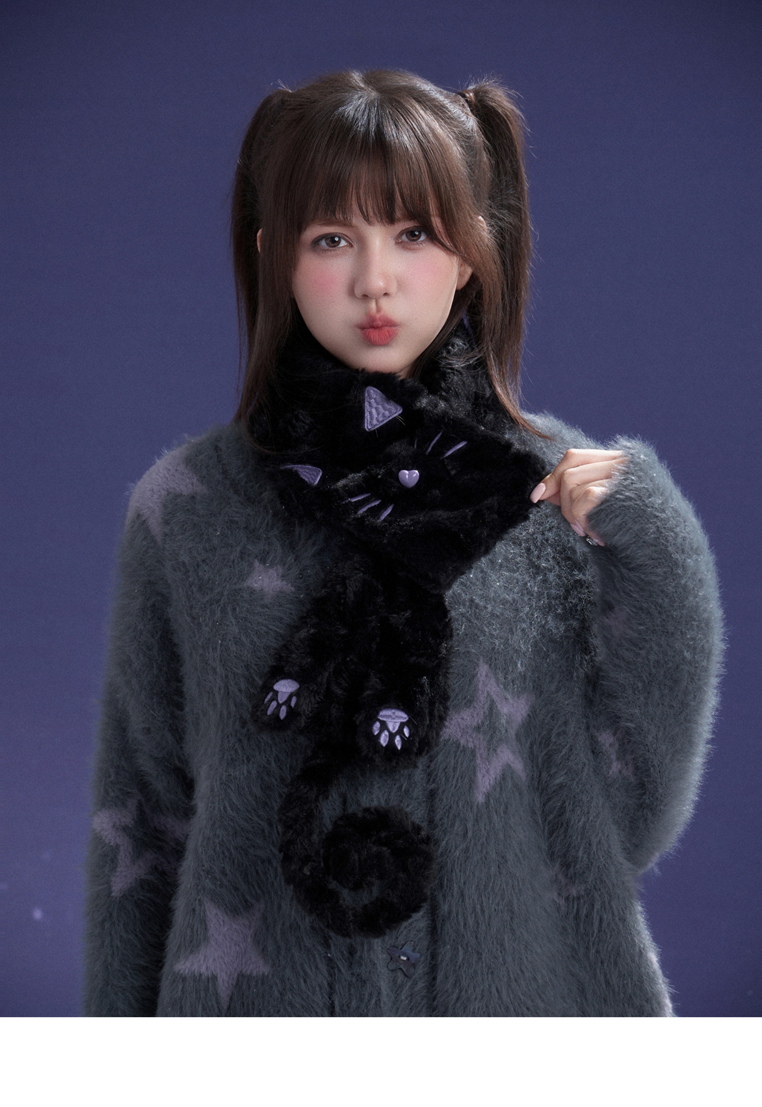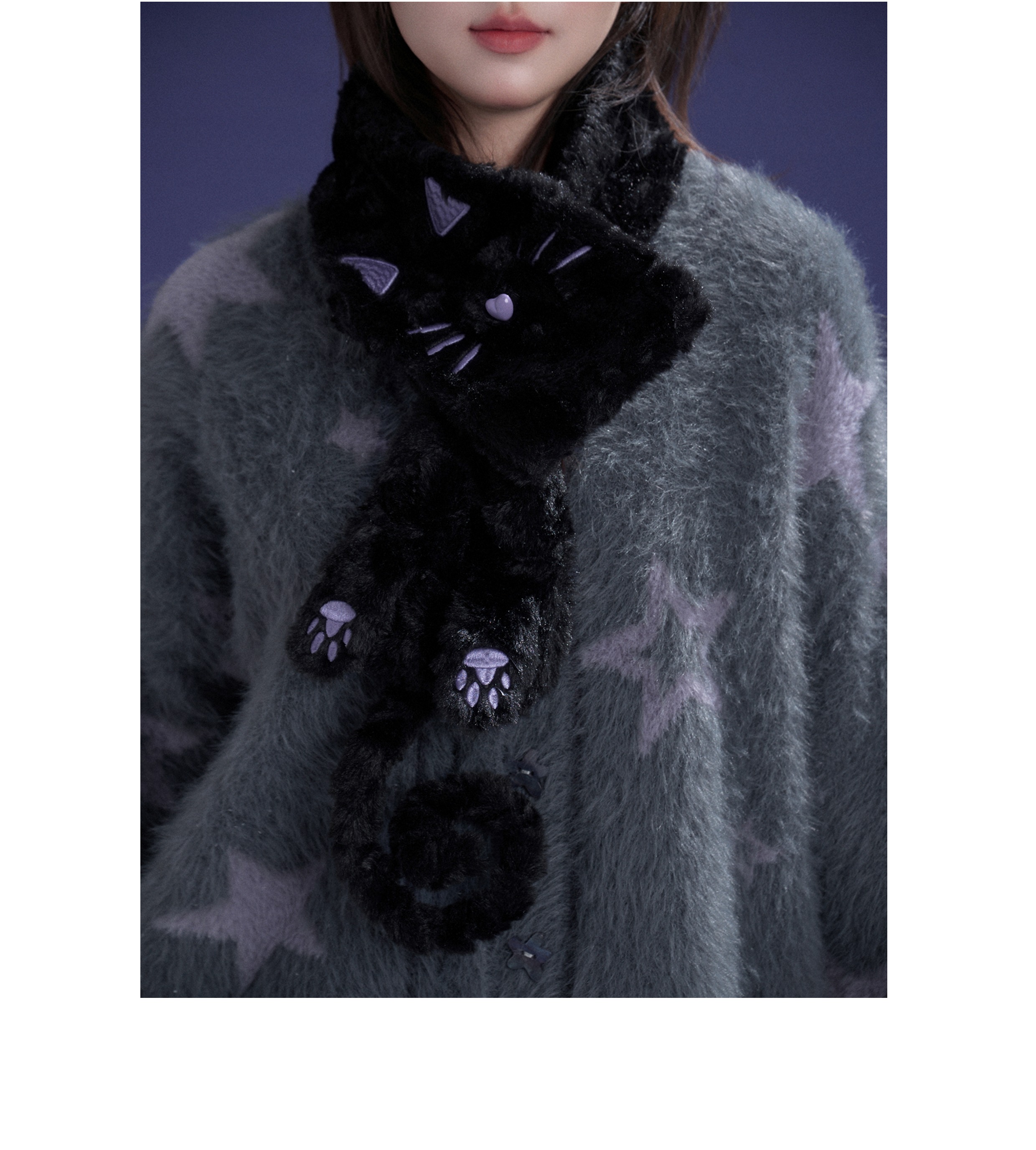 SagiDolls少女斗志 #小夜猫#百搭黑紫猫咪毛毛围巾保暖可爱甜酷冬 [Original Page Link]