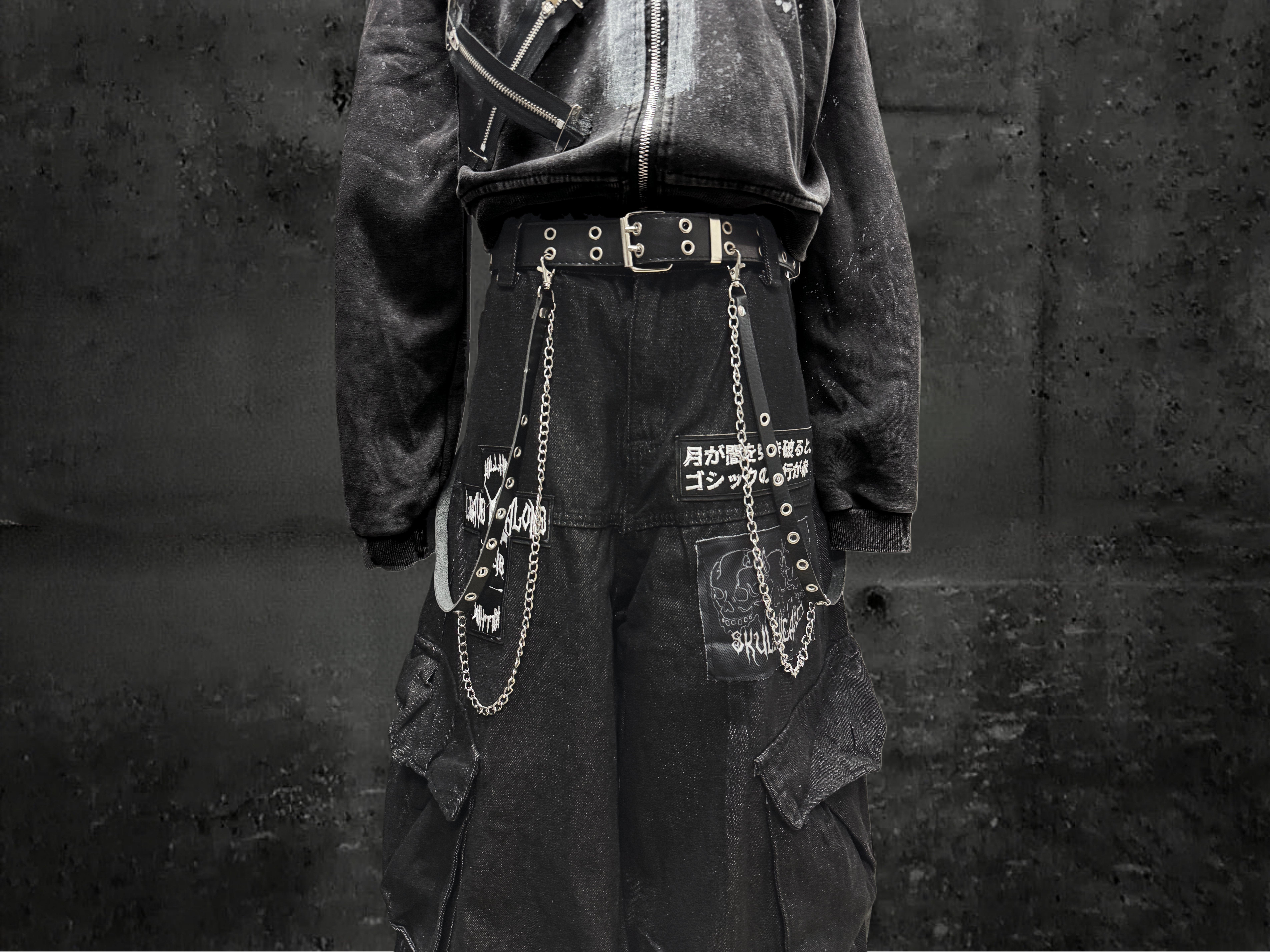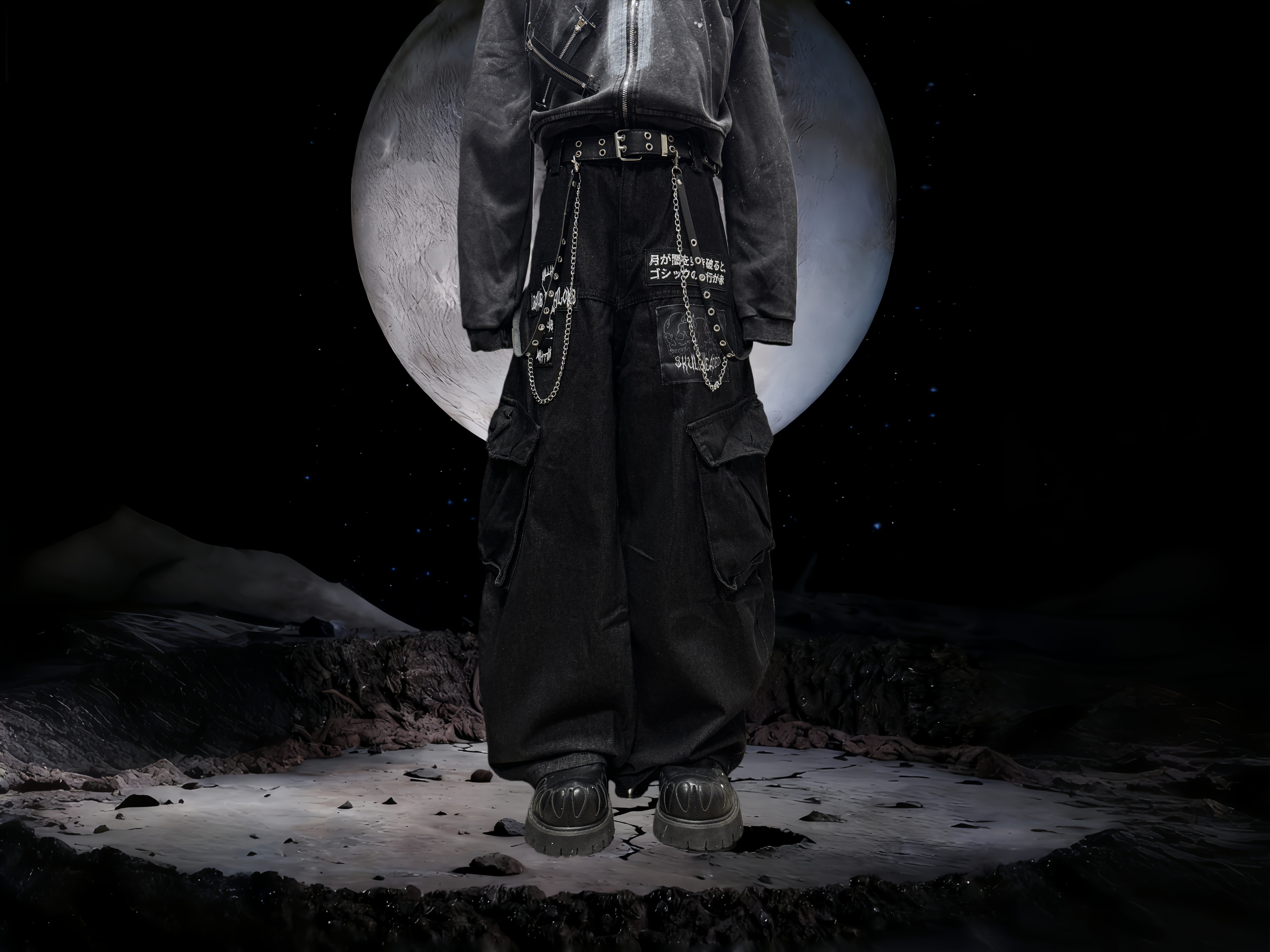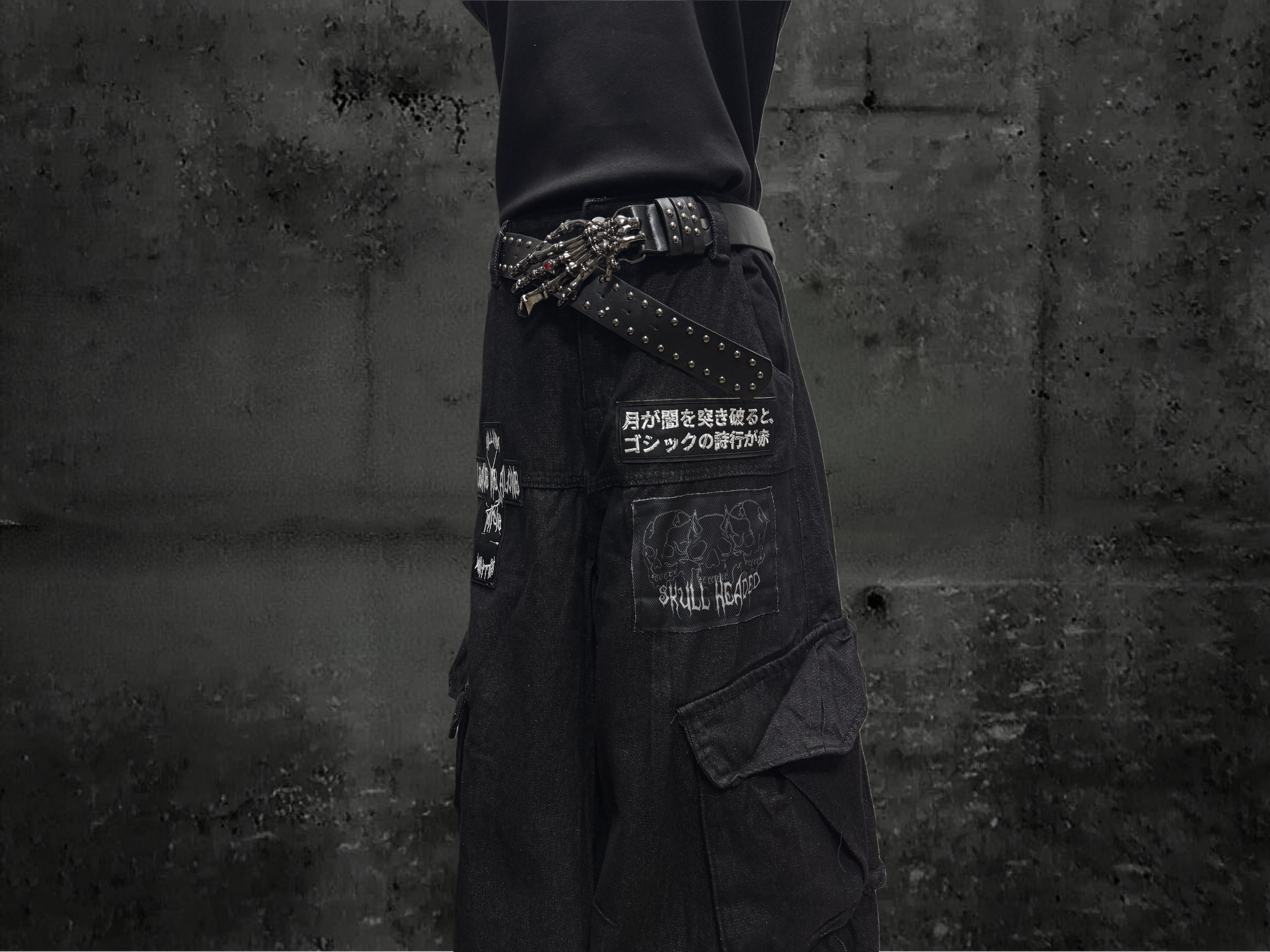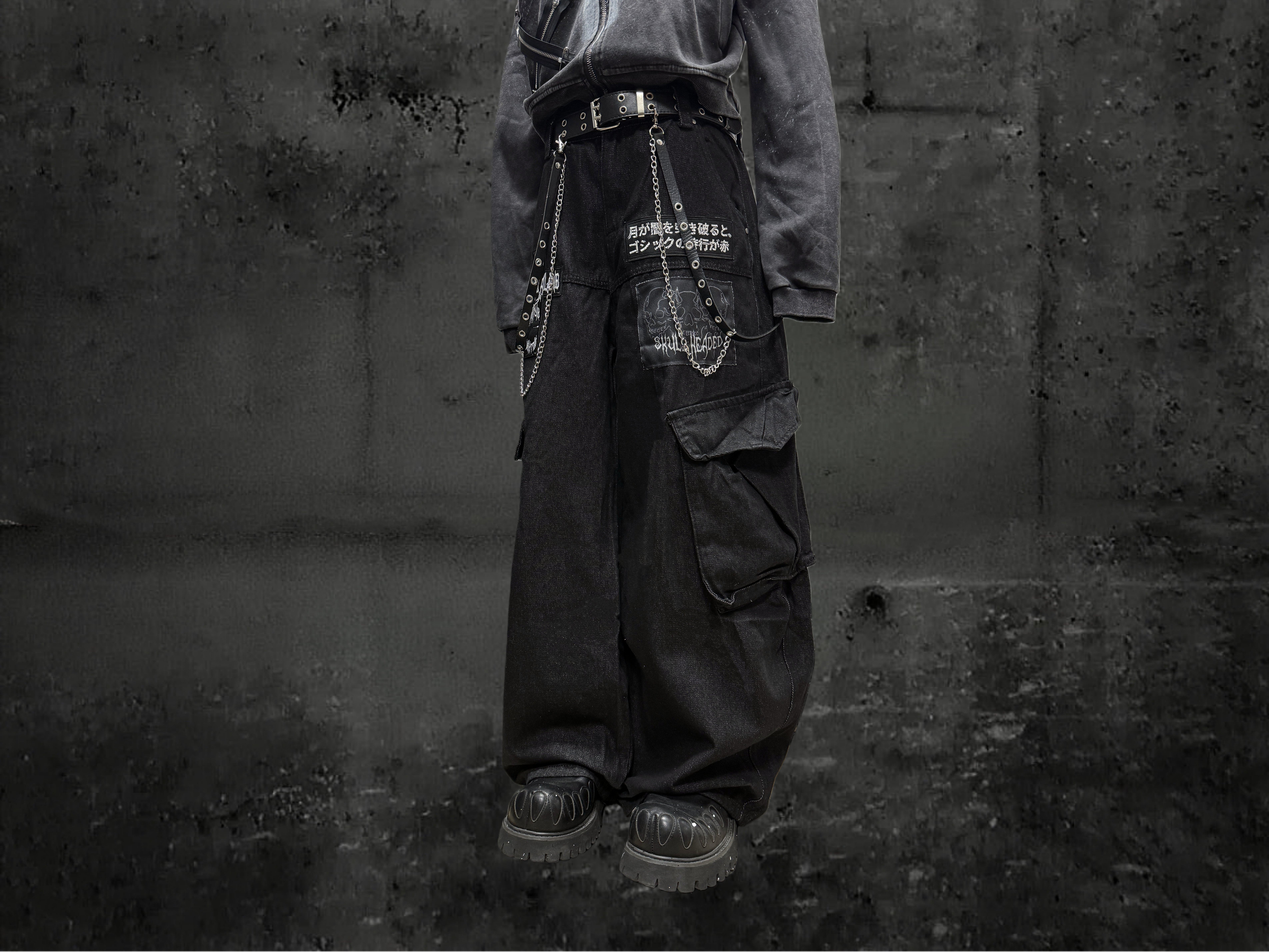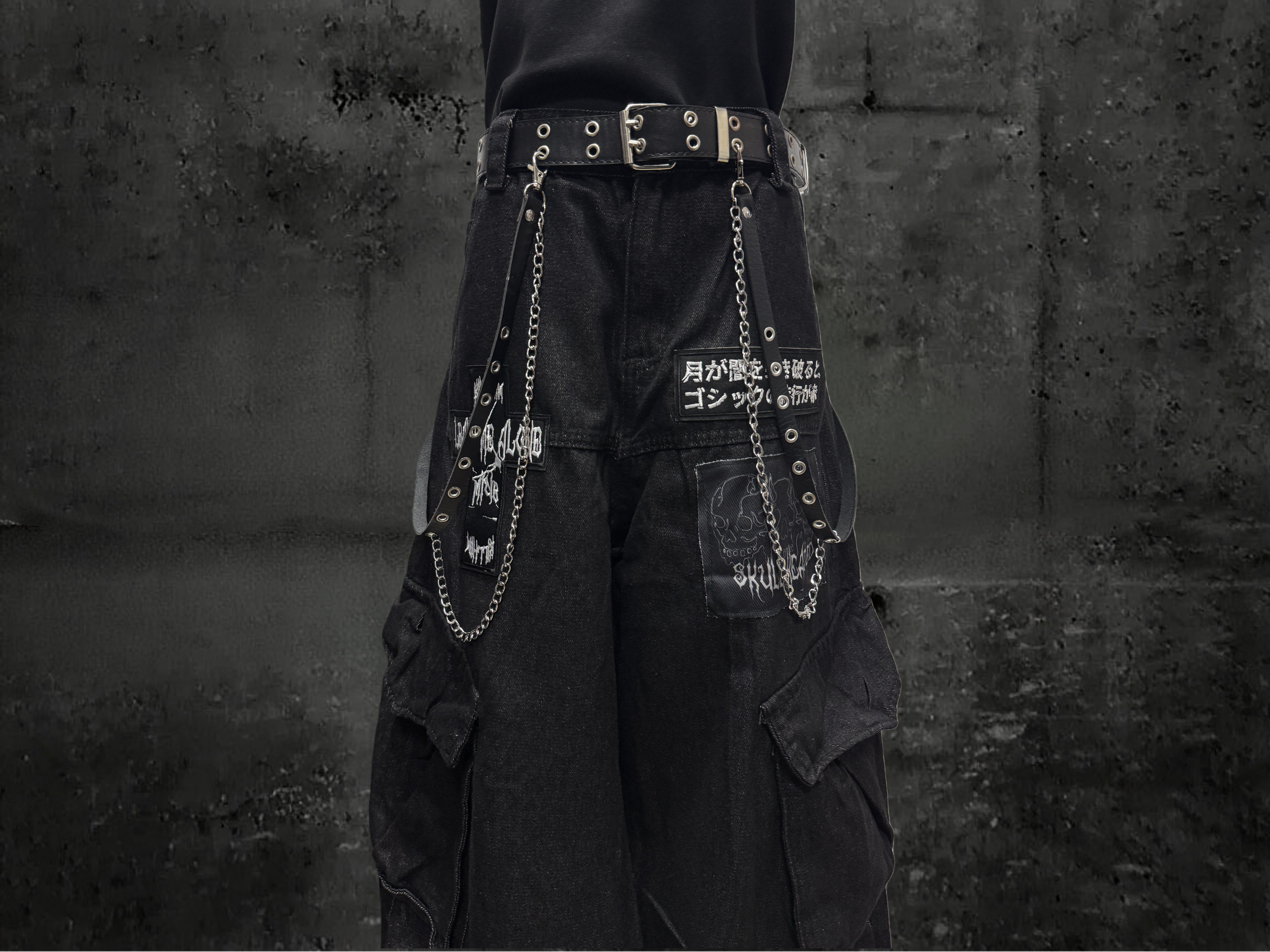 Miub美式复古暗黑工装口袋牛仔裤男女中性废土风皱褶贴布阔腿长裤 [Original Page Link]