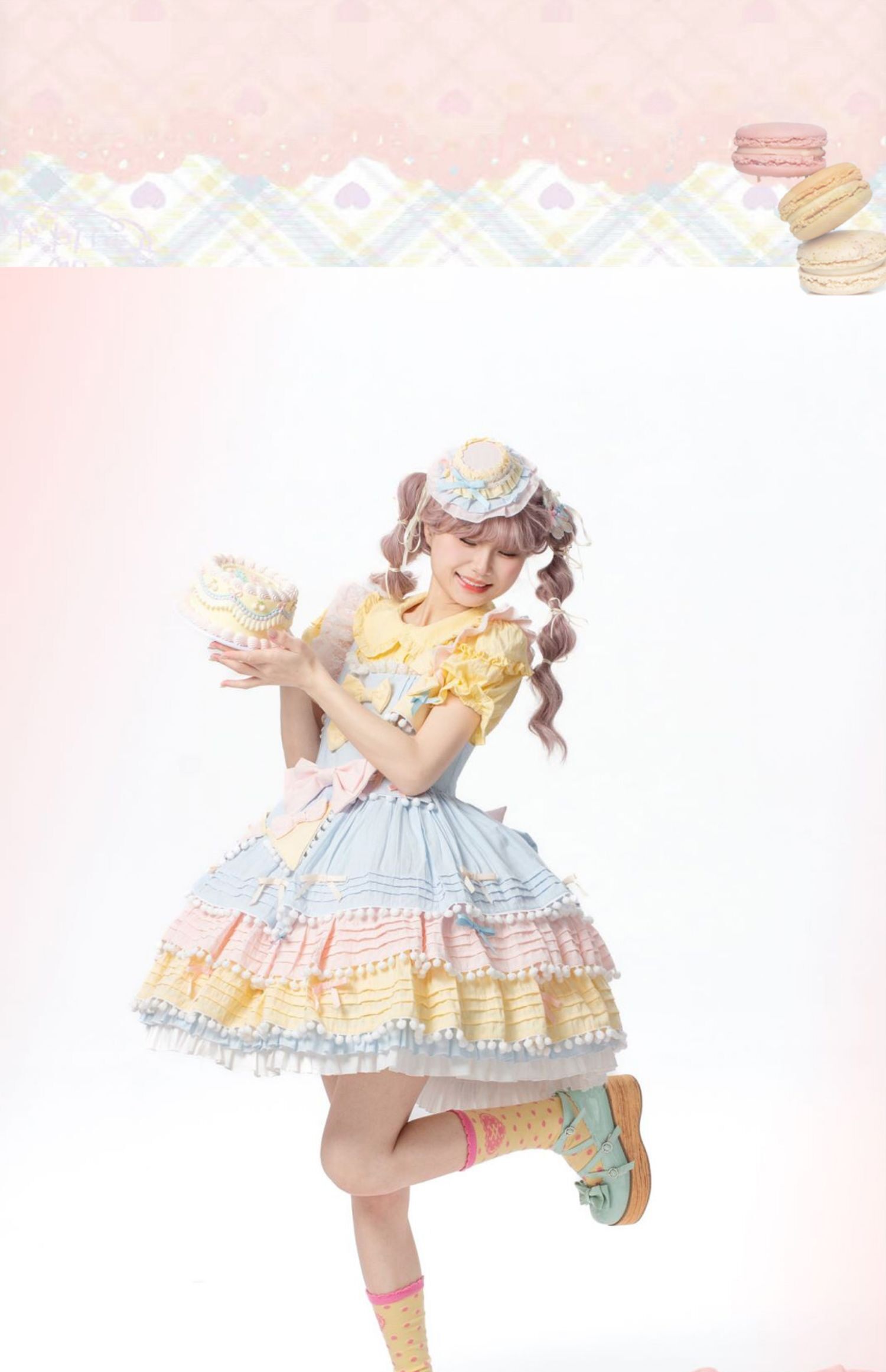 胖喵日记lolita甜心马卡龙冰淇淋色糖果洛丽塔蛋糕裙呲甜三段式裙 [Original Page Link]